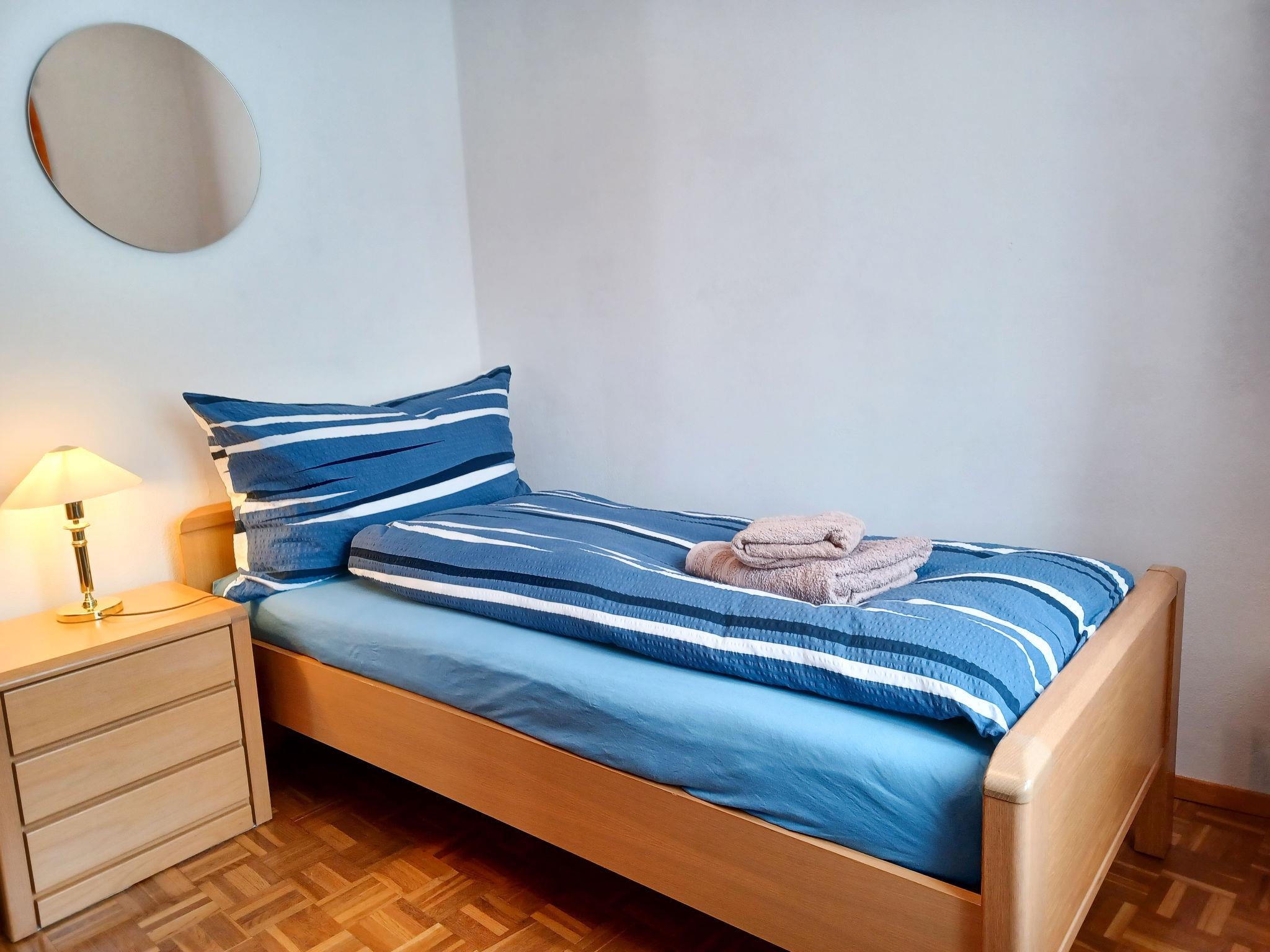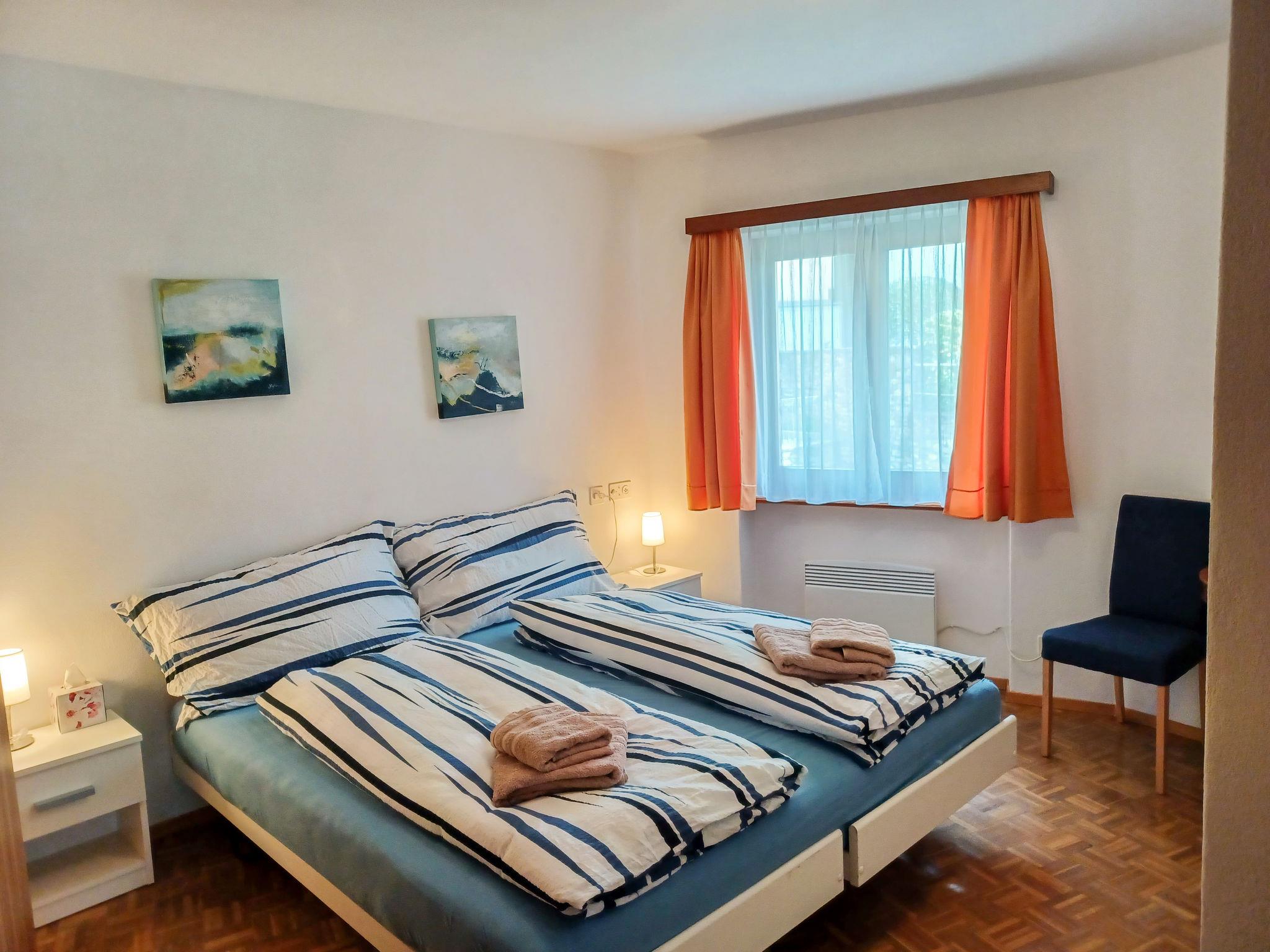 "Vela da Reto", 3-room apartment on 1st floor. Object suitable for 2 adults + 1 child. Practical and cosy furnishings: living/dining room with open-hearth fireplace (only for decoration), digital TV, flat screen and air conditioning. Exit to the balcony. 1 room with 1 bed (90 cm, length 200 cm). 1 double bedroom with 1 double bed (2 x 90 cm, length 200 cm). Small, open kitchen (4 hot plates, oven, toaster, kettle, microwave, electric coffee machine, Capsules for coffee machine (Delizio) extra). Shower/WC, sep. WC. Heating. Natural stone floors. Small balcony, south facing position. Balcony furniture. Very beautiful view of the lake and the mountains. Facilities: hair dryer. Internet (WiFi, free). Parking (extra) at 70 m. Please note: not suitable for children under 6 years apartment street side. Non-smokers only. No lift. The apartment is located above a bar, the bar is open until 24.00. June, July + August there are Fr. or Sat. music evenings. NL-00004816