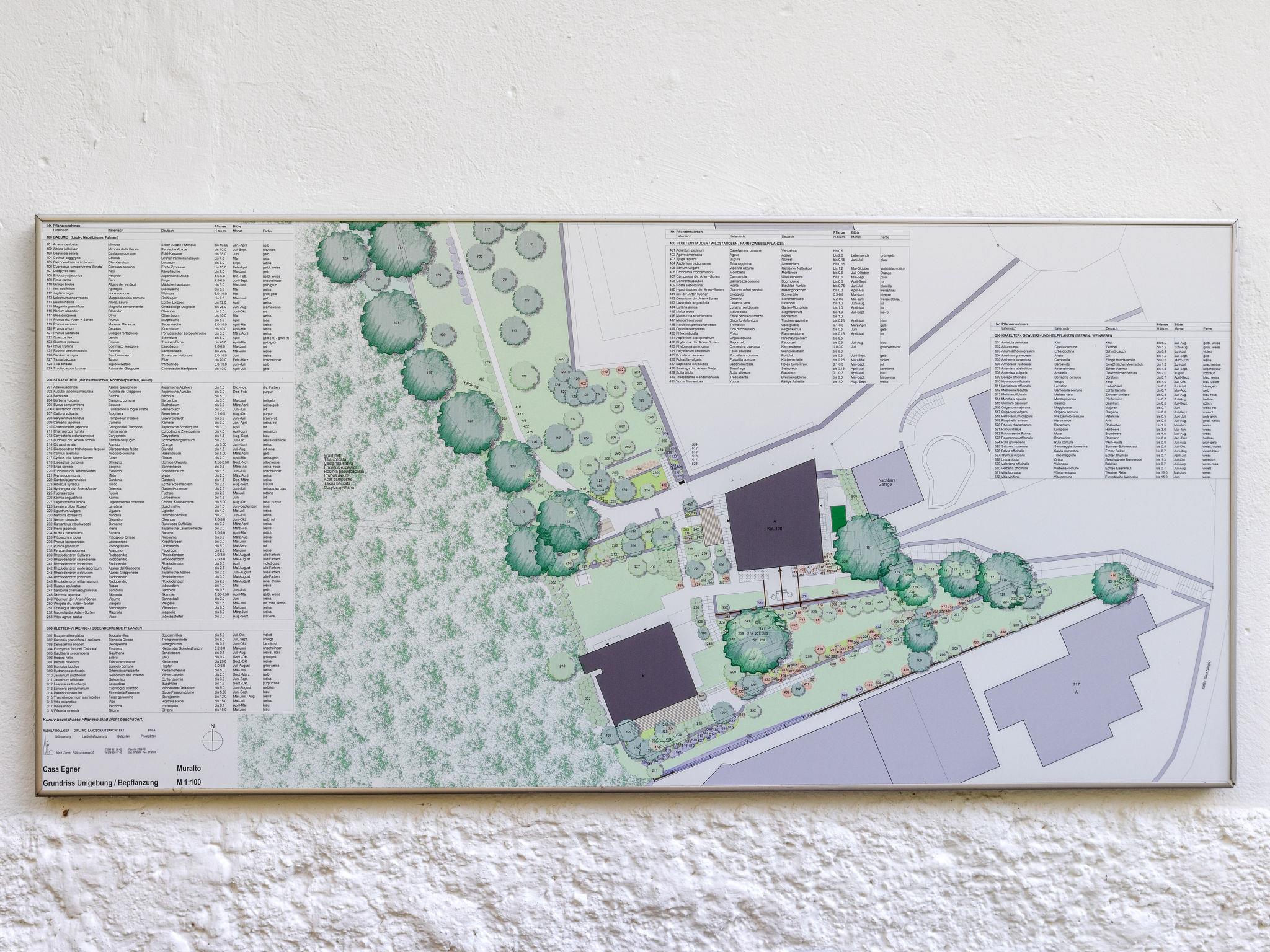 Muralto-Locarno: In a beautiful south-facing location, above Muralto above Lake Maggiore, in the middle of a magnificent park landscape with over 150 plant species: An oasis of peace. Ecological operation with solar system for hot water and 2 air heat pumps for energy. 2 houses in a terraced location, always with a view of the lake and the mountains of Gambarogno with Monte Tamaro. Cosy resort "Egner", detached, surrounded by trees. 2 houses in the residence. 5 apartments in the residence. On the outskirts, 1 km from the centre of Muralto - Locarno, in a secluded, quiet, sunny position on a slope, along the wooded area, 1.4 km from the lake, 2.3 km from the beach, in a cul-de-sac, south facing position. For shared use: natural state property with lawn and plants, beautiful garden to relax. Outdoor shower, barbecue. In the house: table tennis, central heating system. 400 m long steep, narrow motor access to the grounds. 50 m footpath to the house. Parking (limited number of spaces, extra) at 50 m. Shop, supermarket 700 m, restaurant 500 m, pedestrian zone 700 m, 15 minute walk to the centre, bus stop "Locarno Piazza Stazione" 700 m, railway station "Locarno SBB" 700 m, outdoor swimming pool 2.3 km, indoor swimming pool 1.8 km, thermal baths "Termali & Salini, Locarno" 1.8 km, lake Lago Maggiore. Golf course (9 hole) 2.3 km, minigolf 1.2 km, walking paths from the house 1 m, cable car 3 km. Nearby attractions: Madonana del Sasso, Orselina, Locarno-Ascona, Ronco sopra Ascona, Falconeria, Kamelienpark, Piazza Grande, Swissminiatur, Melide, Swissminiatur, Melide, Castelli di Bellinzona. Well-known lakes can easily be reached: Lago Maggiore, Lago di Sambuco, Lago di Lugano, Lago di Como, Lago di Orta. Hiking paths: Valle Maggia, Valle Verzasca, Cardada, Monte Tamaro - Monte Lema, Monte Generoso, Malcantone. Please note: no lift. Suitable for families, baby equipment on request (extra). The owner does not accept any youth groups. Loading and unloading of baggage is possible at the holiday house. Additional accommodations can be booked. Property ref. CH6600.361.1-5 is situated on the same property. All houses/apartments are individually designed/furnished. Outdoor area for all guests: grill, seating area, sunbathing lawn, bamboo shower, terraced botanical garden/with labels of the plants and plant plan for overview.