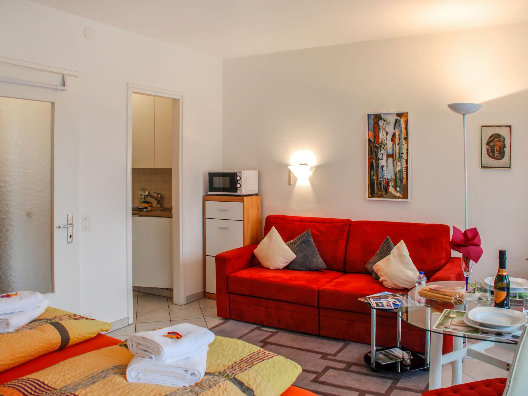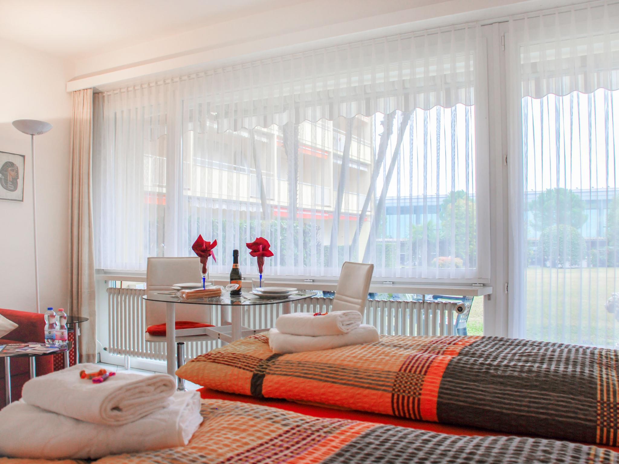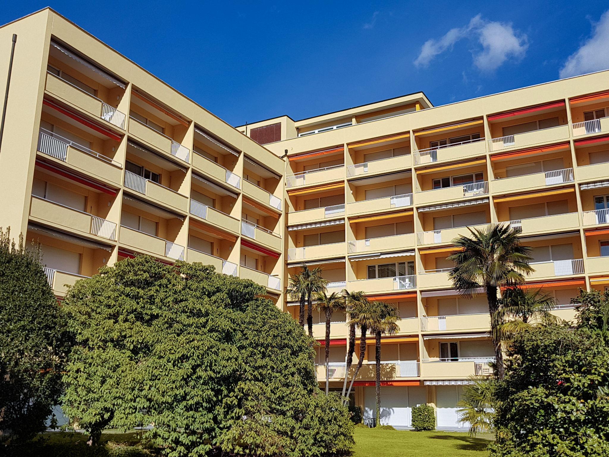 Locarno: Large, comfortable apartment block "Residenza Lido", 6 storeys, surrounded by trees and meadows. On the outskirts, 1.8 km from the centre of Piazza Grande, in a sunny position, excellent location: right in the centre but still quiet, 50 m from the lake, in the countryside. In the house: reception, lounge, lift, roof terrace, central heating system. Motor access to the house. Public parking 100 m on the road extra. Shop 1.1 km, grocery 1.1 km, restaurant, café 80 m, 15 minute walk to the centre, bus stop "Linie 3 + 4" 50 m, railway station "Locarno SBB-CFF" 3 km, outdoor swimming pool, indoor swimming pool 50 m, thermal baths "Termali & Salini" 80 m, public bathing area 50 m. Golf course (18 hole) 6 km, tennis 400 m, minigolf 2 km, walking paths from the house 50 m. Well-known lakes can easily be reached: Lago Maggiore, Lago di Lugano, Lago di Como. Hiking paths: Cardada, Monte Verità, Centovalli, Vallemaggia, Valle Onsernone, Valle Verzasca. Please note: not suitable for small children. Not suitable for children under 14 years. The keys‘ handover takes place by the agency Interhome in Locarno (1km). Property ref. CH6600.410 is situated on the same property.