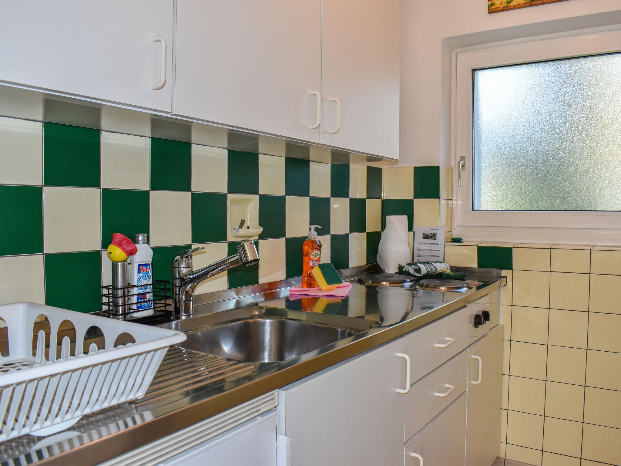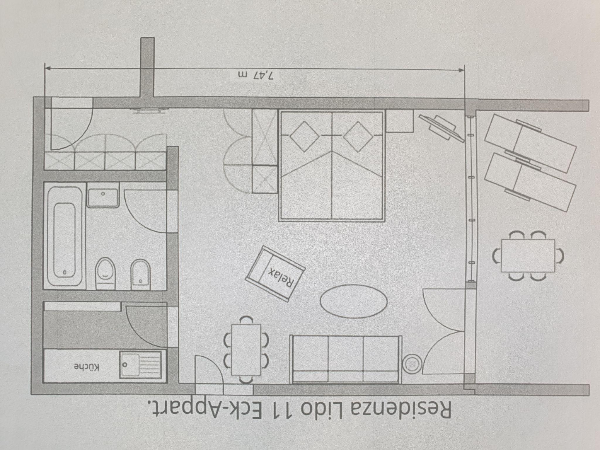 "Residenza Lido Appartment 011", 1-room apartment 48 m2, on the ground floor, north-east facing position. Object suitable for 2 adults + 2 children. Spacious and bright, partly renovated in 2022, comfortable and cosy furnishings: open living/dining room with 2 beds (90 cm, length 200 cm), 1 sofabed (160 cm, length 200 cm), dining table and satellite TV (flat screen), radio. Exit to the patio. Small kitchen (2 hot plates, oven, toaster, kettle, electric coffee machine, Capsules for coffee machine (Nespresso) extra). Bath/WC. Large patio partly roofed. Deck chairs (2). Beautiful view of the garden. Facilities: hair dryer. Internet (WiFi, free). Please note: non-smokers only. The corner apartment has a side window on the ground floor allowing the apartment to be flooded with light (it is the only one in this building). A closomat is available in the bathroom, which consists of a bath and toilet. The apartment has a terrace with an area of 10m²! The television channels are exclusively German-speaking, there is also a channel in Italian (RSI HD). Party forbidden! NL-00004551