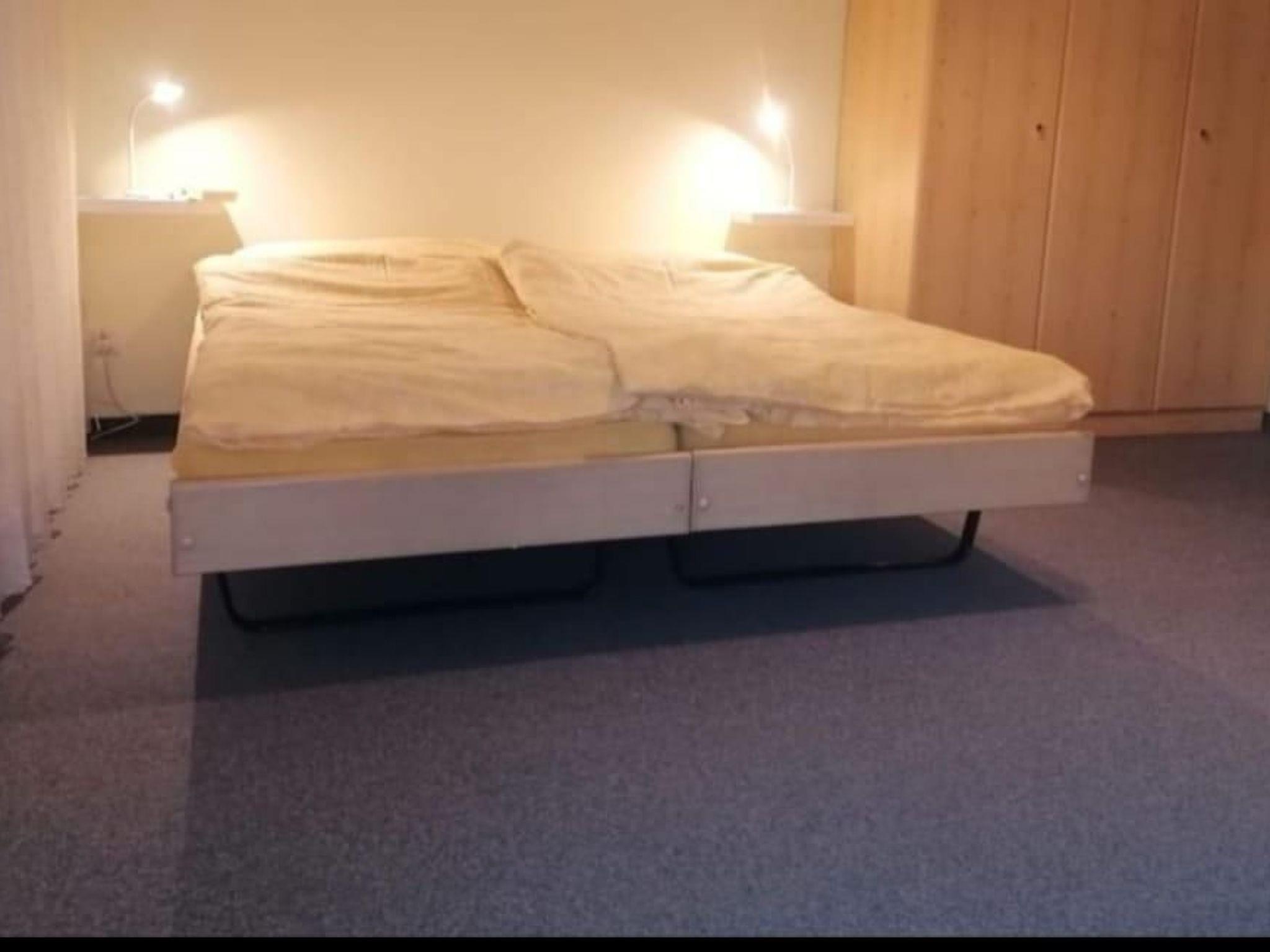 Bedroom: 2 single beds, 2 bedside tables with lamps, large wardrobe