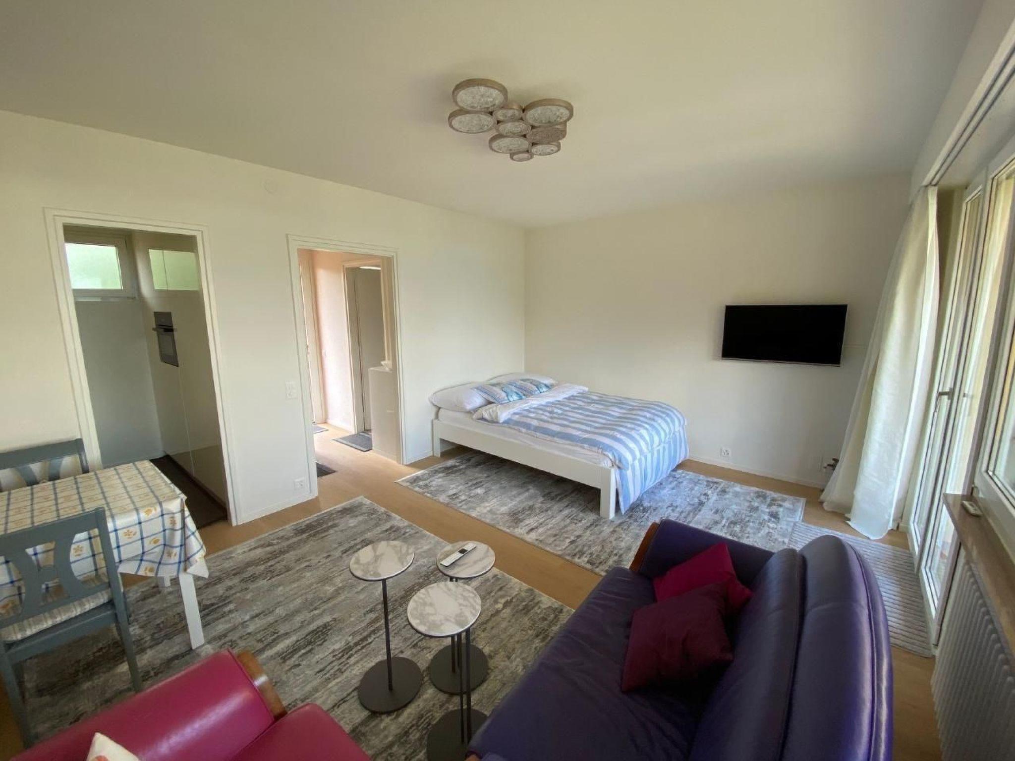 1 ½-room flat 33 m2, 4th floor, beautiful balcony with dining table and direct lake view. Bright, comfortable, modern and completely renovated and newly furnished. Open-plan living/dining room with double bed (160x 180)