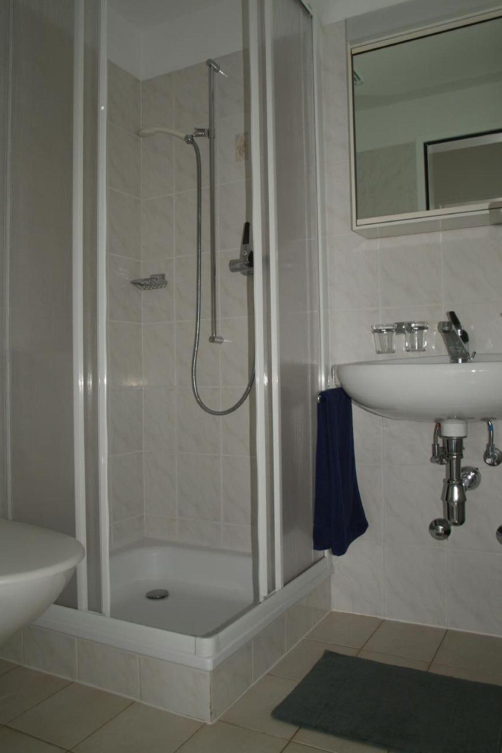 The bedroom has two single beds (90x200cm) and a large wardrobe. The flat is equipped with two bathrooms, one shower / WC, the second bathtub / WC.