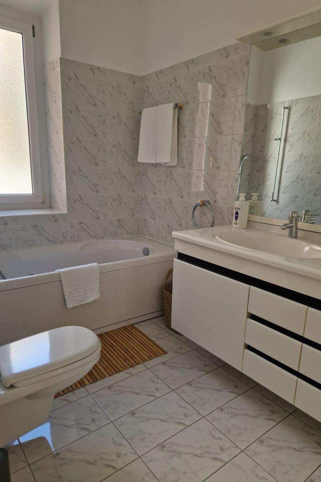 The flat has three bedrooms, two modern bathrooms (one with shower, the other with hydromassage), and a spacious and bright living area with a seating area and a flat-screen TV with satellite channels. The Hue lighting system allows you to create the perfect atmosphere at any time of day.