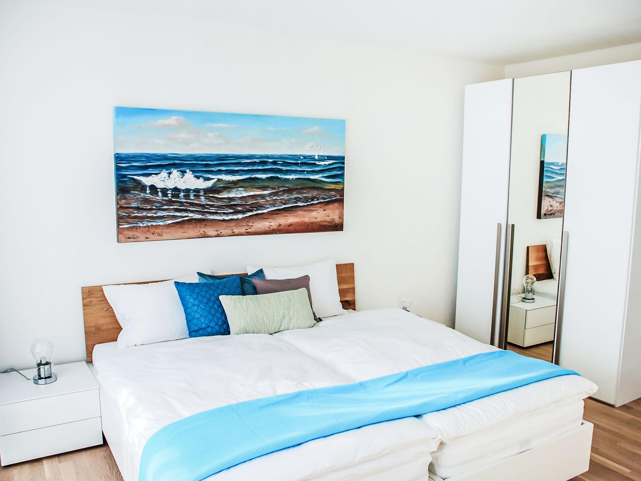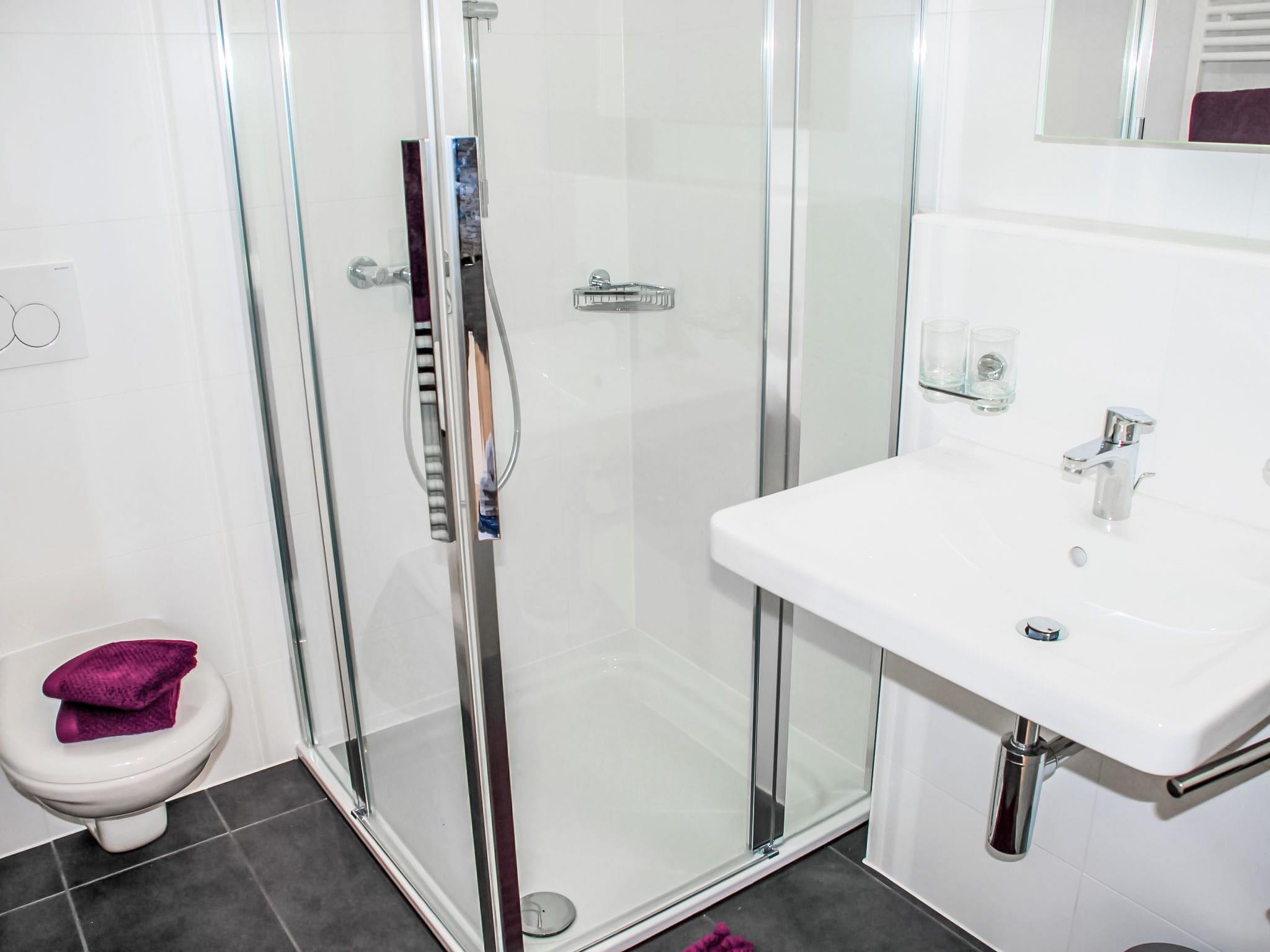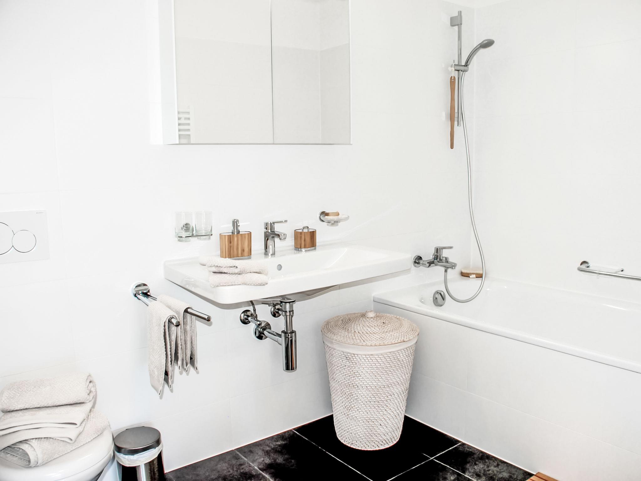 "LaVille B-2-3", 3-room apartment 95 m2 on 2nd floor, south-west facing position. Spacious and bright, modern and tasteful furnishings: open large living/dining room with satellite TV and flat screen. 1 double bedroom with 1 double bed (2 x 90 cm, length 200 cm). 1 room with 2 beds (90 cm, length 200 cm). Large, open kitchen (oven, dishwasher, 4 induction hot plates, freezer, electric coffee machine, Capsules for coffee machine (Nespresso) extra) with dining table. Exit to the balcony. Bath/WC, shower/WC. Floor heating. Balcony 12 m2, south facing position and west facing position. Balcony furniture, deck chairs (1). View of the mountains and the countryside. Facilities: washing machine, dryer, iron, children's high chair, baby cot for up to 2 year olds (extra), hair dryer. Internet (WiFi, free). Parking space n 46 (extra), height 210 cm, width 230 cm. Please note: non-smokers only. NL-00006853
