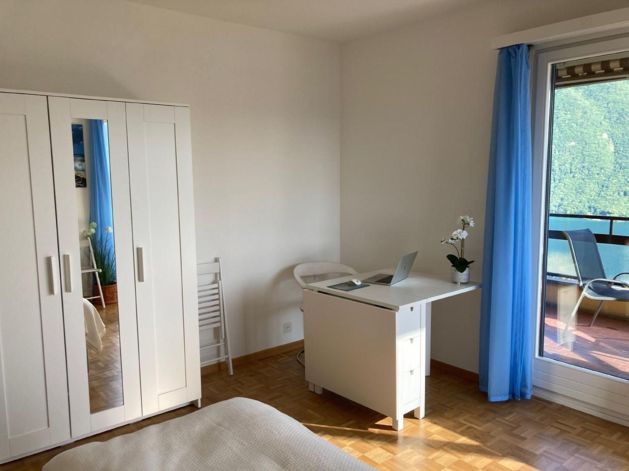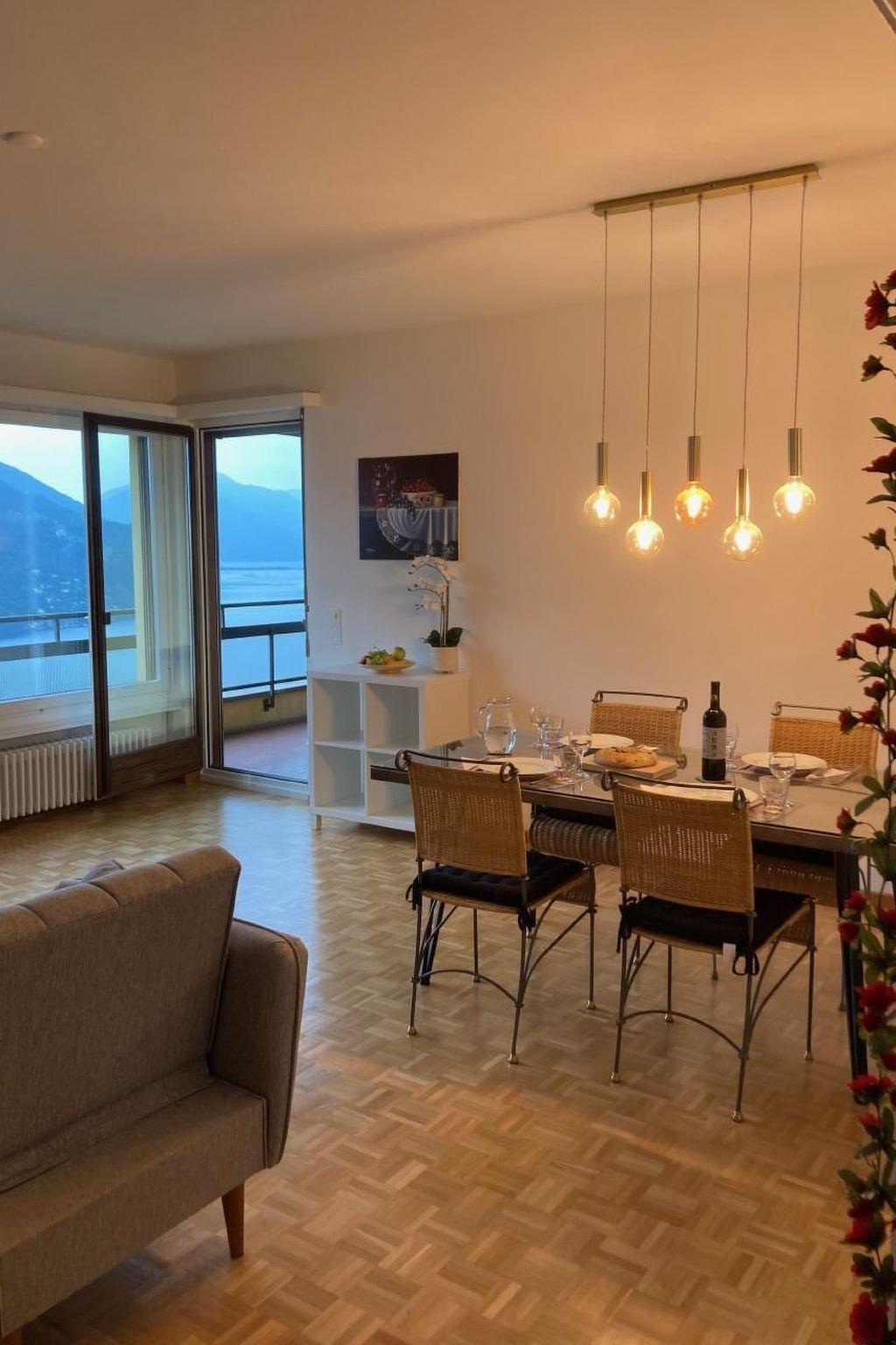 We are renting out our newly renovated 3.5-room flat in the exclusive villa district of Ruvigliana. The "Appartamento d'oro" is located at the top of a flat block with only 6 freehold flats. You can reach the house by public transport from the nearest bus station in less than 10 minutes; there is a large private parking space for your car in the covered communal car park. A wide staircase with 7 steps takes you to the entrance of the house, where you will find the lift, take it to the 3rd floor, and after a further 9 steps you will be greeted by the "Appartamento d'oro". The effort was worth it! Step into the large, light-flooded flat and then go out onto the balcony: a marvellous 180° panoramic view over Lake Lugano awaits you! This description shows that the holiday flat is not recommended for people with walking difficulties; for the same reason and because of the location of the flat and balcony at a height of over 12 metres, we do not find it suitable for families with small children. However, if you, like the other residents of the house, value a magnificent view in a unique atmosphere and accept the helpful house rules*, then you will experience unforgettable, enjoyable and relaxing holidays in the "Appartamento d'oro"! (*The most important points of the house rules: quiet at night from 10.00 p.m. to 7.00 a.m., quiet on Sundays and public holidays, no noisy parties, set the TV to room volume, do not use loudspeakers for music on the balcony: