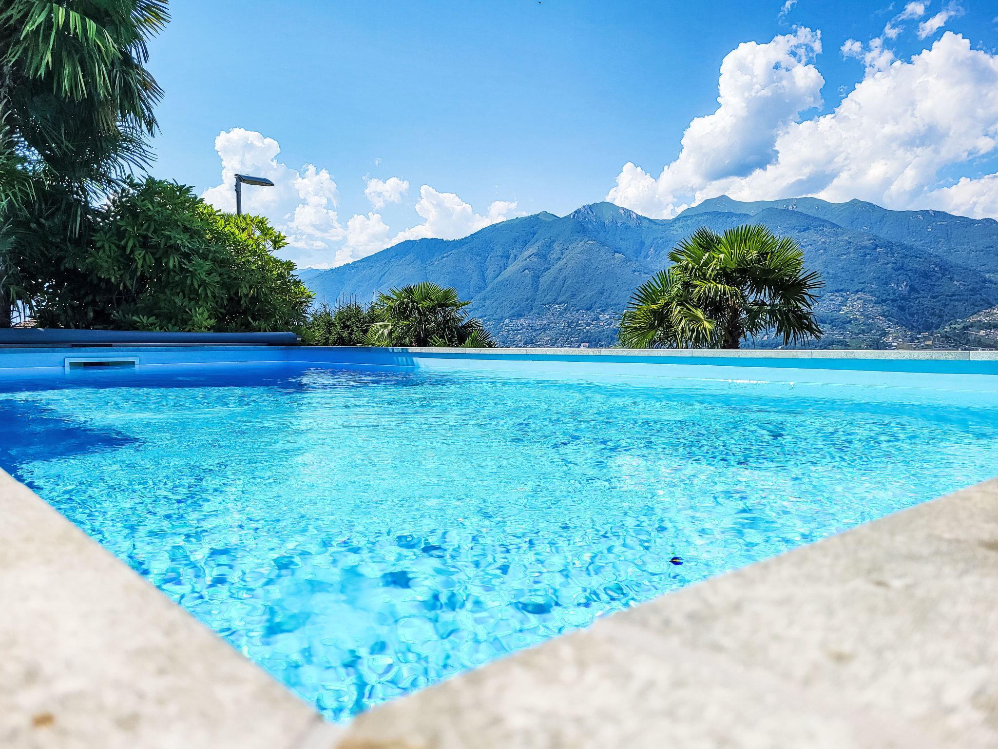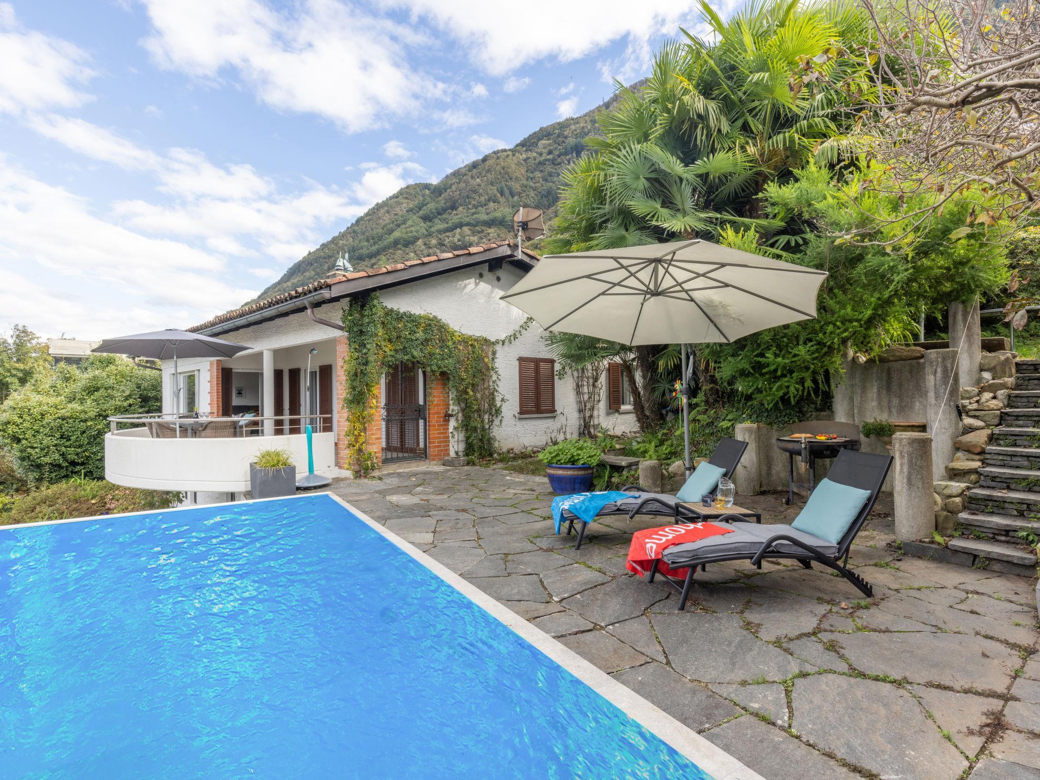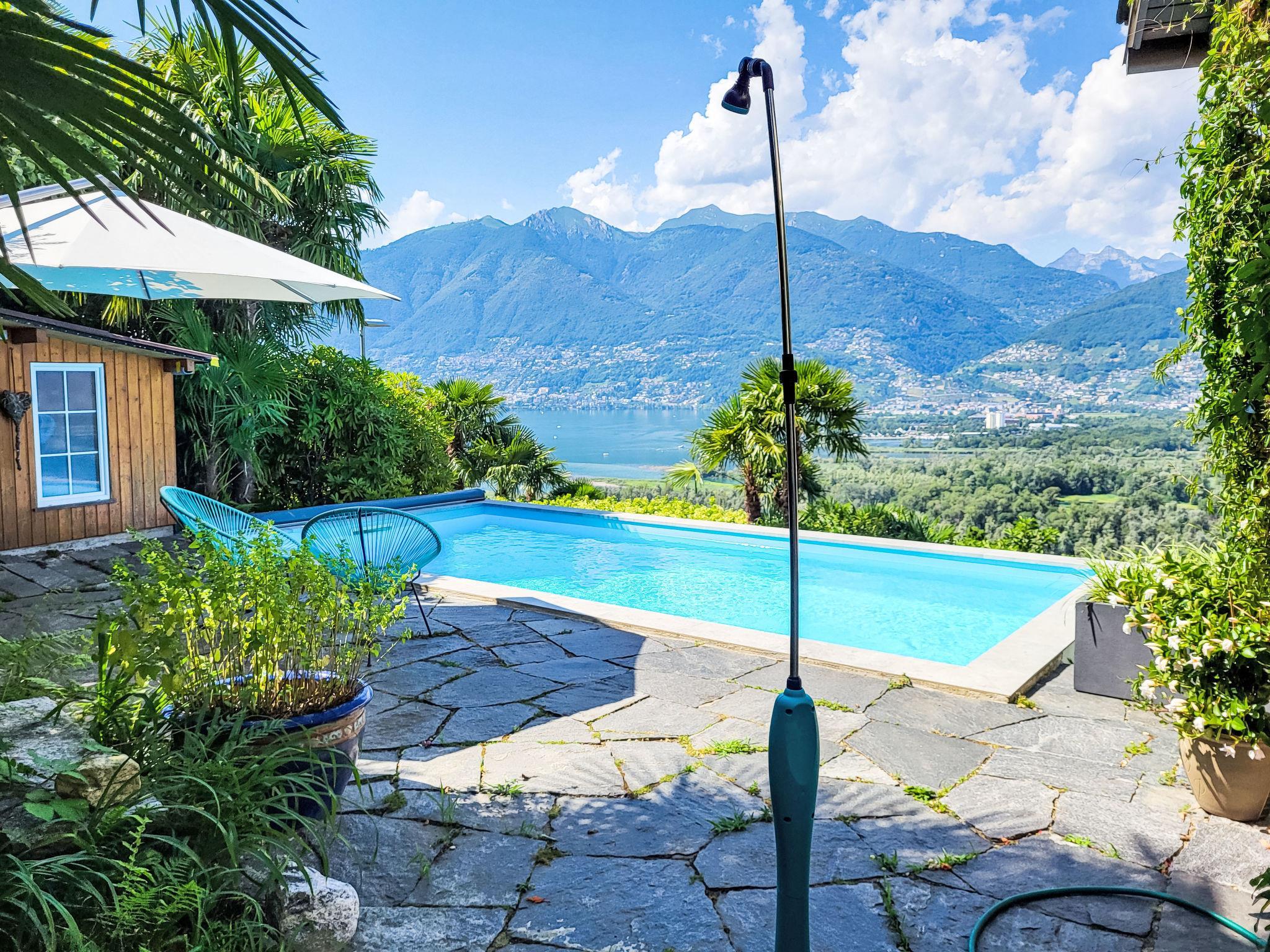 Magadino 15 km from Locarno: Very beautiful, comfortable single-family house "Villetta Felice mit Pool", 230 m a.s.l., 2 storeys, built in 1965, renovated in 2023. Above Magadino, in a quiet, sunny, elevated position, north-west facing position. Private: large, beautiful garden 200 m2 (fenced), swimming pool angular (7 x 3 m, depth 150 cm, seasonal availability: 01.May. - 15.Oct.) with shutter cover and salt-electrolysis pool-cleaning system. Outdoor shower. In the house: central heating system. Stepped path (6 steps) to the house. Grocery 800 m, supermarket 6 km, restaurant 800 m, bus stop "Orgnana, Monda" 80 m, railway station "Bellinzona" 19 km. Sports harbour 1.5 km, golf course (18 hole) 19 km, minigolf 2.2 km, walking paths from the house 10 m. Nearby attractions: Mercato Luino IT, Parco botanico del Gambarogno, Castelli di Bellinzona. Well-known lakes can easily be reached: Lago Maggiore. Hiking paths: Bolle di Magadino, Valle Verzasca, Vallemaggia. The owner does not accept any youth groups. The garden house remains locked as the pool equipment is located there. It is checked once a month by the pool technician who takes the readings.