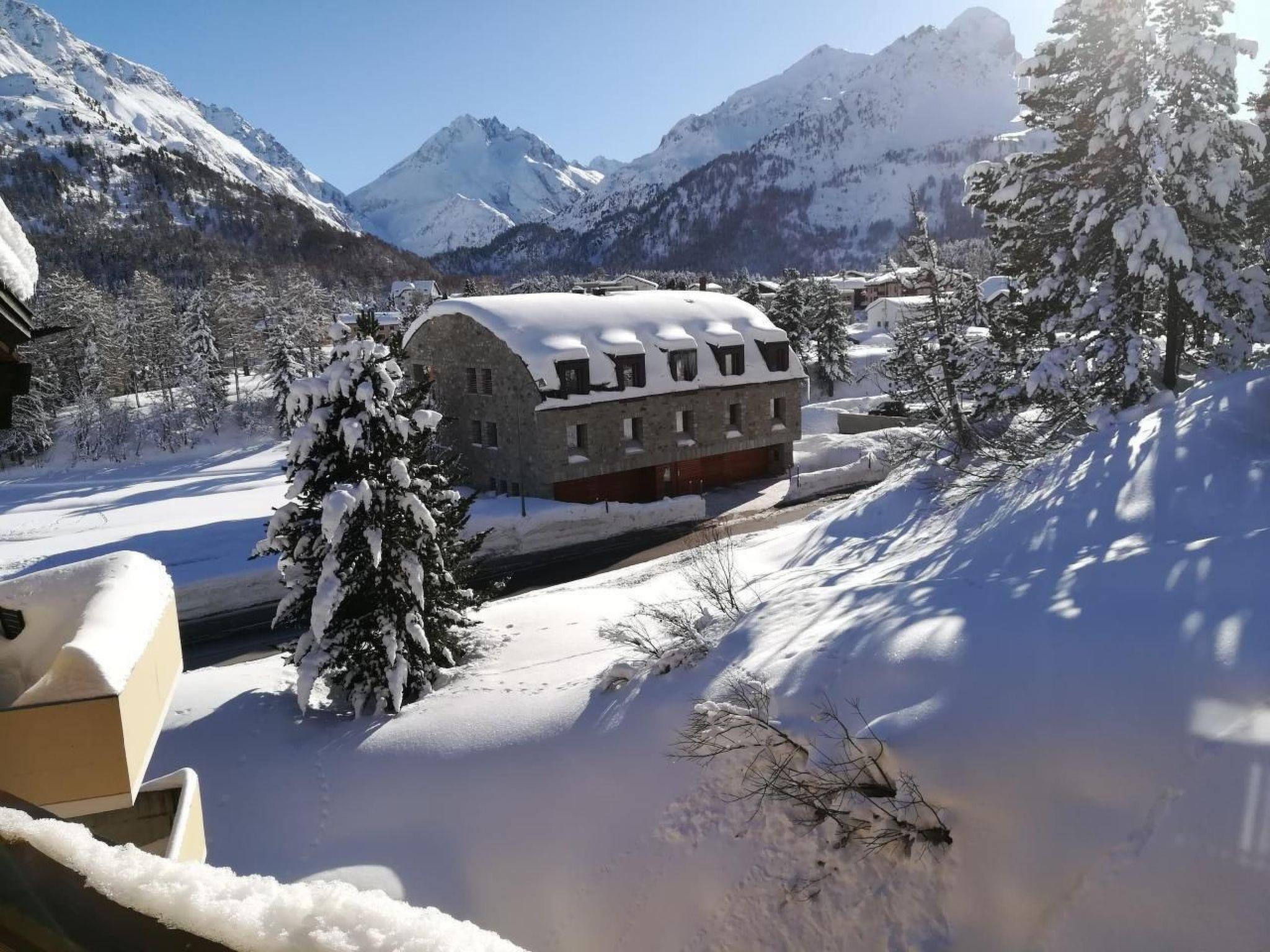 Nice 3-room apartment 93 m2 on the 3rd floor, west facing position. Up to 6 persons. Living/dining room with ornamental fireplace, satellite-TV, radio and CD-player, wifi, large TV in the main bedroom. Kitchen (dishwasher). Gallery with 1 double bed. 2 double bedrooms. Bathroom with bathtub/WC, 2 showers/WC, hairdryer. Large balcony. View of the countryside. Garageplace. No smoking only. In the resort you can also use washing machine/tumbler (extra), recreation room with WLAN, lounge, ski room and sauna (extra).The residence "Pra d'Sura", located on the edge of the village, 400 m from the center of Maloja, enjoys a sunny location, 800 m from the lake. Post office and bus stop at 400 m, several restaurants, store and dairy are in the village. Directly next to the house, hiking trails and cross-country ski runs. The Maloja Pass (1815) connects Bergell with Engadin. The famous spa town of St. Moritz is only 16 km away, Chiavenna (Italy) 36 km.