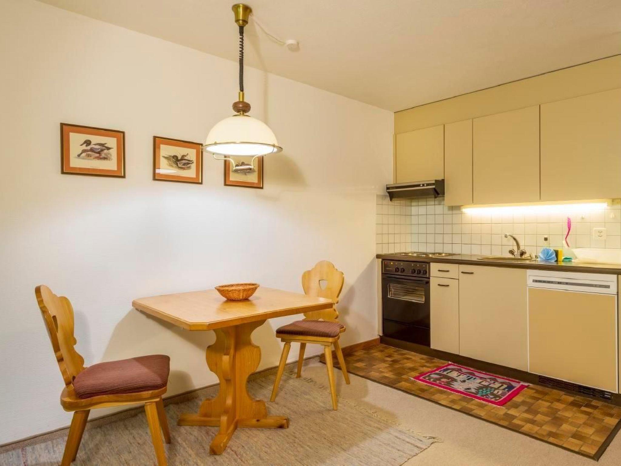 Nice and quiet 1-room apartment on the groundfloor, south/west facing position. Entrance with wardrobe, bathroom/WC, open kitchen with dishwasher and oven, living-dining room with bar bed for 2 persons and exit to the garden with chairs and table.Parking space in the garage.In the resort you can also use washing machine/tumbler (extra), recreation room with WLAN, lounge, ski room and sauna (extra).The residence "Pra d'Sura", located on the edge of the village, 400 m from the center of Maloja, enjoys a sunny location, 800 m from the lake. Post office and bus stop at 400 m, several restaurants, store and dairy are in the village. Directly next to the house, hiking trails and cross-country ski runs. The Maloja Pass (1815) connects Bergell with Engadin. The famous spa town of St. Moritz is only 16 km away, Chiavenna (Italy) 36 km.
