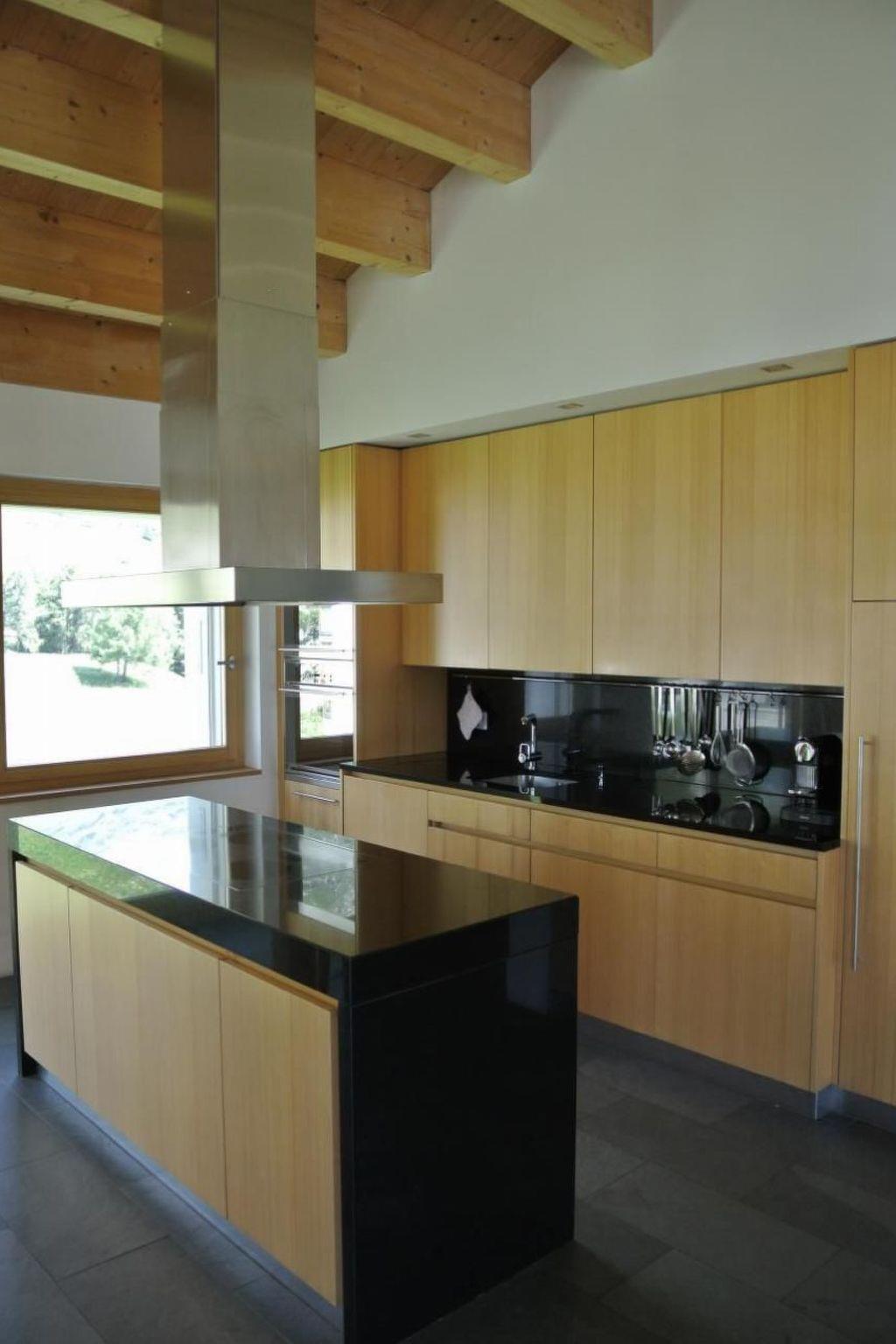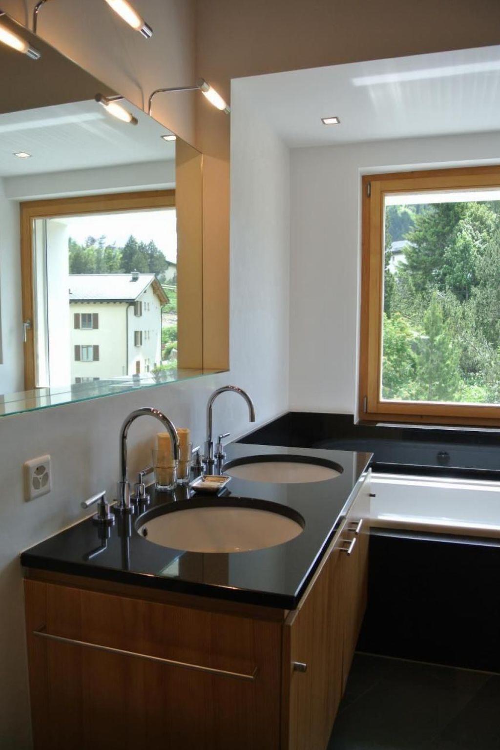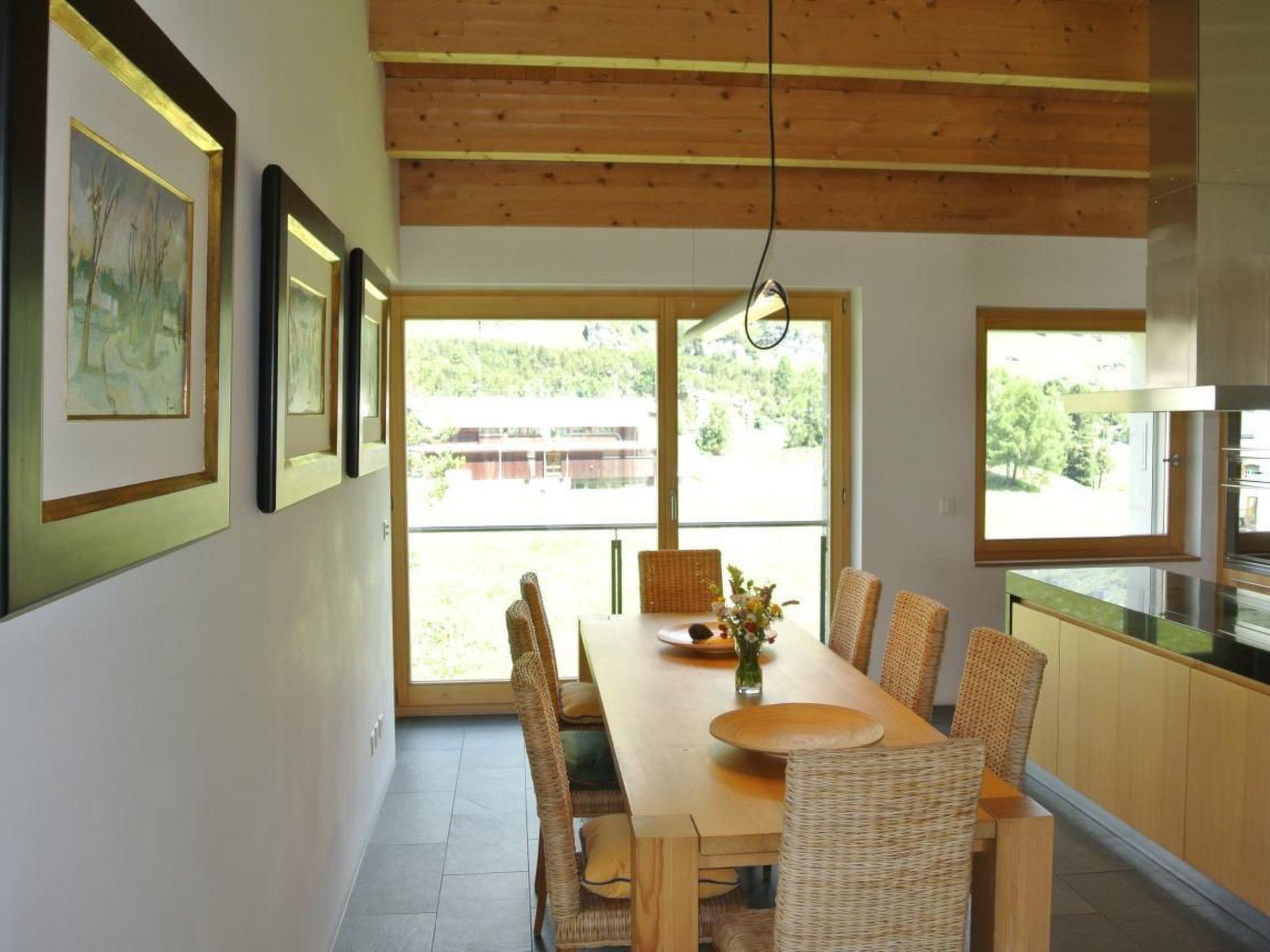 Inside, the holiday flat impresses with its spaciousness and high-quality furnishings. The large master bedroom with separate dressing room and en-suite bathroom, equipped with shower, WC and bathtub, offers a picturesque view of the Piz da la Margna. You can also enjoy the surrounding forests and mountains from the bathtub. The integrated, state-of-the-art kitchen equipment with free-standing cooking island and brand-name appliances provides a first-class cooking experience. Another highlight is the bright and modern living room, which invites you to linger with its open-plan kitchen, an open fireplace and a maximum ceiling height of approx. 5 metres.