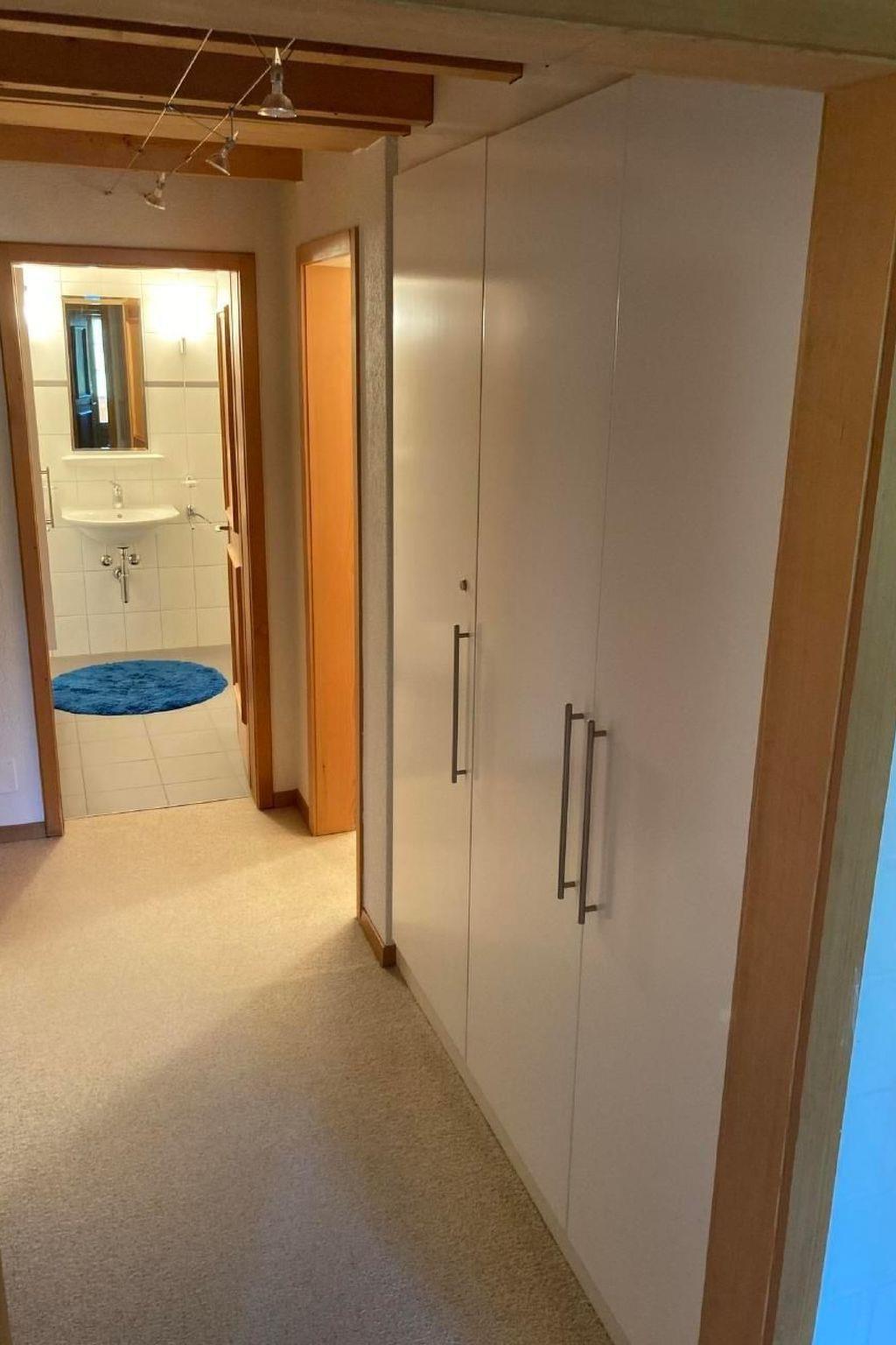 The holiday flat (street address: Kühmoosweg 46, 3152 Mamishaus) is located in a detached farmhouse in the agricultural zone. The house is situated near a forest at the end of a road with a view of the mountains, in a very quiet location. There is a fountain under the porch roof belonging to the farmhouse. On the south side there is a seating area with a chemineé, garden table, benches and chairs. The flat itself is on the 1st floor and is heated with pellets. In the village there is a small corner shop as well as a post bus stop about 25 minutes on foot. Further shopping facilities are available in Schwarzenburg 4 km away: bakery, Migros, Coop and others. A car is recommended for shopping and exploring the surrounding area.