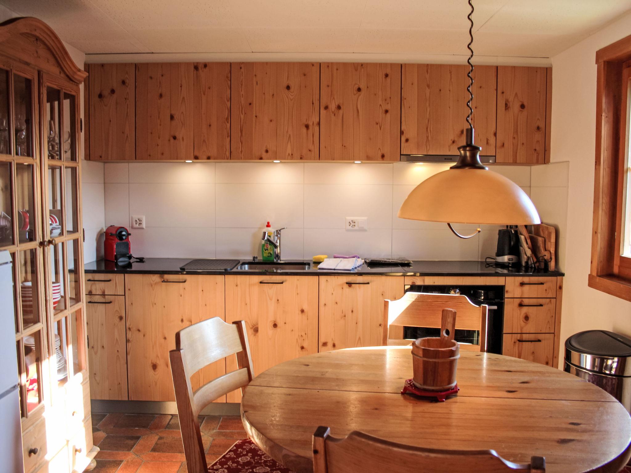"Chalet Les 3 Marmottes", 4-room chalet 110 m2 on 2 levels. Tasteful and cosy furnishings: living/dining room with open-hearth fireplace, dining table and satellite TV (flat screen), hi-fi system. Exit to the balcony, south facing position. Open kitchen (4 hot plates, oven, dishwasher, microwave, freezer, electric coffee machine, fondue Set (cheese)). Sep. WC. On the lower ground floor: 2 rooms, each room with 2 beds (100 cm, length 200 cm). Exit to the terrace. 1 room with 1 x 2 bunk beds, shower. Bath/WC. Terrace furniture. Marvellous panoramic view of the mountains and the countryside. Facilities: washing machine, dryer. Internet (WiFi, free). Please note: non-smoking house. Maximum 2 pets/ dogs allowed.