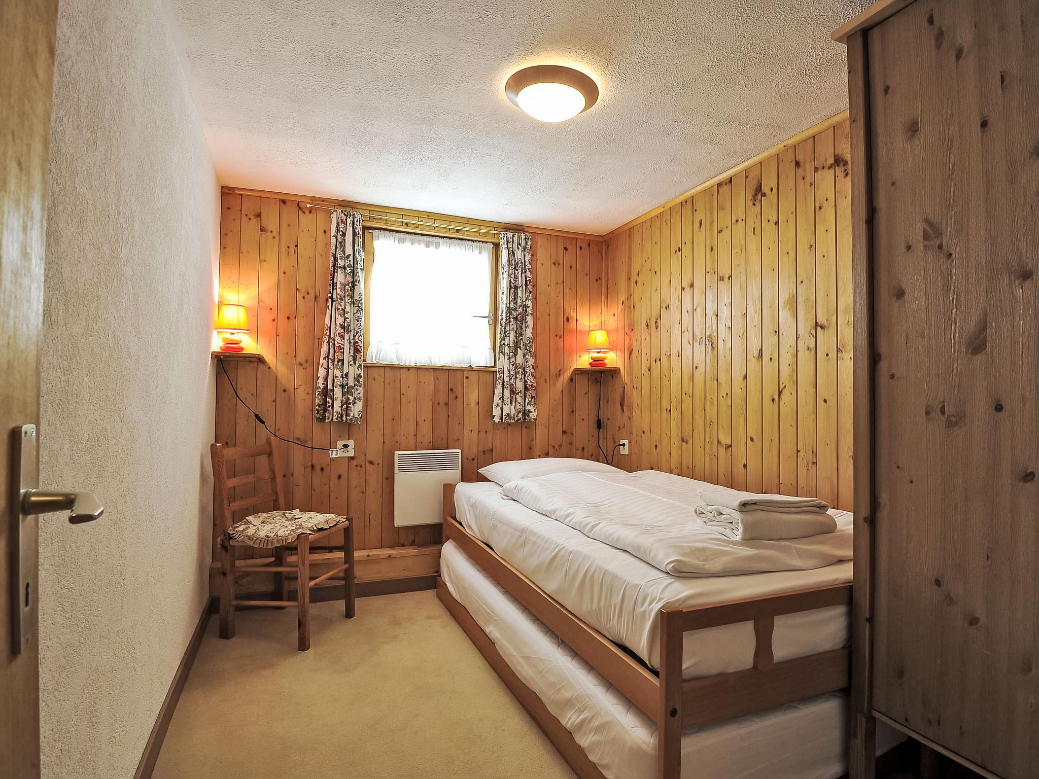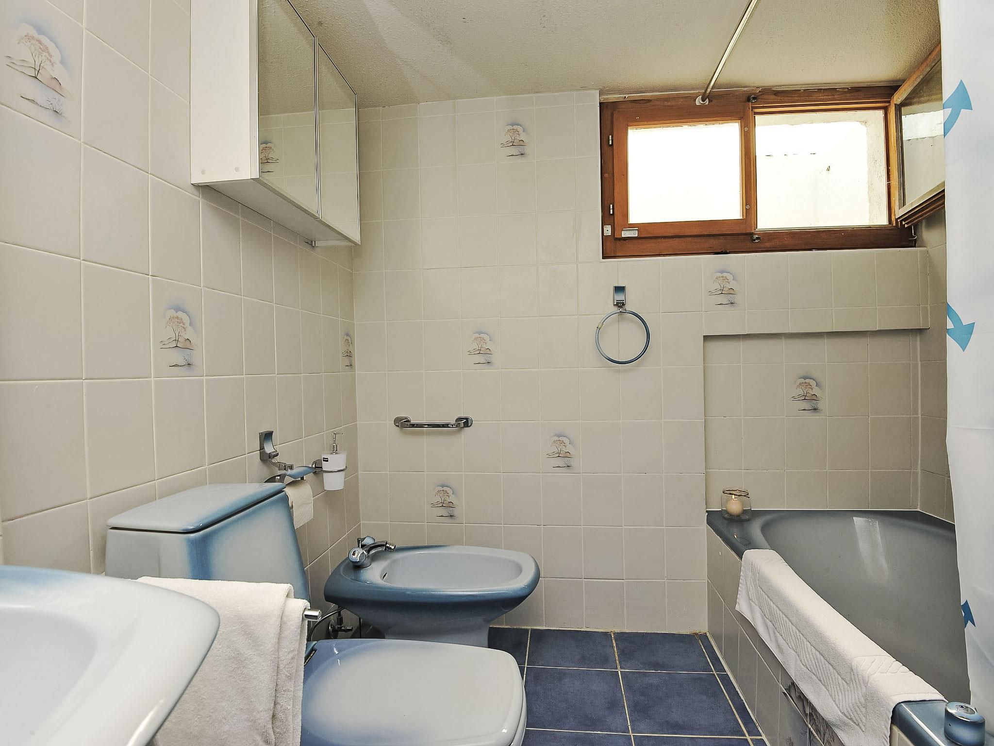 "Mountain View", 5-room chalet 110 m2 on 3 levels. Practical and cosy furnishings: 1 room with 2 beds (90 cm, length 200 cm). 1 small room with 2 beds (70 cm, length 180 cm). 1 room with 2 beds (90 cm, length 190 cm). Bath/bidet/WC. On the lower ground floor: 1 room with 1 bed (90 cm, length 190 cm). 1 room with 1 double bed (160 cm, length 200 cm). Bath/bidet/WC. Upper floor: living/dining room with dining table, satellite TV and video. Exit to the balcony, south facing position. Open kitchen (oven, dishwasher, 4 ceramic glass hob hotplates, microwave, freezer, electric coffee machine, fondue Set (cheese)). Sep. WC. Very beautiful view of the mountains and the countryside. Facilities: washing machine, dryer. Internet (WiFi, free). Please note: non-smokers only.