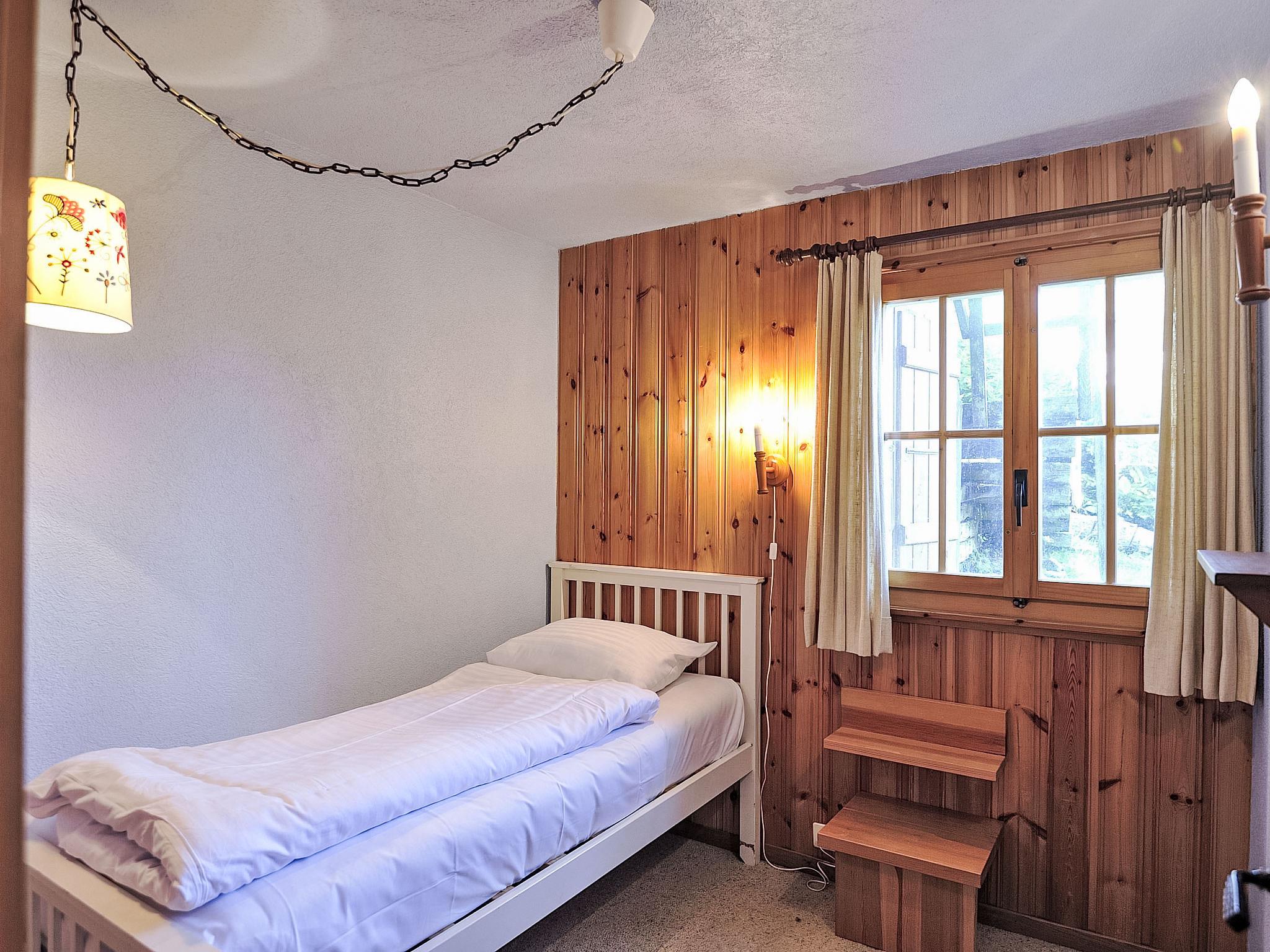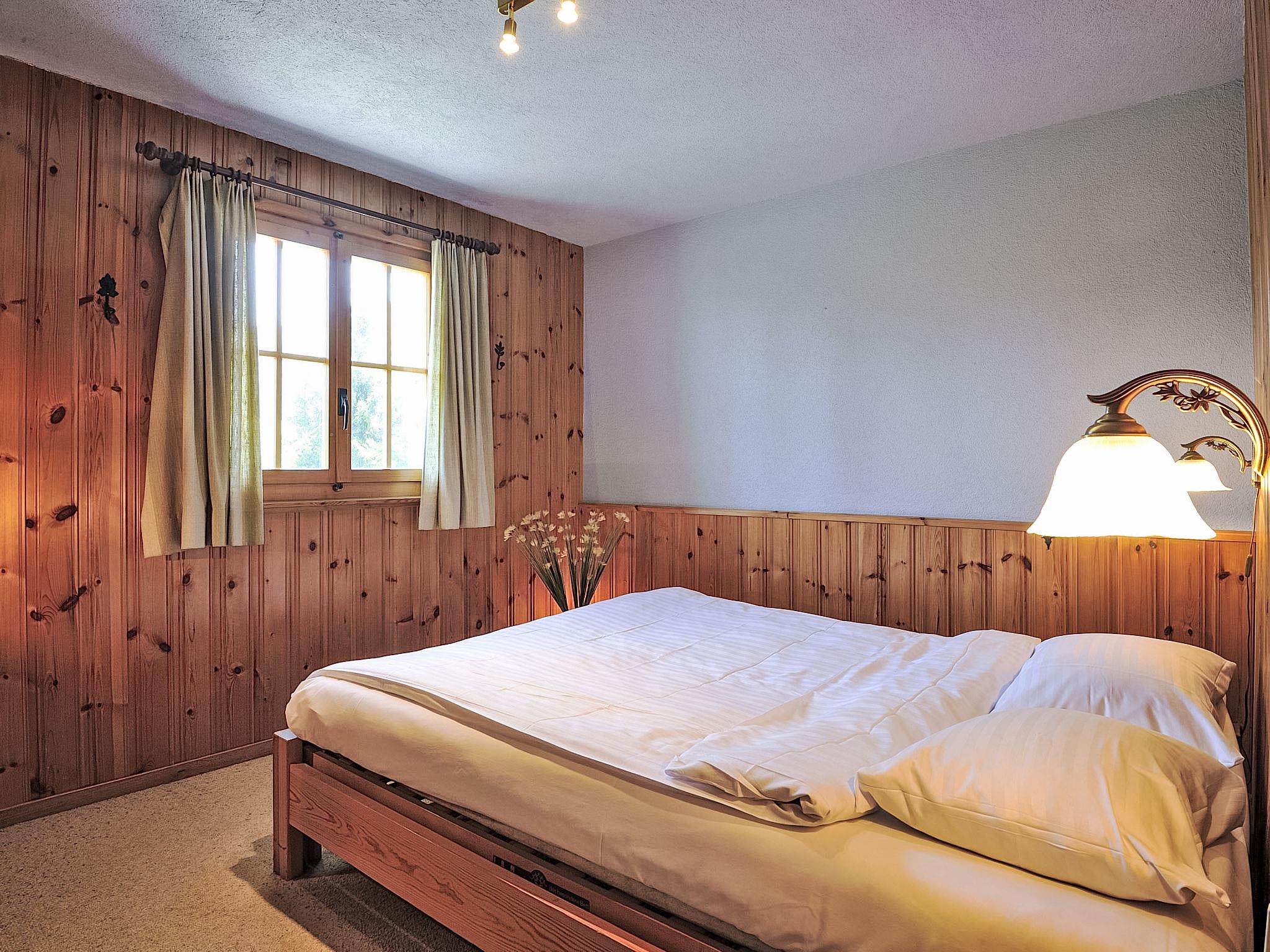 "Chalet le Chamois", 4-room chalet 110 m2 on 3 levels. Comfortable and cosy furnishings: living/dining room with satellite TV and paraffin heater. Exit to the terrace. Open kitchen (oven, dishwasher, 4 ceramic glass hob hotplates, microwave, fondue Set (cheese)). Sep. WC. On the lower ground floor: 1 room with 1 french bed (150 cm, length 190 cm). 1 room with 3 beds (90 cm, length 190 cm). Exit to the garden. 1 room with 1 bed (90 cm, length 180 cm). Bath/shower/WC. Large terrace, large garden. Terrace furniture, barbecue. Marvellous panoramic view of the mountains and the countryside. Facilities: Internet (WiFi, free). Please note: non-smokers only. Maximum 2 pets/ dogs allowed.