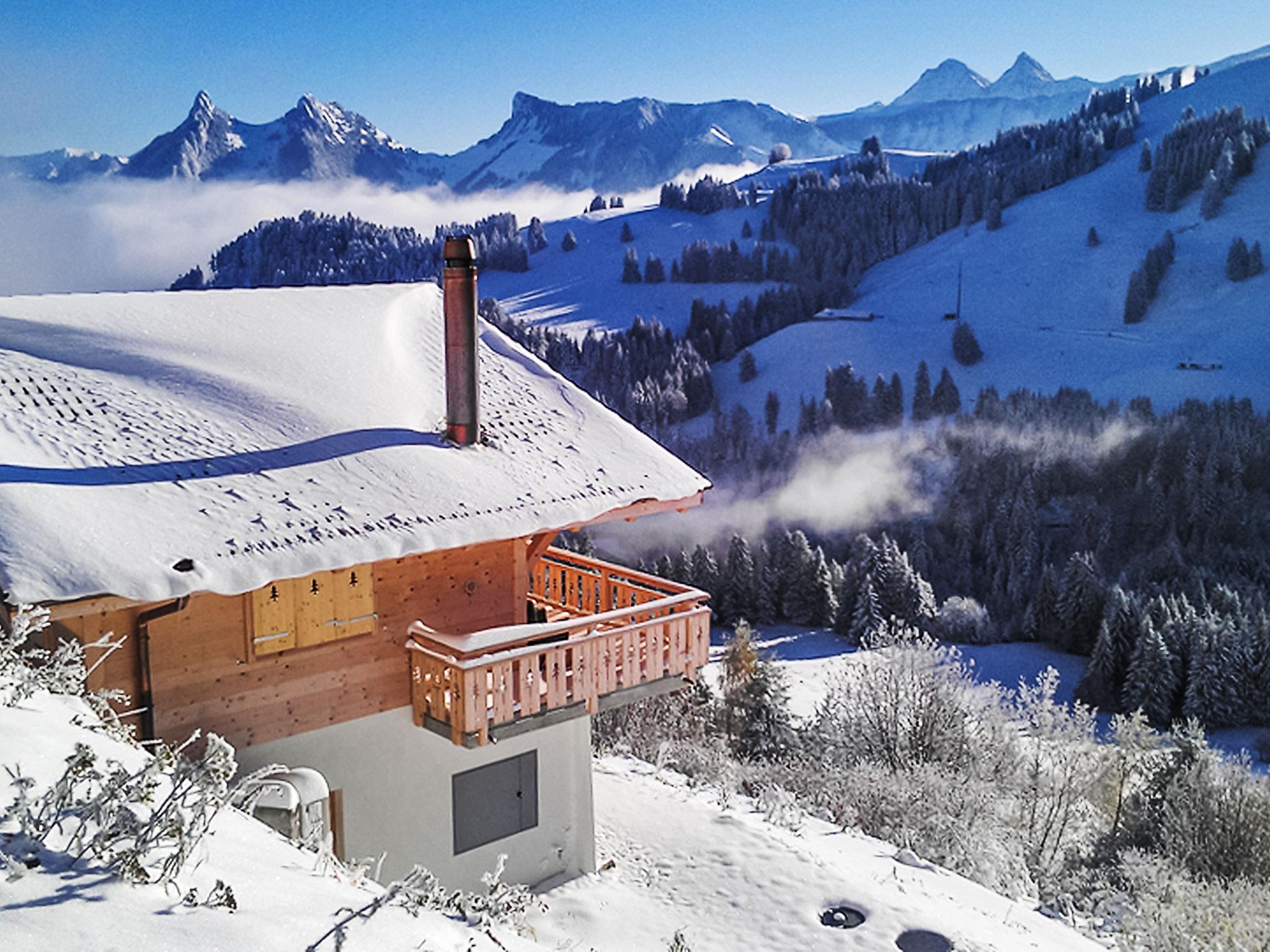 Beautiful chalet "La Poya", 1'200 m a.s.l., 2 storeys. Outside the resort, 1.3 km from the centre of Moléson, in a quiet, sunny position. Private: property. Motor access (mountain road). In Winter: please take snow chains, 4x4 car recommended in winter. Parking at the house at 50 m. Grocery 12 km, restaurant 1.3 km, bus stop 1.3 km, outdoor swimming pool 13 km, thermal baths "Les Bains de la Gruyère" 14 km. Walking paths from the house 1 m, mountain railway 1.5 km, skisport facilities 1.3 km, slopes 1.3 km, ski rental 1.4 km, ski school 1.4 km, sled run 1.5 km, children's playground 1.3 km. Nearby attractions: Gruyère 6 km, Maison de Cailler-Le Chocolat Suisse 11 km, Bulle 11 km, Fribourg 41 km, Gstaad 46 km, Montreux 47 km. Well-known ski regions can easily be reached: Moleson. Well-known lakes can easily be reached: Lac de Gruyère 20 km, Lac Léman 47 km. Hiking paths: Moleson. Please note: car recommended.