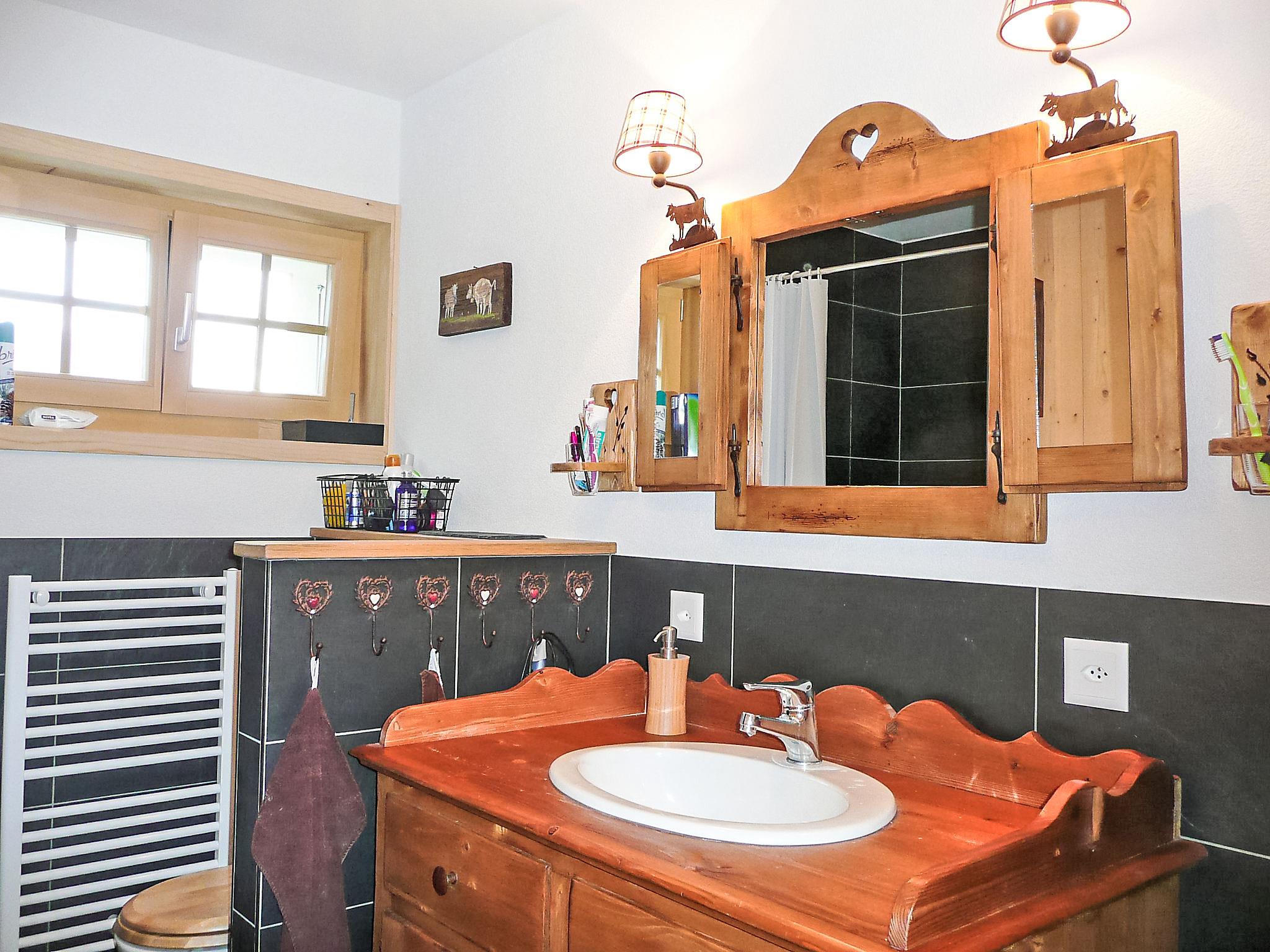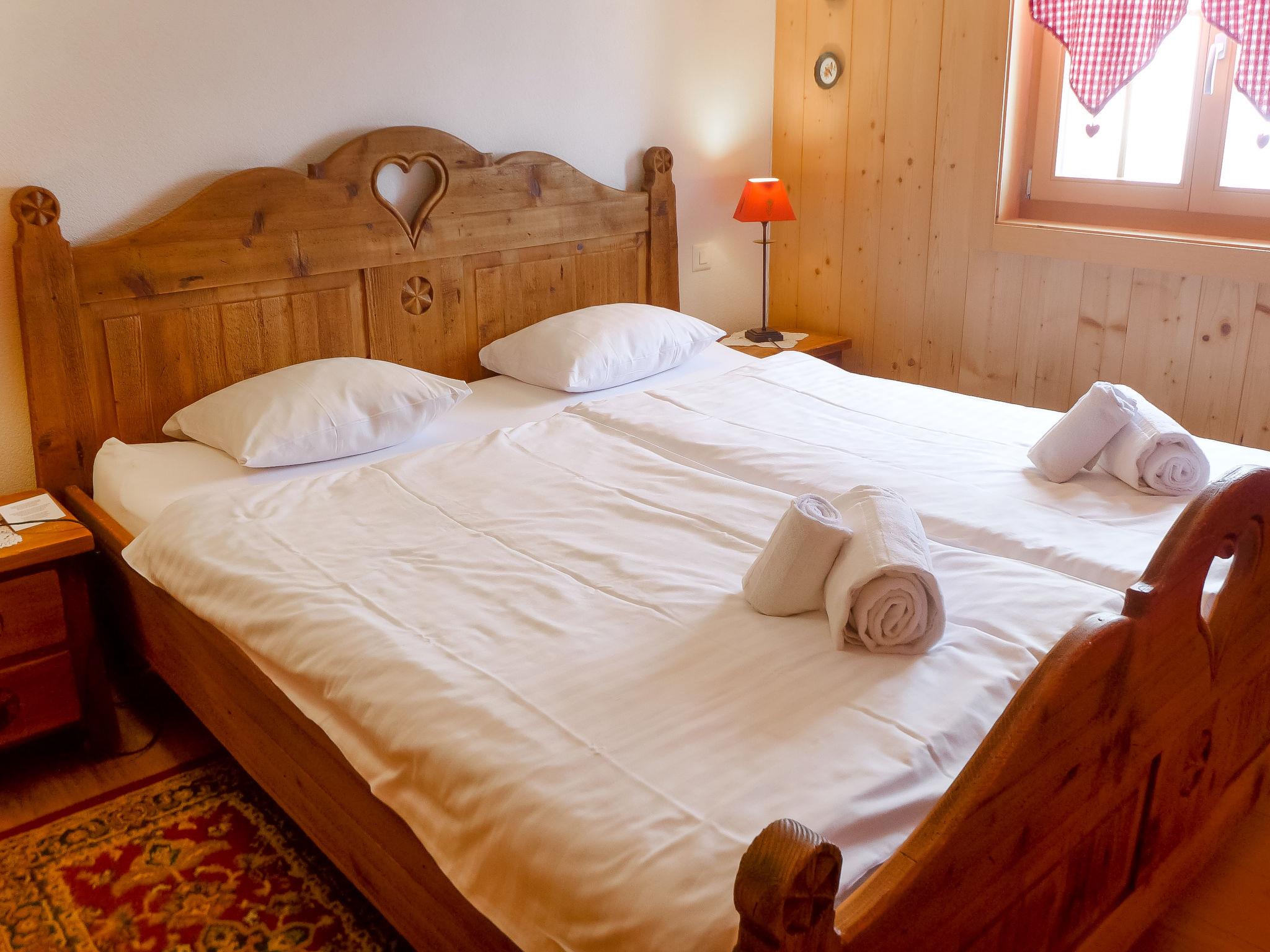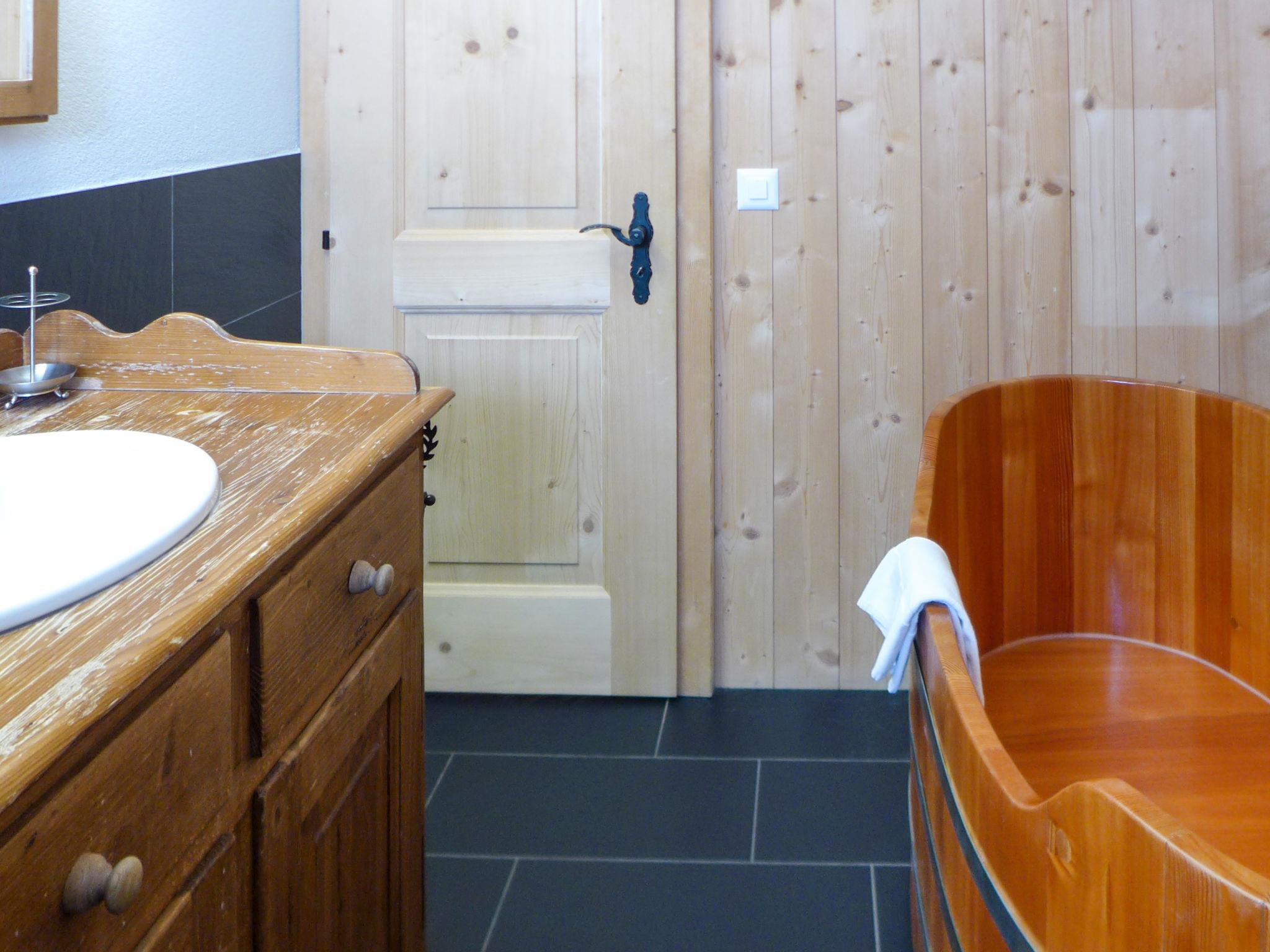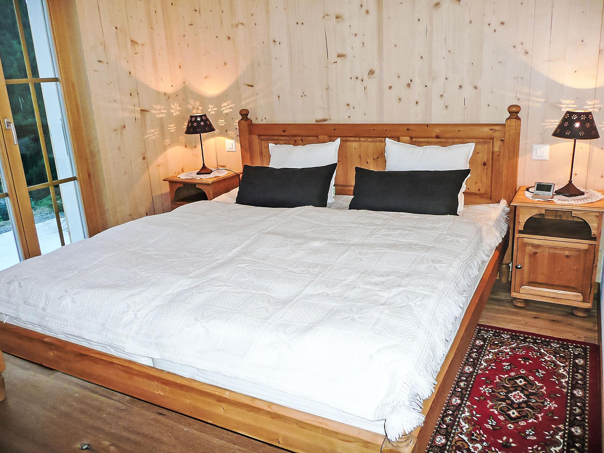 "Chalet La Poya", 4-room chalet 110 m2. Comfortable and tasteful furnishings: living/dining room with open-hearth fireplace, dining table, TV, flat screen, hi-fi system and DVD. Exit to the terrace. Open kitchen (oven, dishwasher, 4 ceramic glass hob hotplates, kettle, microwave, freezer, electric coffee machine, Capsules for coffee machine (Nespresso) extra, raclette grill, fondue Set (cheese)). Sep. WC. On the lower ground floor: 1 room with 1 double bed and satellite TV. Exit to the terrace. Open small alcove with curtain with 1 x 2 bunk beds. Exit to the terrace. 1 room with 1 french bed. Bath/shower/WC. Terrace furniture, electric barbecue. Marvellous panoramic view of the mountains and the countryside. Facilities: washing machine, dryer, hair dryer. Internet (WiFi, free). Please note: non-smokers only. Maximum 2 pets/ dogs allowed. Instead of an enclosed bedroom, some sleeping areas are located in an open-plan area (gallery, alcove, etc.).