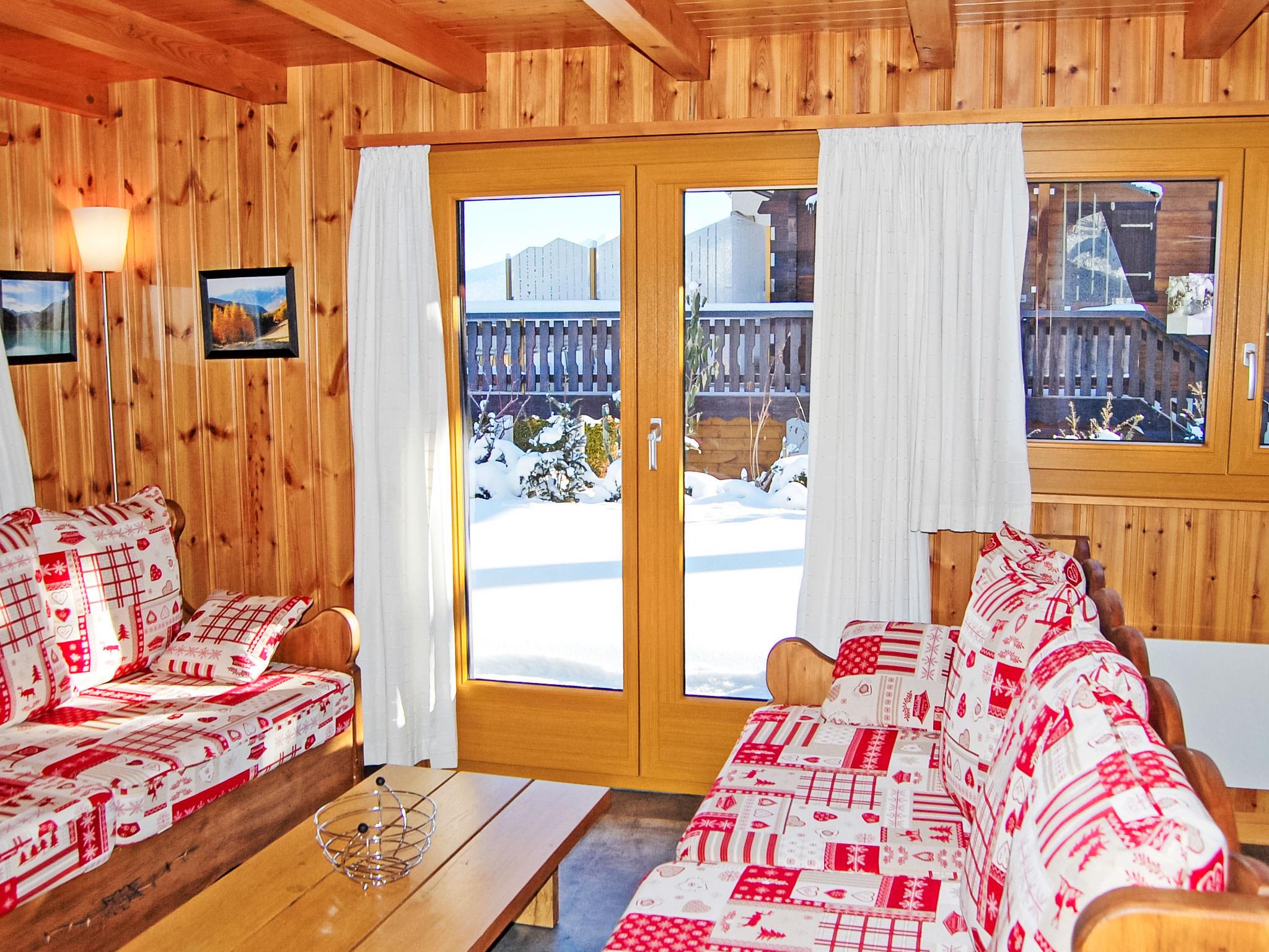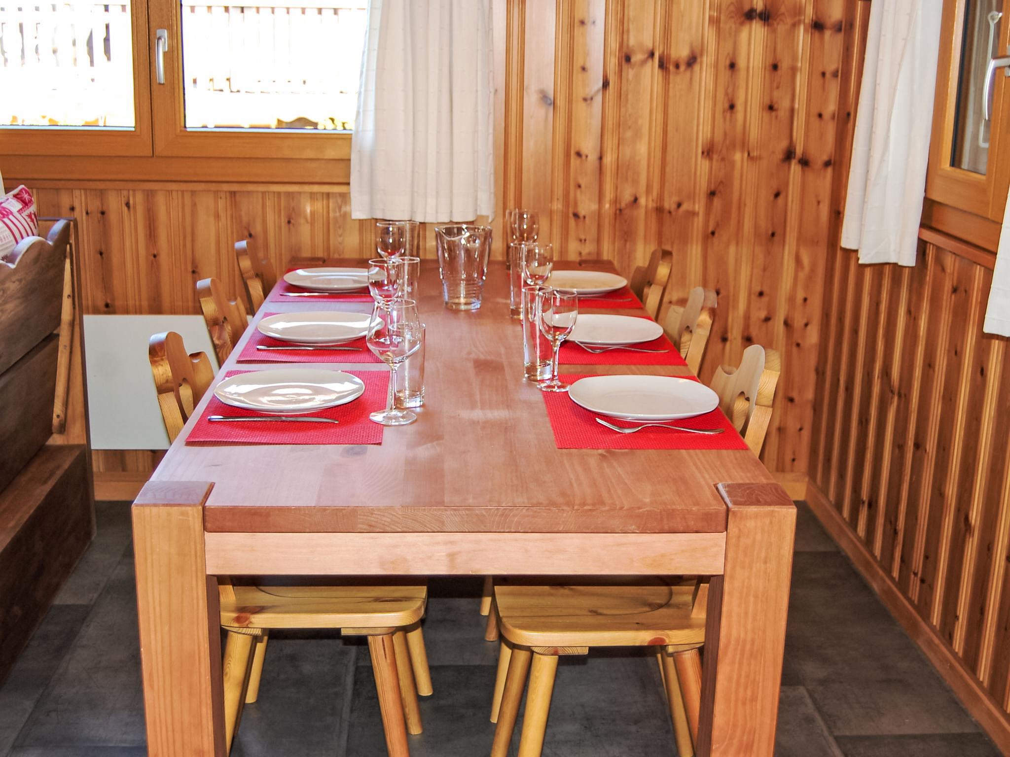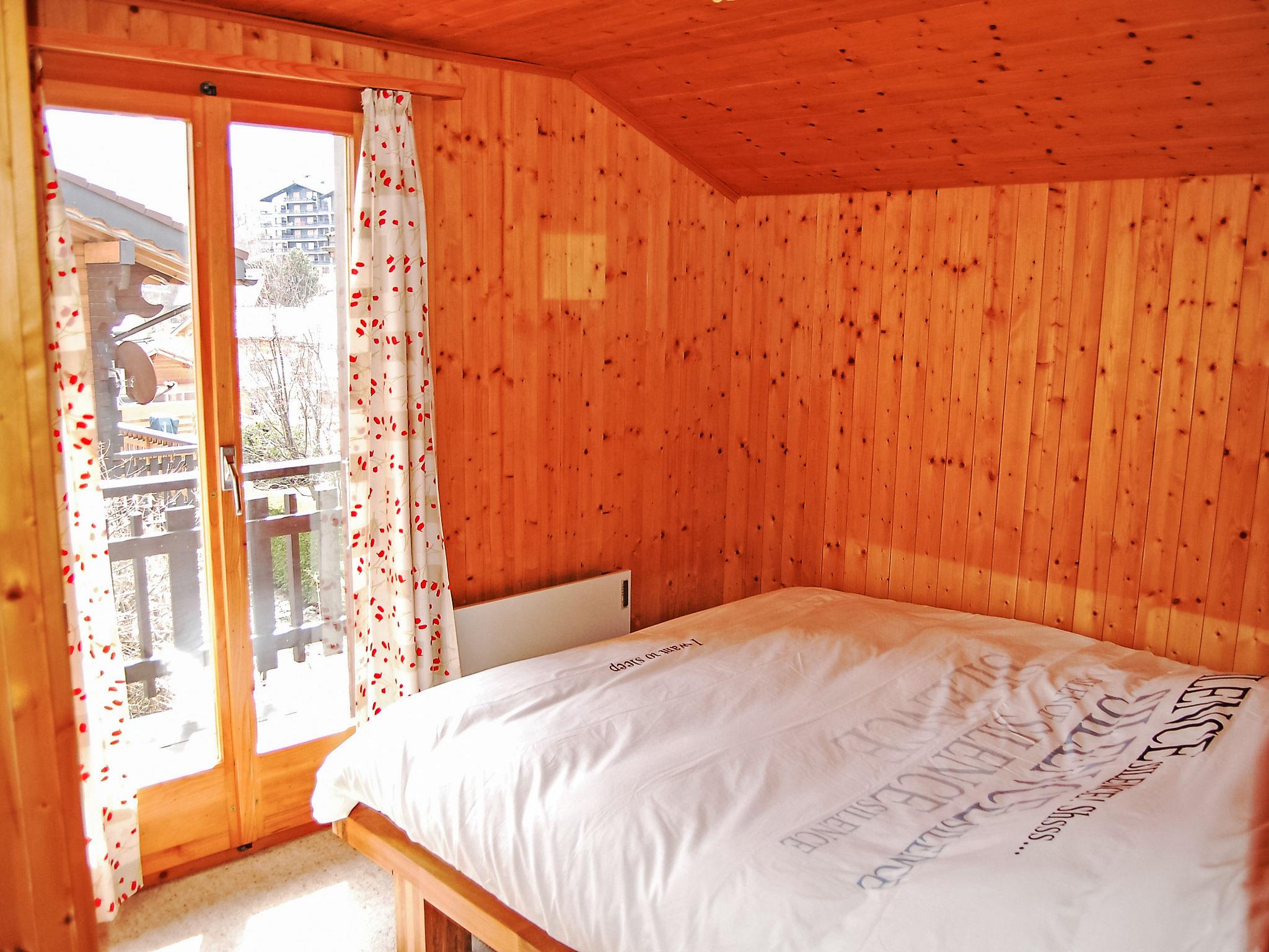 "Coucordin", 4-room chalet 73 m2 on 2 levels. Beautiful furnishings: living/dining room with satellite TV, cable TV, hi-fi system and electric heating. Exit to the terrace. Small, open kitchen (oven, dishwasher, 4 induction hot plates, toaster, kettle, raclette grill, fondue Set (chinoise)). Sep. WC. Upper floor: 1 room with 1 french bed (160 cm, length 200 cm). 1 small room with 1 x 1 bunk beds (90 cm, length 200 cm). 1 room with 1 french bed (180 cm, length 200 cm). Shower/WC, double hand-basin. Small balcony, east facing position, terrace 20 m2, south-east facing position. Terrace furniture, barbecue. Facilities: washing machine, dryer, hair dryer. Internet (WiFi, free). Parking (2 cars). Please note: non-smoking house.