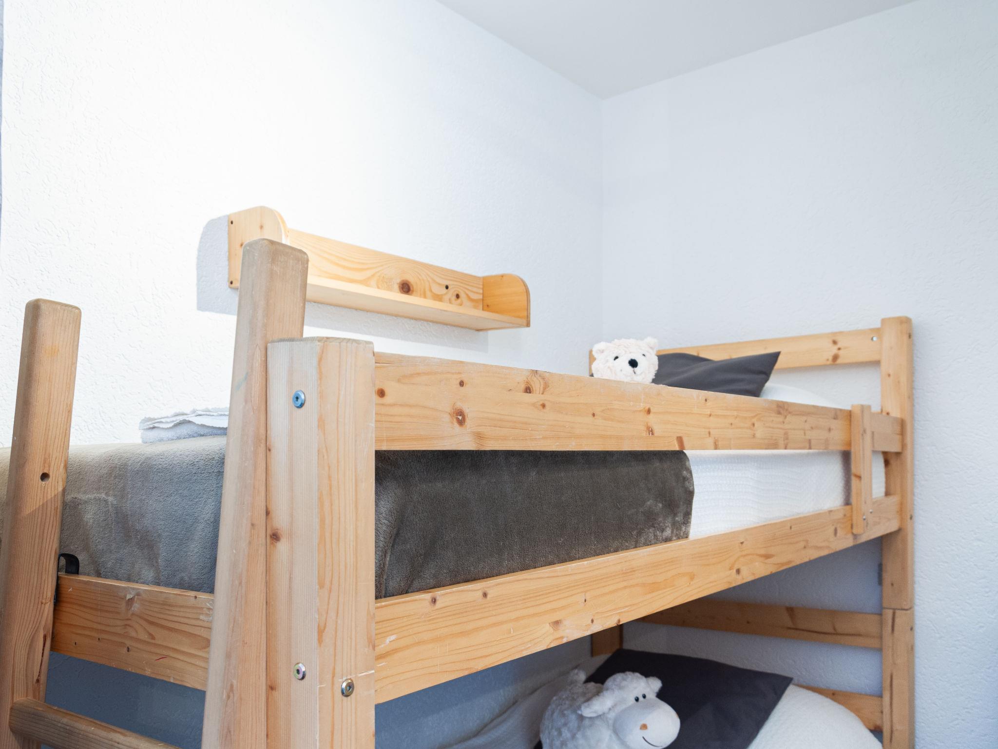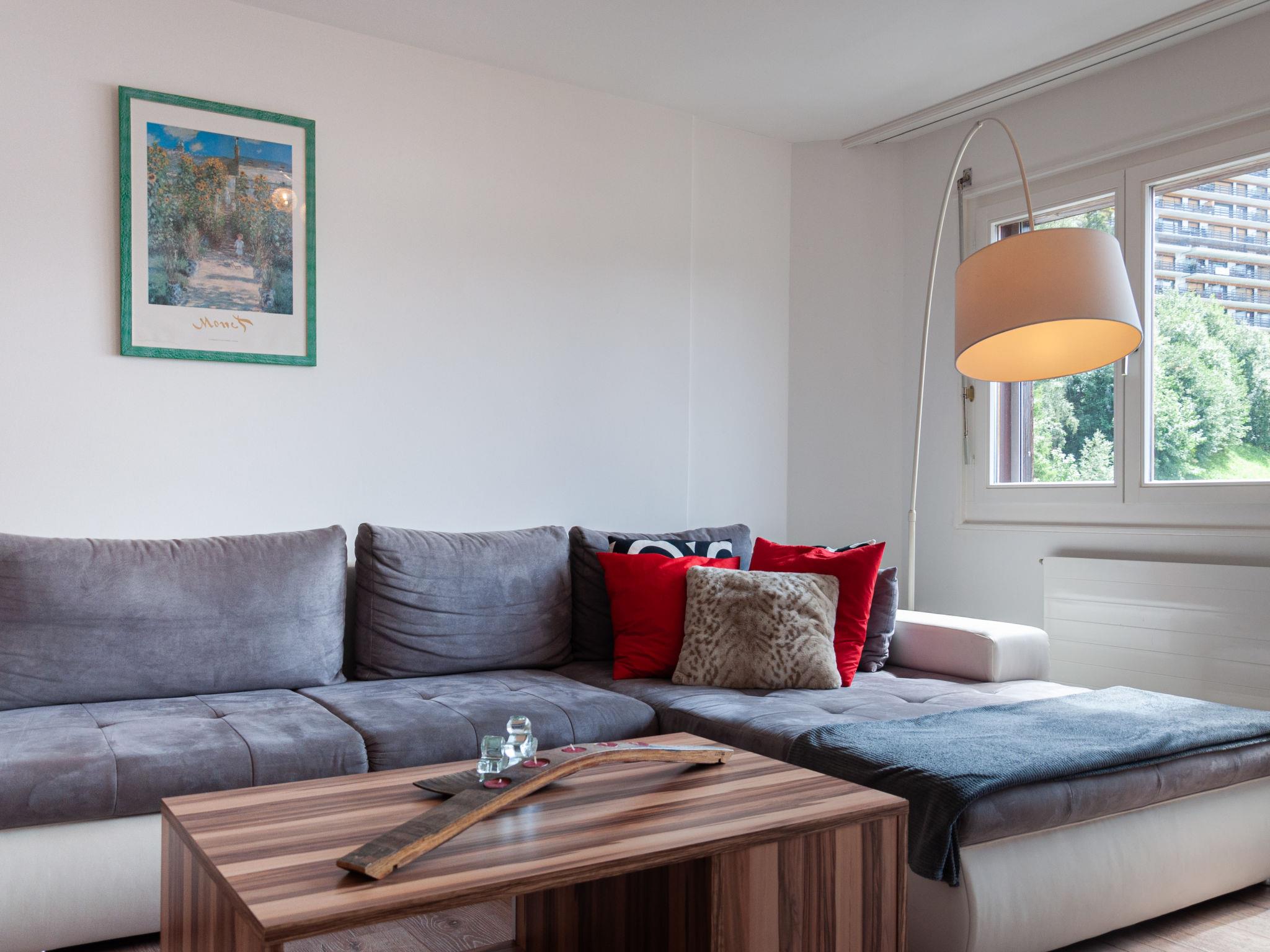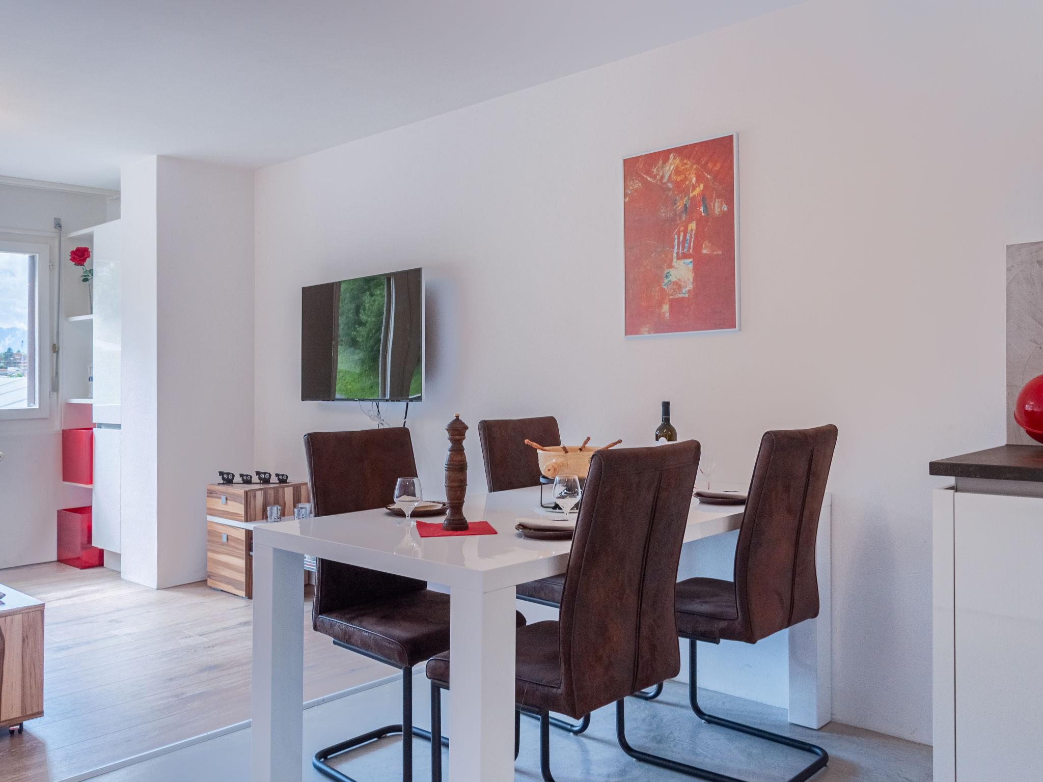 "Lake Placid B5", 2-room apartment on 3rd floor. Object suitable for 2 adults + 2 children. Renovated, beautiful and cosy furnishings: entrance hall. Living/dining room with cable TV and DVD. Open alcove with 1 x 2 bunk beds (90 cm, length 190 cm). 1 room with 1 double bed (2 x 80 cm, length 200 cm), cable TV and DVD. Open kitchen (oven, dishwasher, 4 induction hot plates, toaster, kettle, microwave, freezer, electric coffee machine, Capsules for coffee machine (Nespresso) extra, raclette grill, fondue Set (chinoise, cheese)). Shower/WC. Small balcony, west facing position. Balcony furniture. Beautiful view. Facilities: Internet (WiFi, free). Please note: non-smokers only. Maximum 1 pet/ dog allowed. Instead of an enclosed bedroom, some sleeping areas are located in an open-plan area (gallery, alcove, etc.).