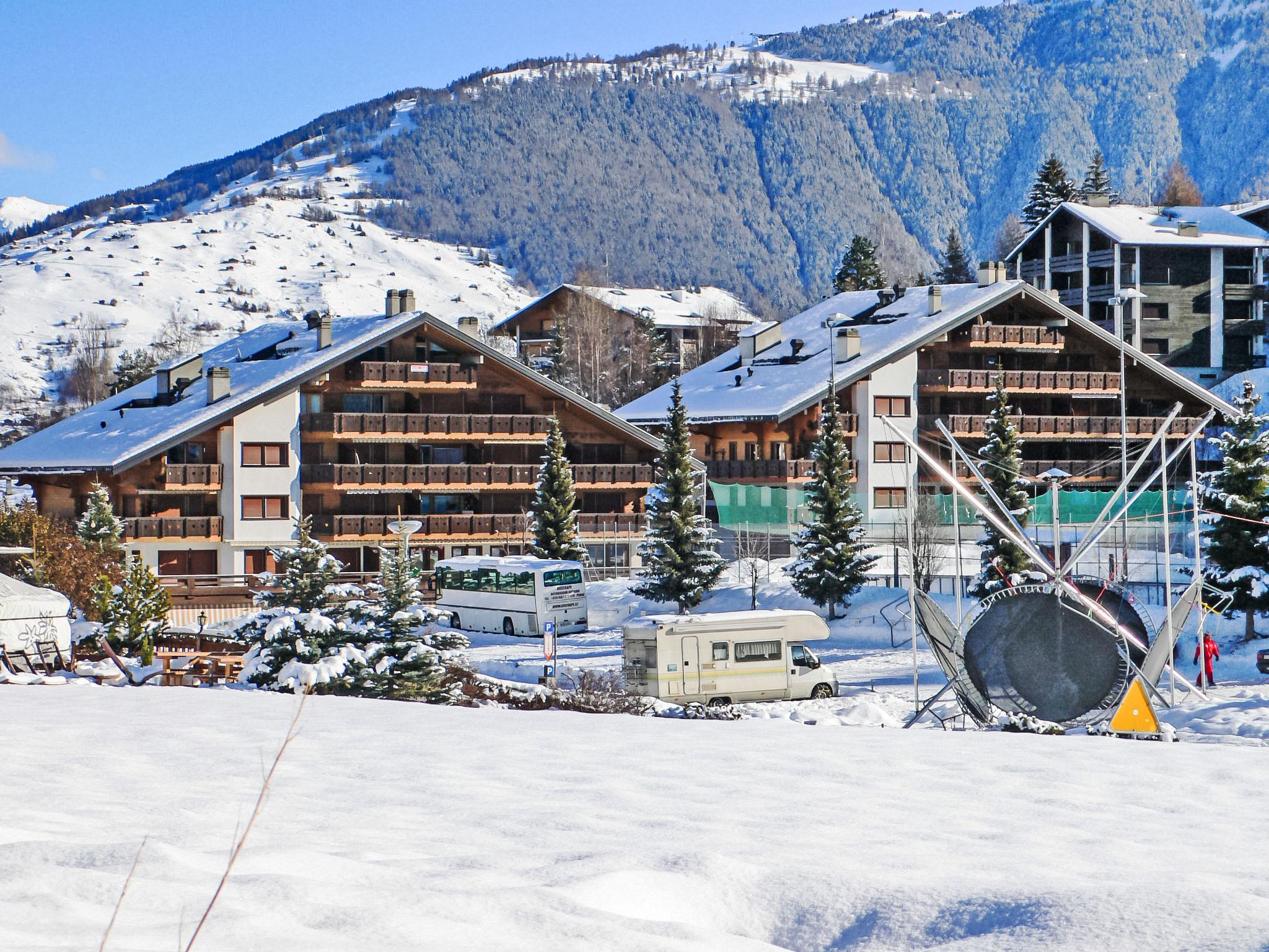 Residence "Lake-Placid", 4 storeys. In the centre, west facing position. In the house: kiosk, lift, storage room for skis, central heating system, washing machine, tumble dryer (for shared use, extra). Parking (limited number of spaces). Supermarket 10 m, restaurant 150 m, bus stop 300 m, railway station "Sion" 14 km, outdoor swimming pool 700 m. Golf course (18 hole) 16 km, tennis 650 m, gondola lift 450 m, ski bus stop 200 m, ice rink 100 m. Nearby attractions: Spa des Bisses 200 m. Well-known ski regions can easily be reached: Nendaz-Tracouet 4 Vallées 450 m. Please note: ski bus (free of charge). Additional accommodations can be booked.