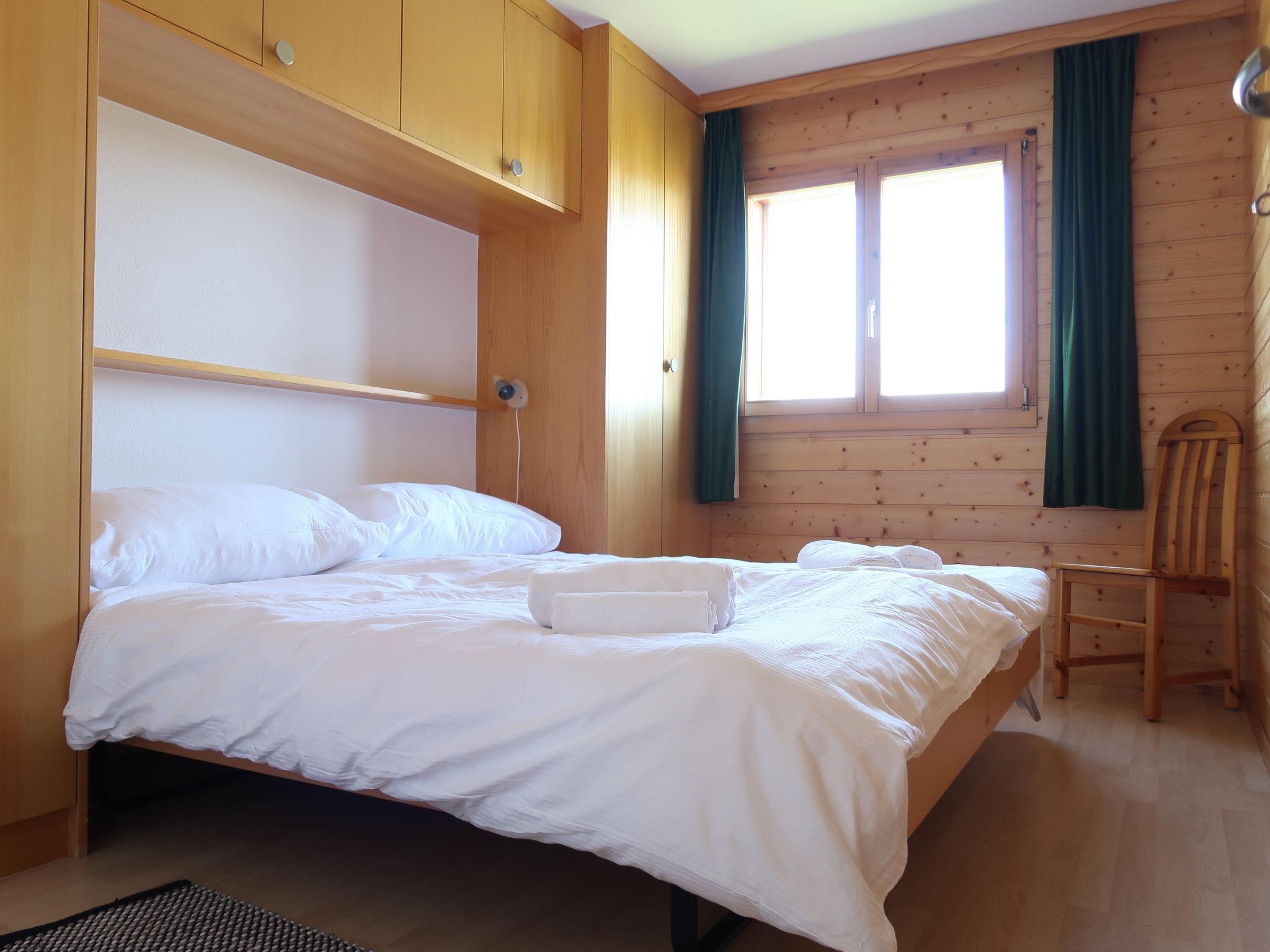 "Les Chouettes 1", 3-room apartment 80 m2, on the ground floor. Comfortable furnishings: living/dining room. Exit to the terrace. Lounge with 1 double sofabed (1 x 160 cm, length 190 cm), open-hearth fireplace and cable TV. Exit to the terrace. 2 rooms, each room with 2 beds (90 cm, length 190 cm). Open kitchen (oven, dishwasher, toaster, kettle, electric coffee machine, Capsules for coffee machine (Nespresso) extra). 2 showers/WC. Terrace 12 m2, south-east facing position terrace 12 m2, north facing position. Terrace furniture. Beautiful view of the resort. Facilities: hair dryer. Internet (WiFi, free). Parking space n 1. Please note: non-smokers only. CH53228