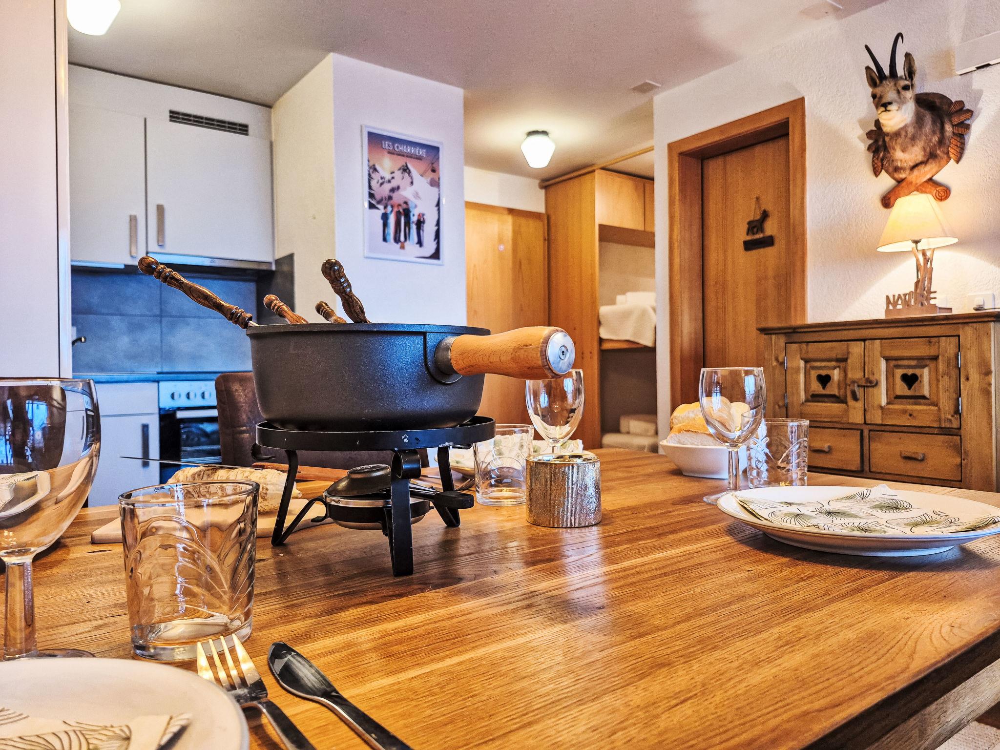 "Haut de Nendaz BK4", 2-room apartment 46 m2. Comfortable and tasteful furnishings: entrance hall with 1 x 2 bunk beds (80 cm, length 190 cm). Living/dining room with open-hearth fireplace (only for decoration), cable TV. Exit to the balcony, north facing position. 1 room with 1 french bed (2 x 80 cm, length 200 cm). Exit to the balcony. Open kitchen (oven, dishwasher, 4 ceramic glass hob hotplates, kettle, microwave, electric coffee machine, Capsules for coffee machine (Delizio), raclette grill, fondue Set (chinoise, cheese)). Shower/WC. Balcony, north facing position. Balcony furniture, barbecue. Very beautiful view of the mountains. Facilities: Internet (WiFi, free). Parking. Please note: non-smokers only. Instead of an enclosed bedroom, some sleeping areas are located in an open-plan area (gallery, alcove, etc.).