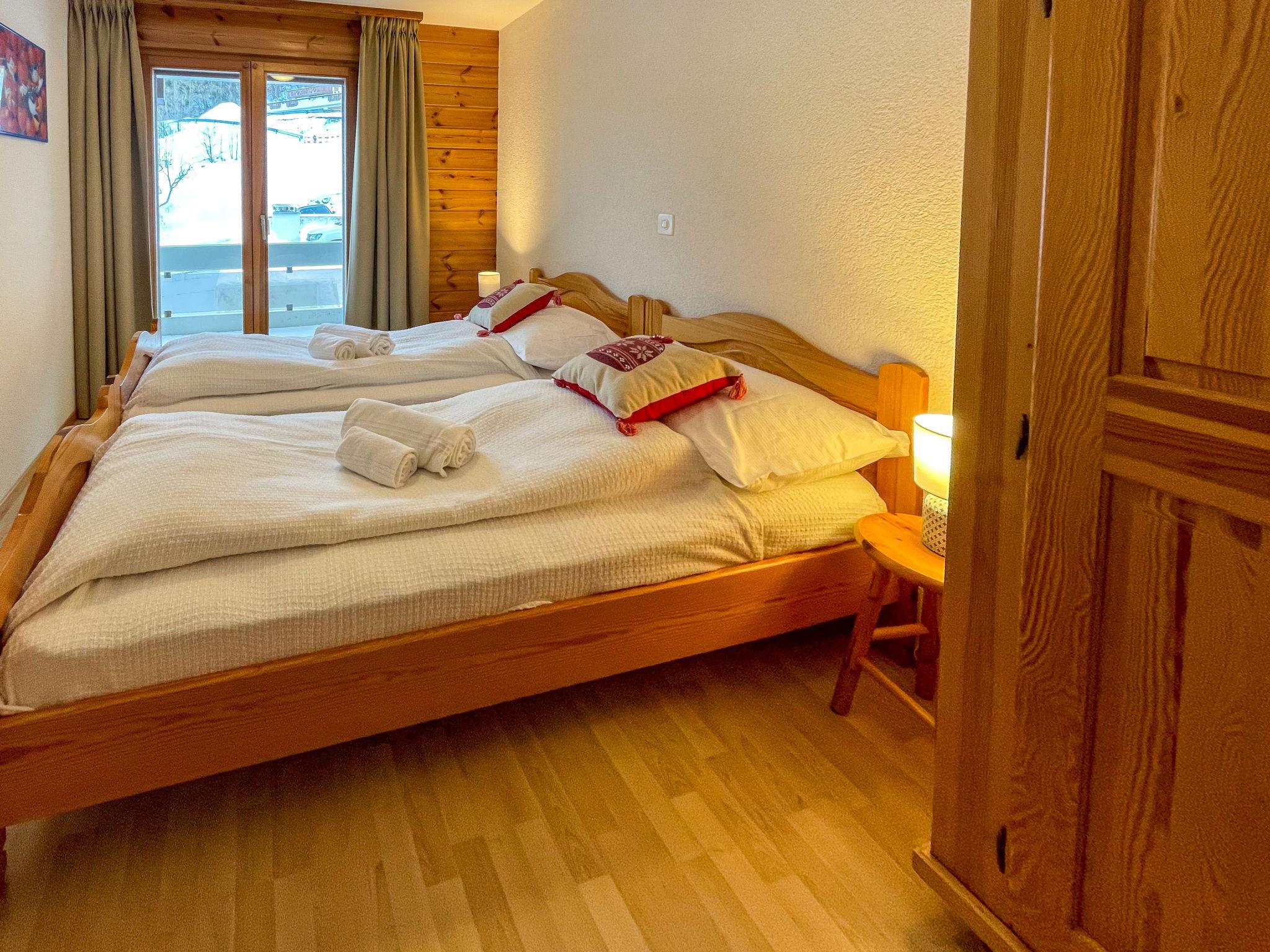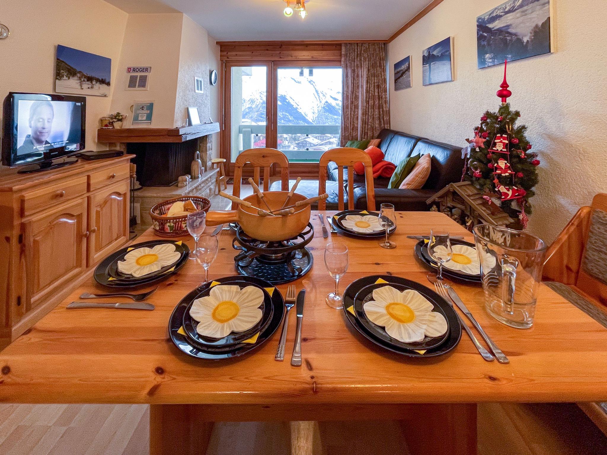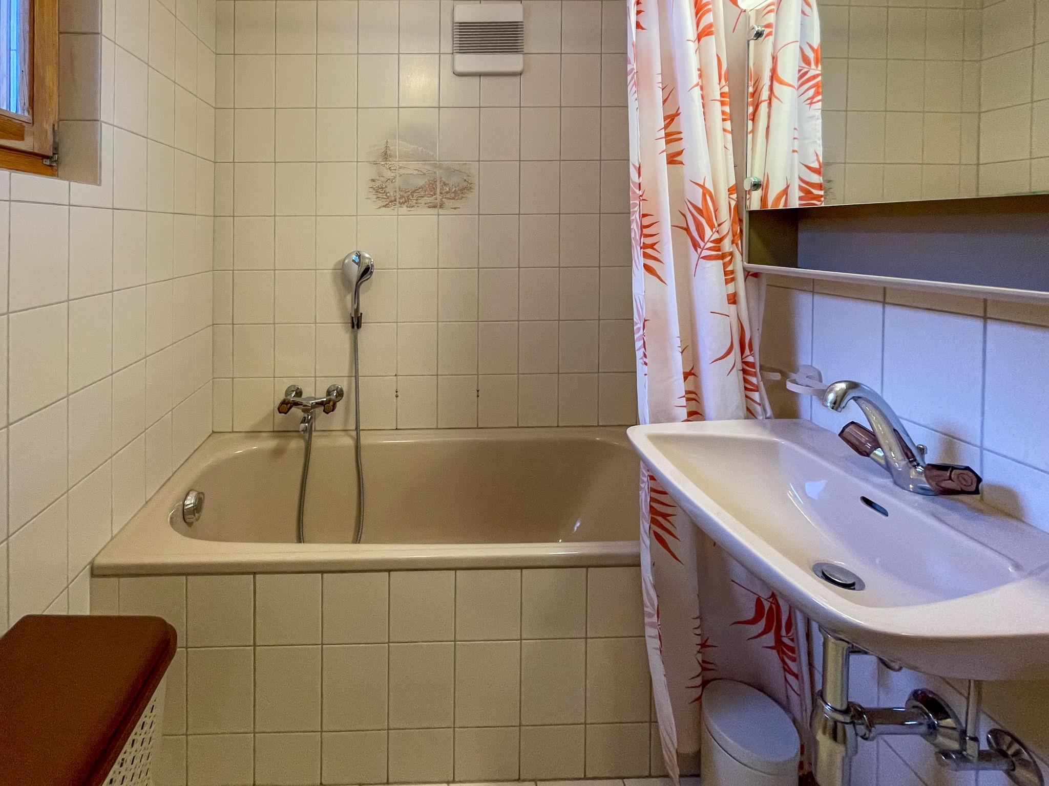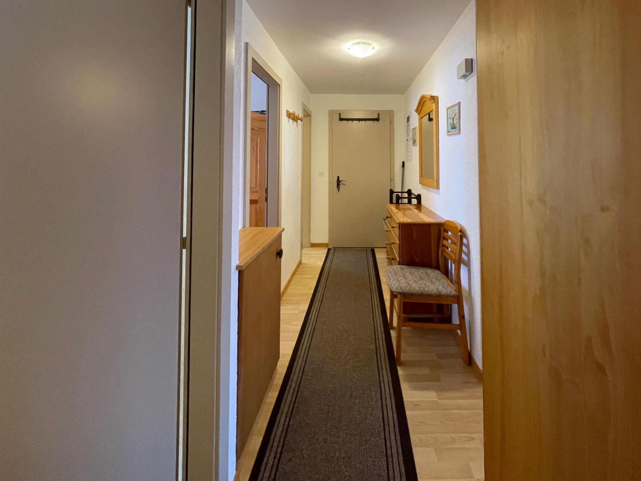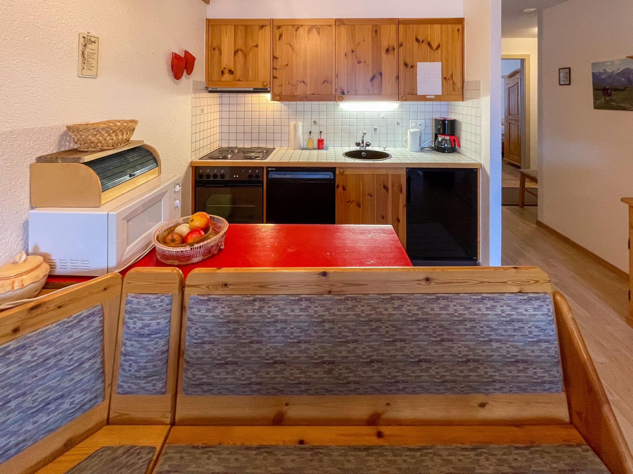"BI3", 3-room apartment 65 m2, on the ground floor. Practical furnishings: living/dining room with open-hearth fireplace, cable TV and DVD. Exit to the balcony, north facing position. 1 room with 2 beds (90 cm, length 200 cm). Exit to the balcony, south facing position. 1 room with 1 french bed (160 cm, length 200 cm). Exit to the balcony, south facing position. Open kitchen (4 hot plates, oven, dishwasher, kettle, microwave, electric coffee machine, raclette grill, fondue Set (chinoise, cheese)). Bath/WC, sep. WC. Balcony, north facing position balcony, south facing position. Balcony furniture. Beautiful view of the valley, the ski run and the resort. Facilities: hair dryer. Internet (WiFi, free). Parking space n i3. Please note: non-smokers only.