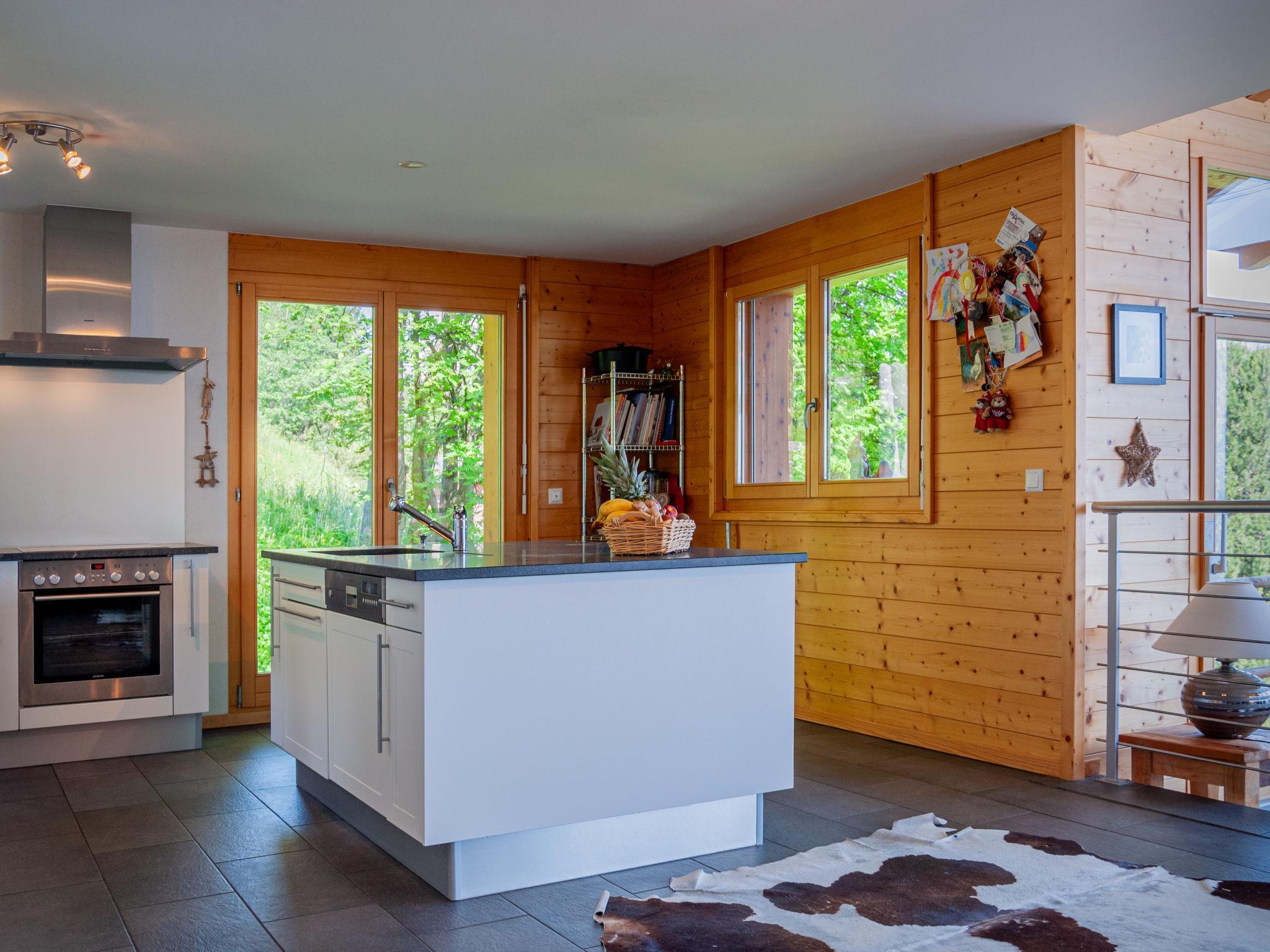 "Chalet Arvine", 5-room chalet 200 m2 on 3 levels. Beautiful and tasteful furnishings: entrance hall. Large living/dining room 80 m2 with panoramic window with open-hearth fireplace, dining table, cable TV and hi-fi system. Exit to the balcony, to the terrace. Open kitchen (oven, dishwasher, 4 ceramic glass hob hotplates, toaster, kettle, microwave, electric coffee machine, Capsules for coffee machine (Nespresso) extra, raclette grill, fondue Set (chinoise, cheese)). Sep. WC. Heating. On the lower ground floor: 1 room with 1 french bed (160 cm, length 200 cm), bath/WC. 1 room with 2 beds (90 cm, length 200 cm), shower/WC. Upper floor: 1 large room with 1 french bed (180 cm, length 200 cm), bath/WC and double hand-basin. 1 large room with 1 french bed (160 cm, length 200 cm), bath/WC. Terrace furniture, barbecue, deck chairs (2). Panoramic view of the mountains, the valley and the resort. Facilities: washing machine, dryer, children's high chair, baby cot. Internet (WiFi, free). Parking (3 cars). Please note: non-smokers only. 1 covered parking space in the garage télénendaz available during the winter.