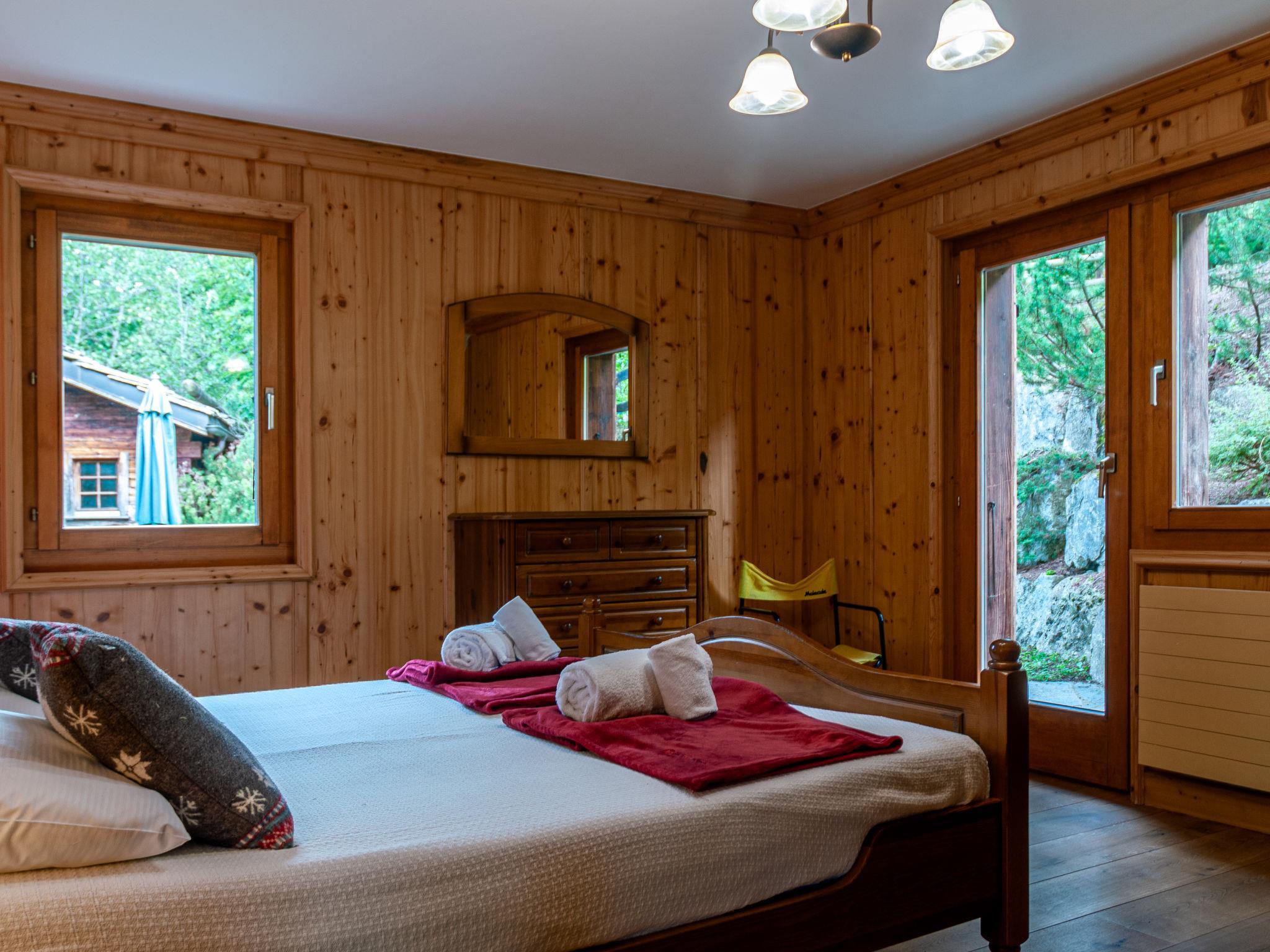 "Belle Vue", 4-room chalet 180 m2 on 2 levels. Spacious and bright, partly with sloping ceilings, very comfortable and beautiful furnishings: entrance hall. Exit to the veranda. Large living/dining room with veranda, sliding door, panoramic window with open-hearth fireplace, cable TV and hi-fi system. Exit to the balcony, to the terrace, north facing position and west facing position. 1 large room, south facing position with 1 french bed (160 cm, length 200 cm), bath/WC and double hand-basin. Exit to the terrace, south facing position. Open kitchen (oven, dishwasher, 4 ceramic glass hob hotplates, toaster, kettle, microwave, freezer, electric coffee machine, Capsules for coffee machine (Nespresso) extra, raclette grill, fondue Set (chinoise, cheese)) with bar, dining table. Sep. WC. Upper floor: 1 room with 1 french bed (160 cm, length 200 cm), shower/WC. 1 room with 2 beds (80 cm, length 200 cm), 1 french bed (160 cm, length 200 cm), bath/WC and double hand-basin. Balcony 20 m2, north facing position, large terrace 40 m2, west facing position, small terrace 15 m2, south facing position, garden 180 m2, east facing position. Terrace furniture, barbecue, deck chairs (4). Very beautiful view of the mountains. Facilities: washing machine, dryer, iron, children's high chair, baby cot. Internet (WiFi, free). Parking (3 cars), height 220 cm. Please note: non-smoking house.