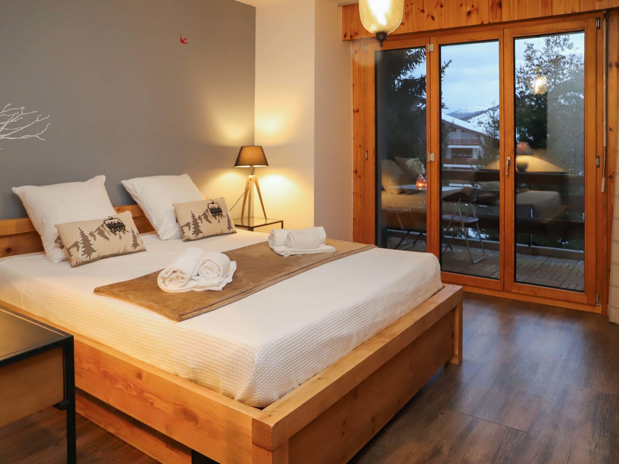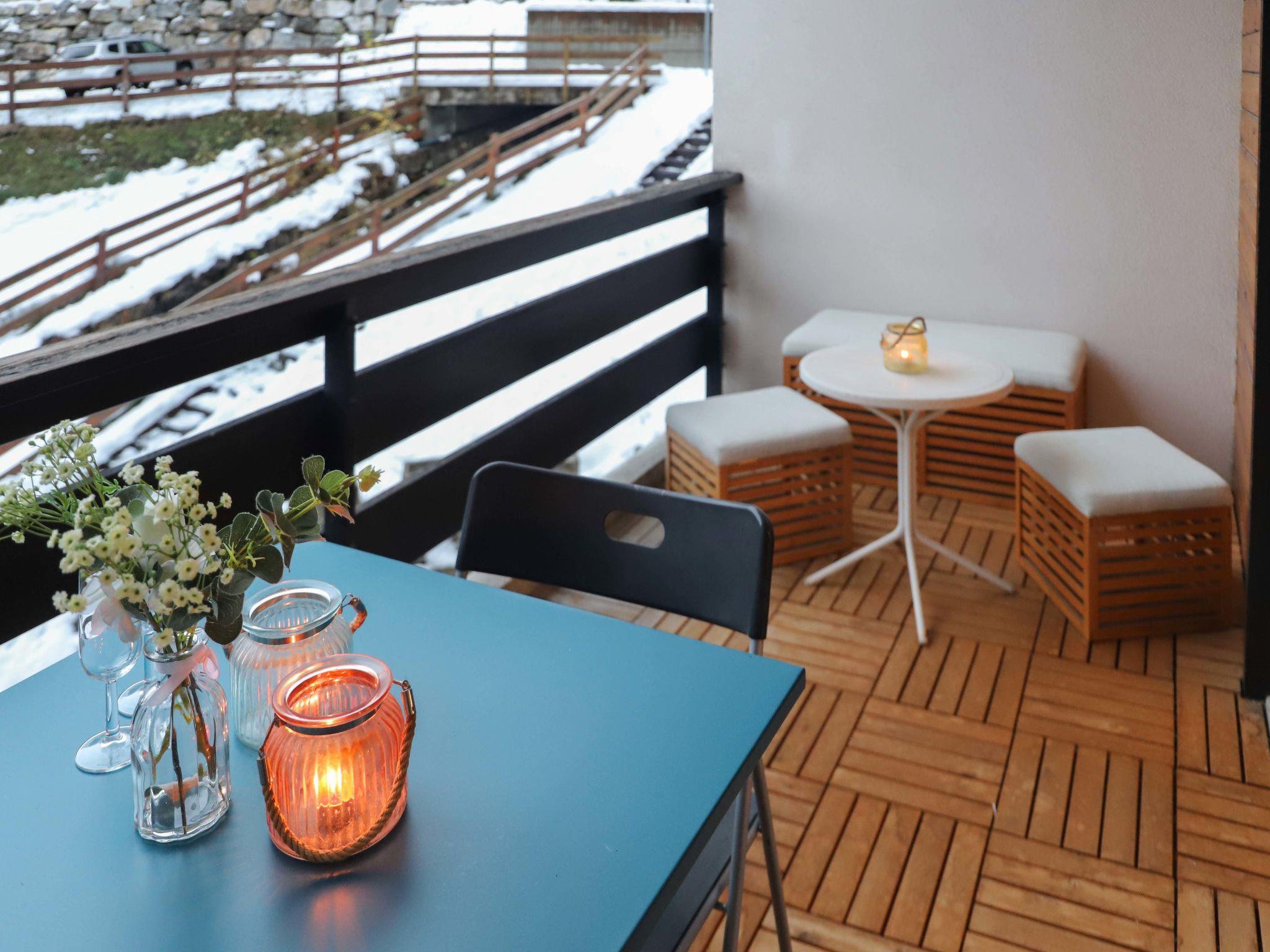 "Chaedoz 24-1", 2-room apartment 70 m2 on 2nd floor. Object suitable for 2 adults + 2 children. Spacious, comfortable and modern furnishings: living/dining room with open-hearth fireplace (only for decoration), cable TV and DVD. 1 room with 1 french bed (160 cm, length 200 cm). Exit to the balcony, east facing position. Alcove with 1 x 2 bunk beds (70 cm, length 180 cm). Open kitchen (oven, dishwasher, 4 ceramic glass hob hotplates, toaster, kettle, electric coffee machine, raclette grill, fondue Set (chinoise, cheese)). Exit to the balcony, west facing position. Bath/WC. Balcony, west facing position balcony, east facing position. Balcony furniture. Beautiful panoramic view of the mountains. Facilities: children's high chair, baby cot, hair dryer. Internet (WiFi, free). Parking (roofed). Please note: non-smokers only. Instead of an enclosed bedroom, some sleeping areas are located in an open-plan area (gallery, alcove, etc.).