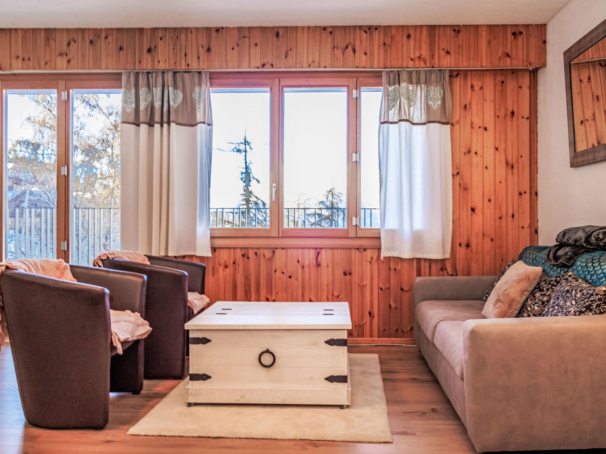 "Chaedoz 36", 2-room apartment 45 m2 on 3rd floor, west facing position. Bright, renovated in 2024, beautiful and tasteful furnishings: living/dining room with 1 double sofabed (1 x 140 cm, length 200 cm), cable TV. Exit to the balcony, west facing position. 1 room with 1 french bed (160 cm, length 200 cm). Open kitchen (oven, dishwasher, 4 induction hot plates, toaster, kettle, electric coffee machine, Capsules for coffee machine (Nespresso) extra, raclette grill, combination microwave, fondue Set (cheese)). Shower/WC. Balcony, west facing position. Balcony furniture. Beautiful view of the mountains. Facilities: Internet (WiFi, free). Please note: non-smokers only. Maximum 1 pet/ dog allowed.