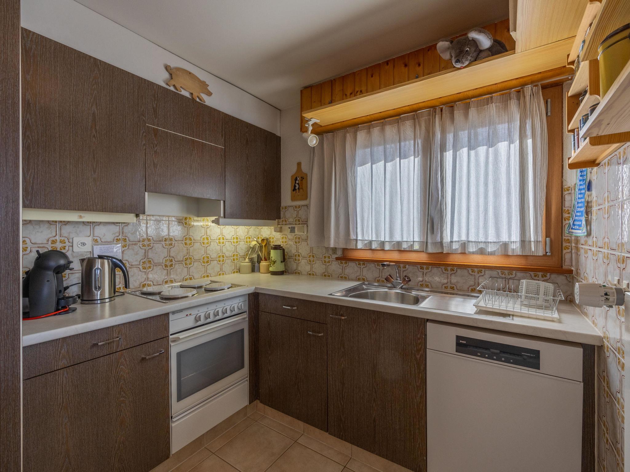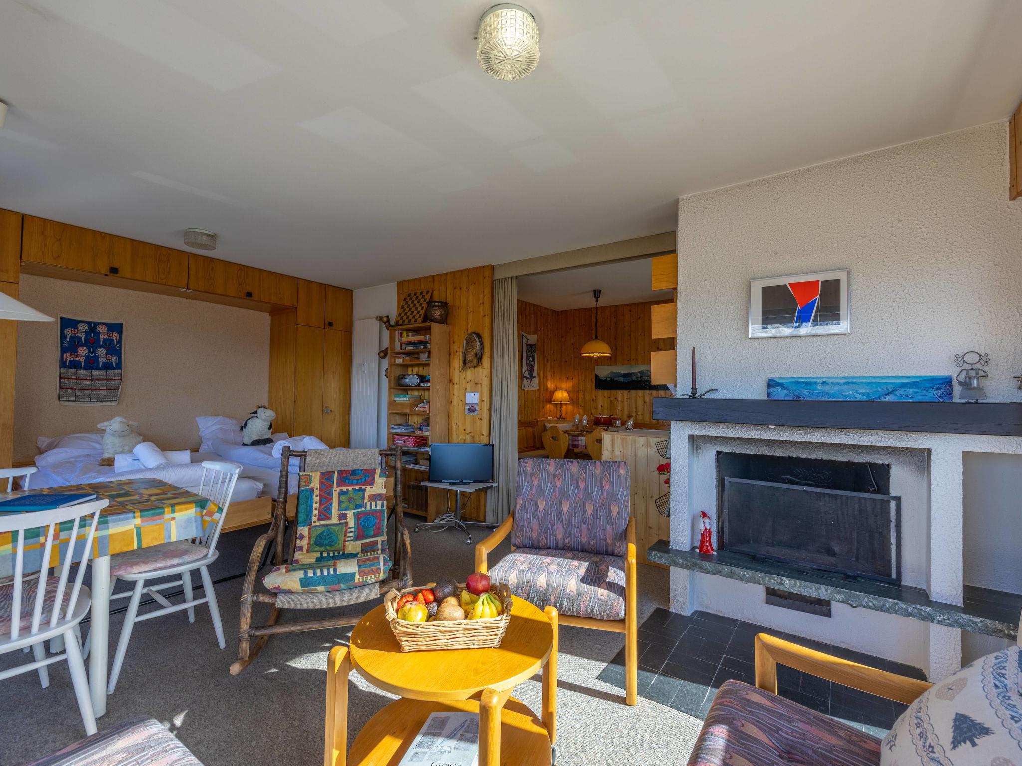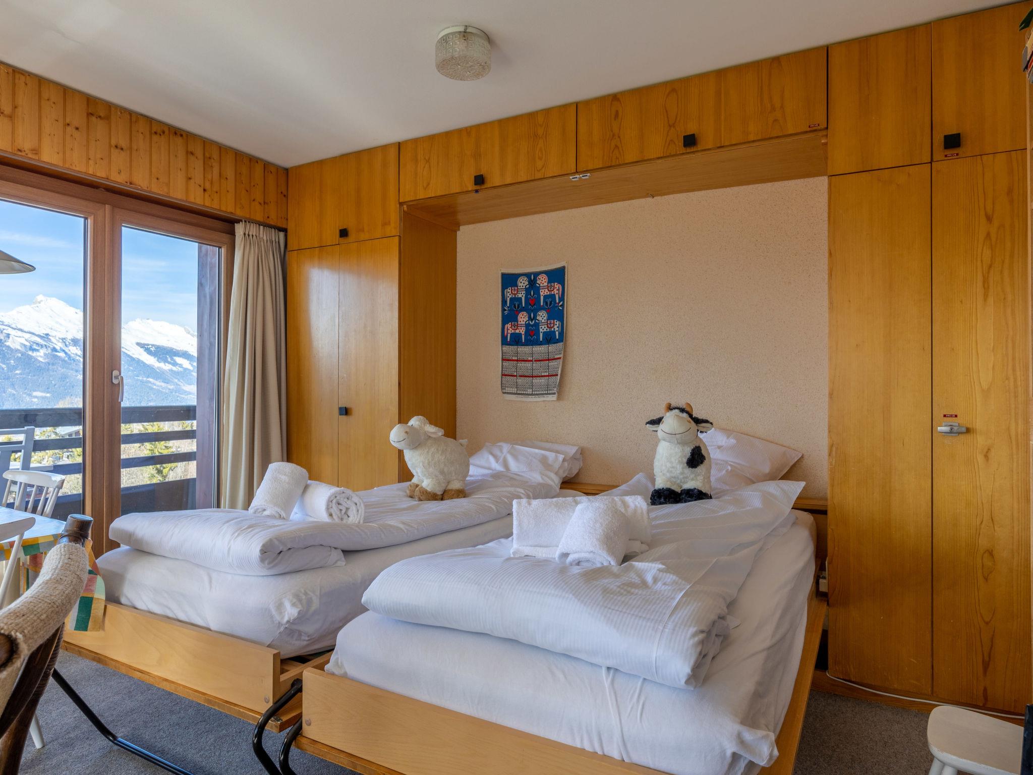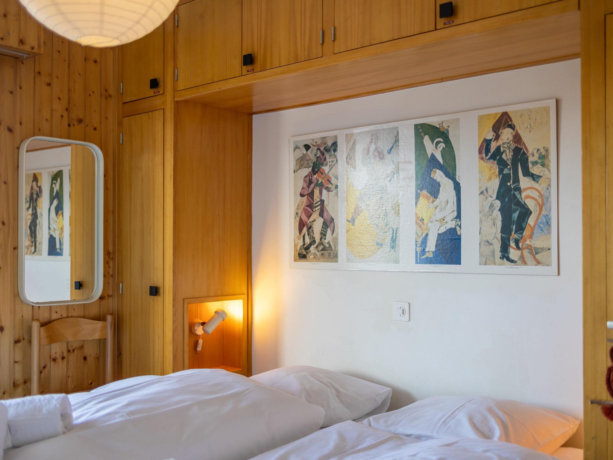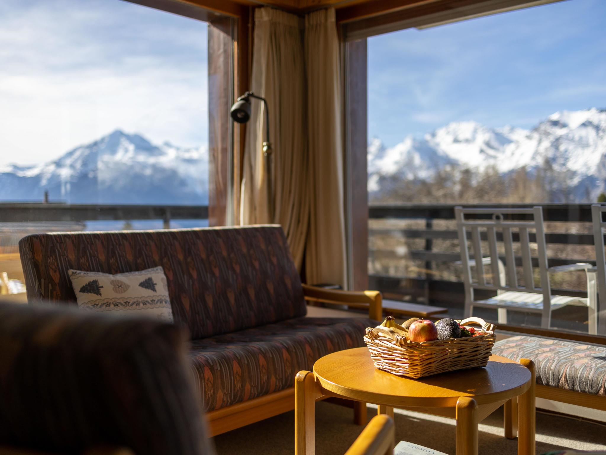"Muverans I L2", 2-room apartment 60 m2 on 2nd floor. Simple furnishings: living/dining room with 2 fold-away beds (90 cm, length 190 cm), open-hearth fireplace (only for decoration), cable TV. 1 room with 1 french bed (160 cm, length 200 cm). Kitchen (4 hot plates, oven, dishwasher, toaster, kettle, electric coffee machine, Capsules for coffee machine (Dolce Gusto) extra, fondue Set (cheese)). Shower/WC. Balcony, west facing position balcony, north facing position. Beautiful view of the mountains and the valley. Facilities: Internet (WiFi, free). Please note: non-smokers only.