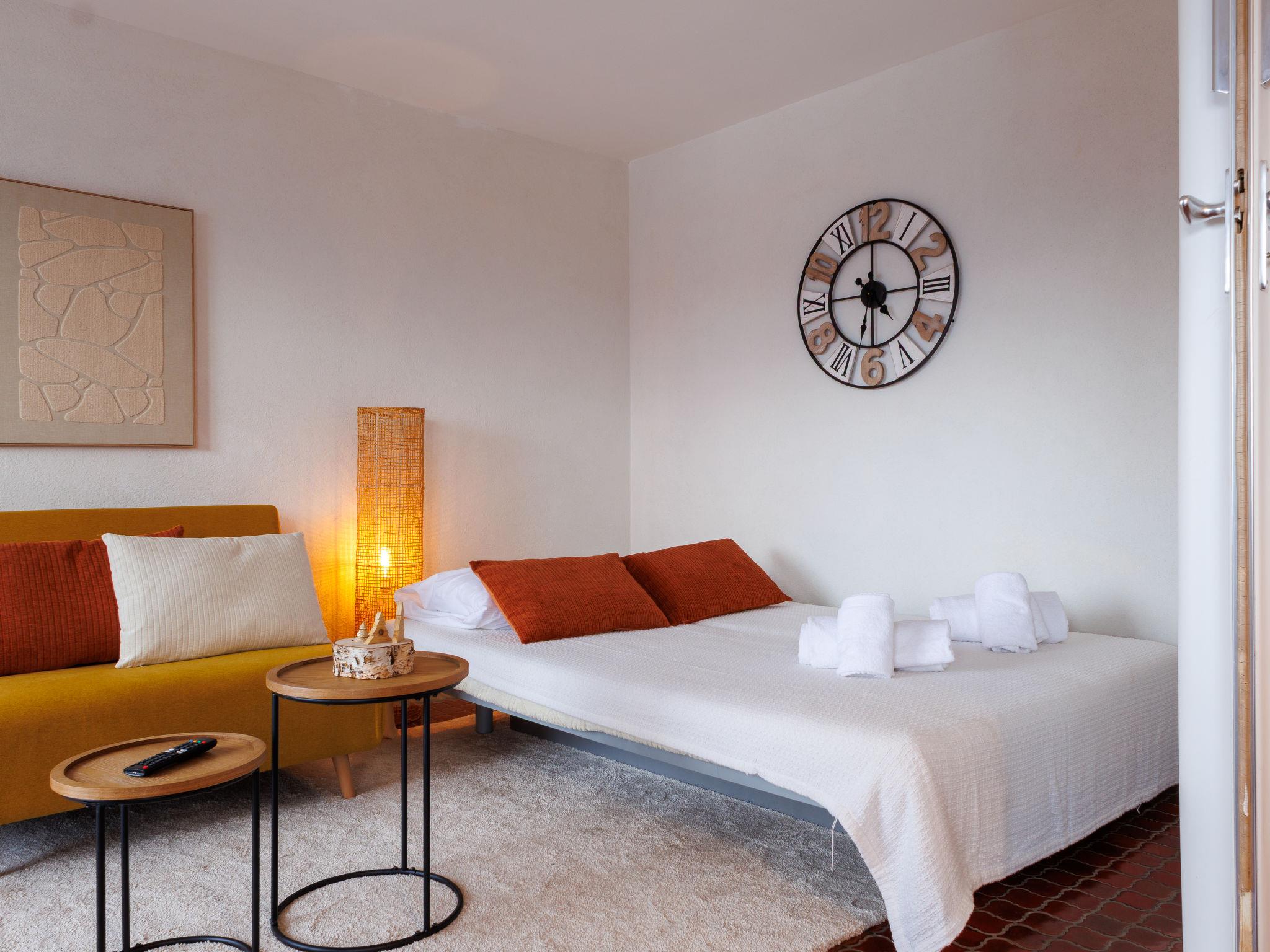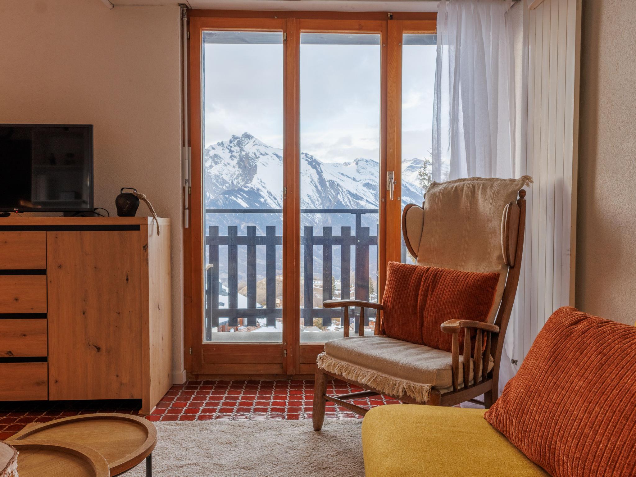 "Jolimont J4", 1-room apartment on 4th floor, north facing position. Object suitable for 2 adults + 2 children. Practical and beautiful furnishings: entrance hall with 1 x 2 bunk beds. Living/dining room with 1 sofabed and cable TV. Exit to the balcony. Open kitchen (3 hot plates, oven, toaster, kettle, microwave, electric coffee machine). Shower/WC. Balcony. Very beautiful view of the mountains. Facilities: Internet (WiFi, free). Please note: non-smokers only. Instead of an enclosed bedroom, some sleeping areas are located in an open-plan area (gallery, alcove, etc.).