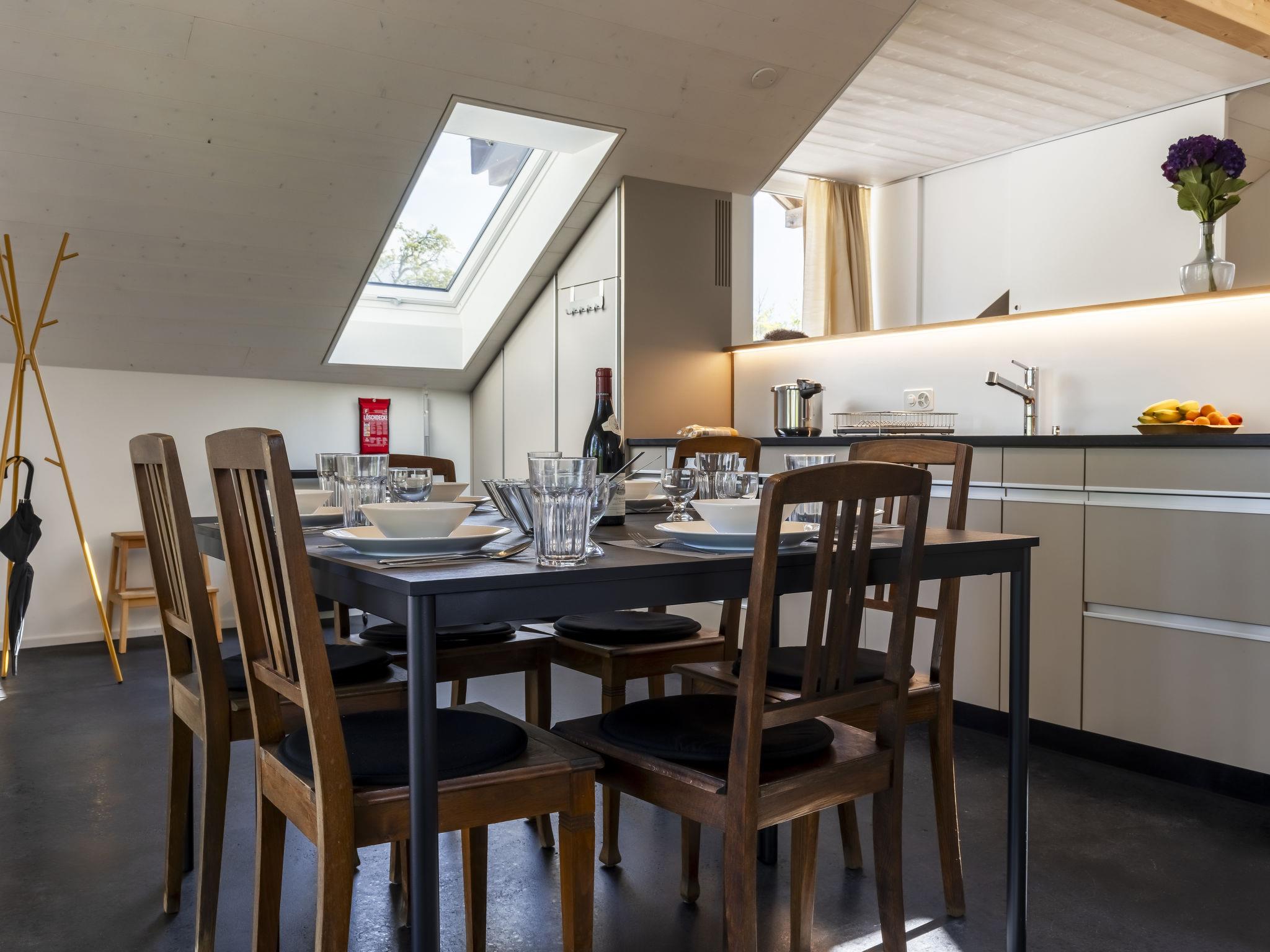 "Grangettes", 4-room house 120 m2 on 2 levels, south-west facing position. Bright, partly with sloping ceilings, tasteful and stylish furnishings: living/dining room with 1 sofabed (140 cm, length 200 cm). Exit to the garden, pergola with 1 double bed (180 cm, length 200 cm), bathroom. Open kitchen (dishwasher, 4 ceramic glass hob hotplates, toaster, kettle, microwave, electric coffee machine, Capsules for coffee machine (Nespresso), raclette grill, fondue Set (cheese)). Sep. WC. Upper floor: living/dining room with 1 sofabed (140 cm, length 200 cm), open-hearth fireplace. Exit to the terrace. 1 room with 1 double bed (180 cm, length 200 cm). Large, open kitchen (oven, dishwasher, 4 ceramic glass hob hotplates, toaster, kettle, microwave, electric coffee machine, Capsules for coffee machine (Nespresso) extra). Shower/WC. Terrace, south-west facing position, large patio, east facing position, garden. Terrace furniture, barbecue. Marvellous view of the lake and the mountains. Facilities: washing machine, iron, children's high chair, baby cot for up to 3 year olds (extra), hair dryer. Internet (WiFi, free). Parking (2 cars) at the house. Please note: non-smokers only. Maximum 1 small pet/ dog allowed. TV without channels but Netflix.