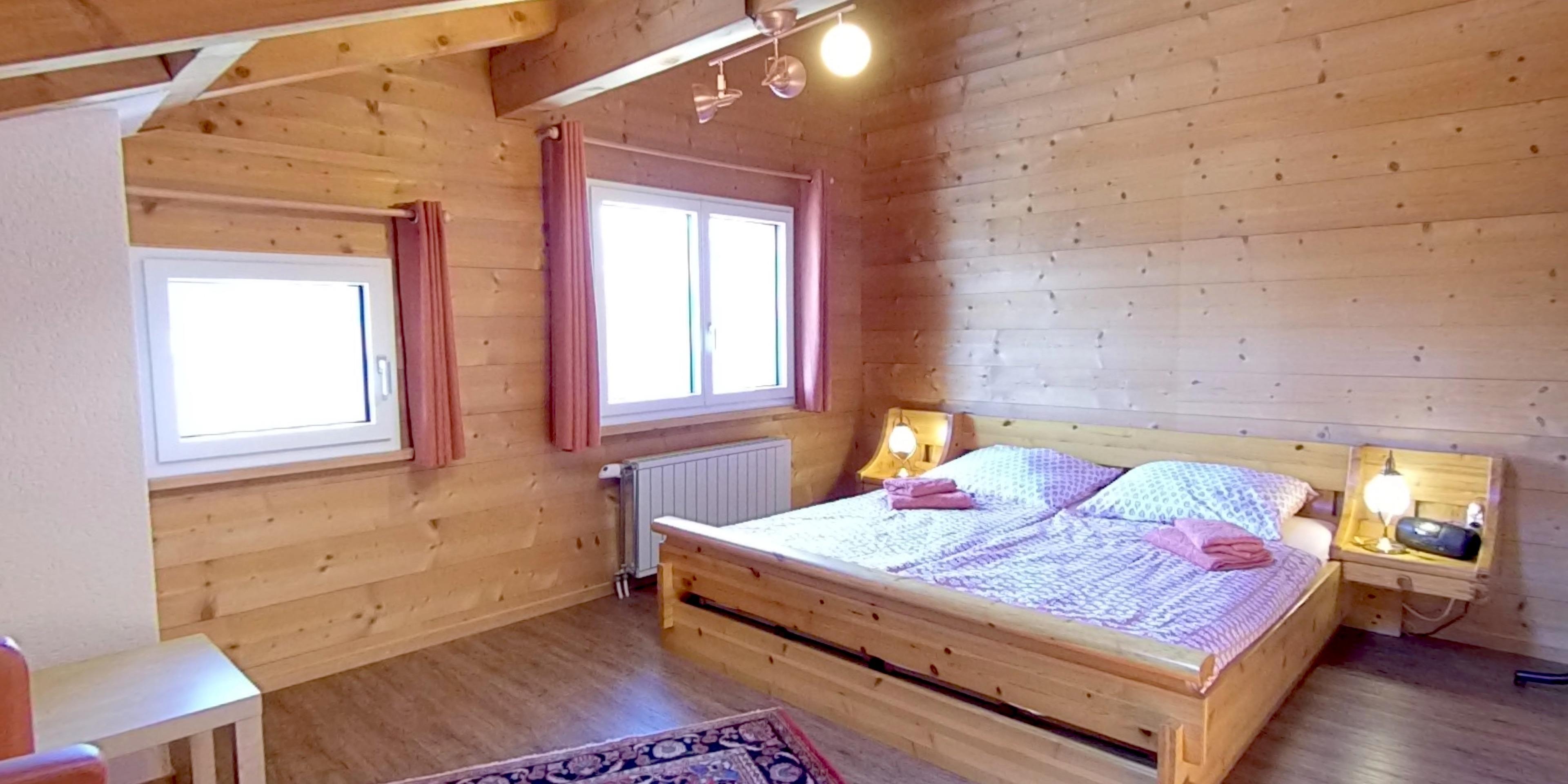 Schlafzimmer: alle 4 Schlafzimmer sind mit einem grossen Doppelbett mit hochwertigen 18 cm hohen Matratzen (2x90x200cm) ausgestattet und verdunkelbar.??Im ersten Obergeschoss befindet sich 1 Doppelzimmer mit Doppelbett 180x200cm und ein Badezimmer mit Dusche/WC.
