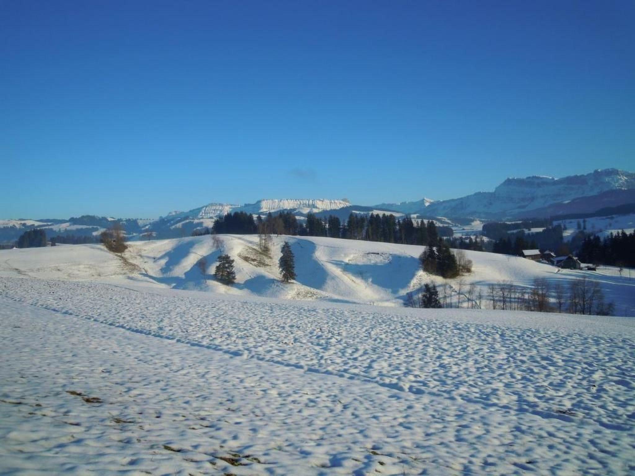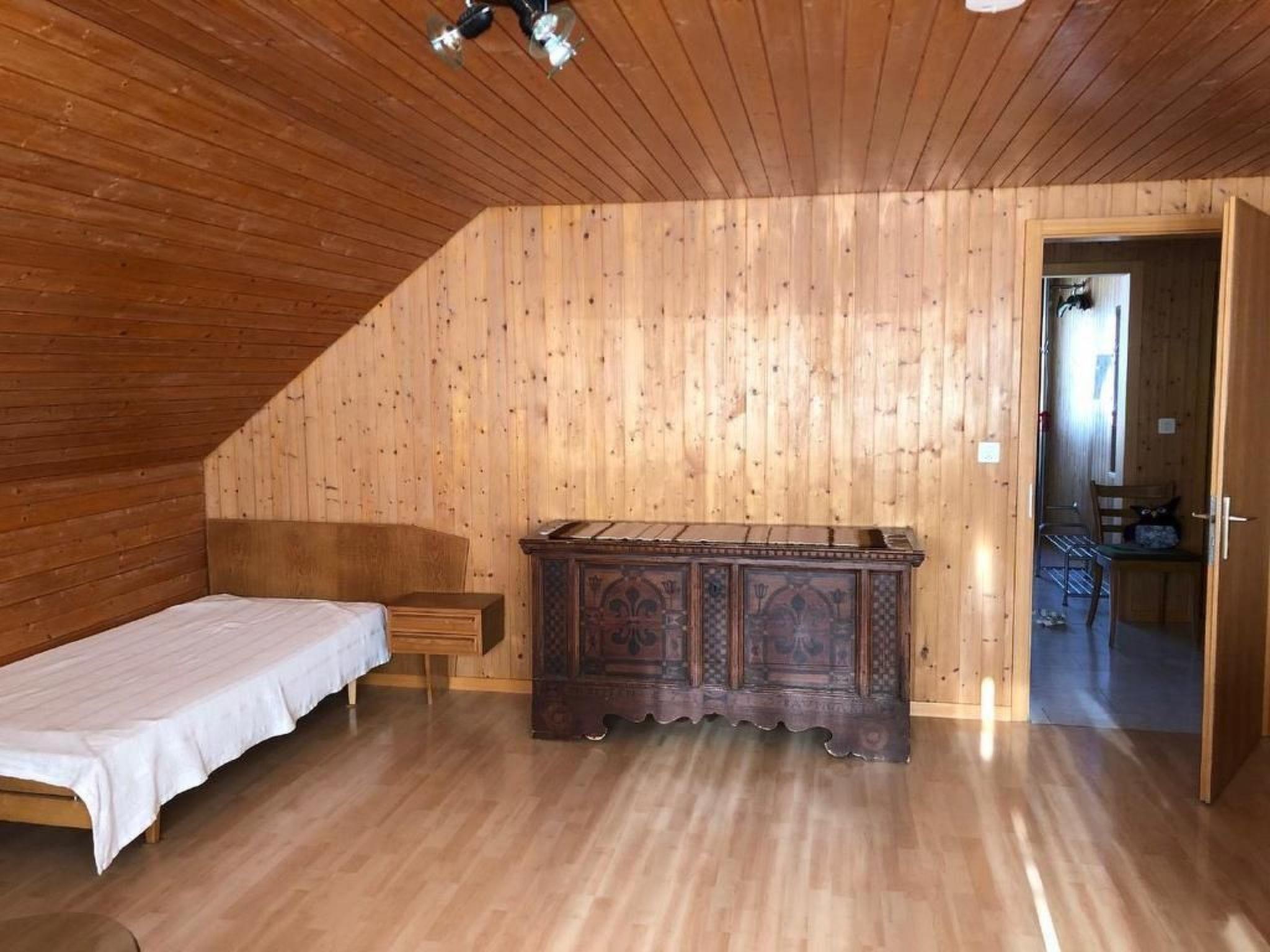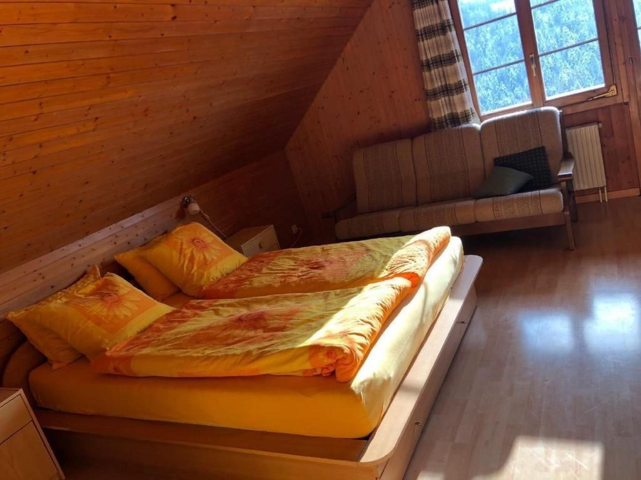 Our farm is located in the foothills of the Alps, in the hilly Emmental valley. At 920m altitude it lies above the fog line and enjoys mostly sunny days. Surrounded by meadows, forest and with views of the mountains it is the perfect place if you are looking for peace and relaxation.The 3.5 room flat for rent is on the first floor of the family house next to the farmhouse and has a separate entrance. The large (25sqm) bedroom is furnished with a double bed and a single bed. We are happy to provide a cot on request.In the spacious living room, there is a sofa bed and a single bed.Both rooms have direct access to the balcony, from where you have a beautiful view over the mountain and valley.In the second bedroom there are two single beds.The spacious kitchen is equipped with a dining table.The bathroom is on the same floor and is for your exclusive use.FurthermoreSmoking is not allowed in the rooms. Pets are allowed.A covered seating area in front of the house invites you to linger.For children there are pedal tractors and a sandpit available. You are welcome to join the feeding of the deer in the morning.