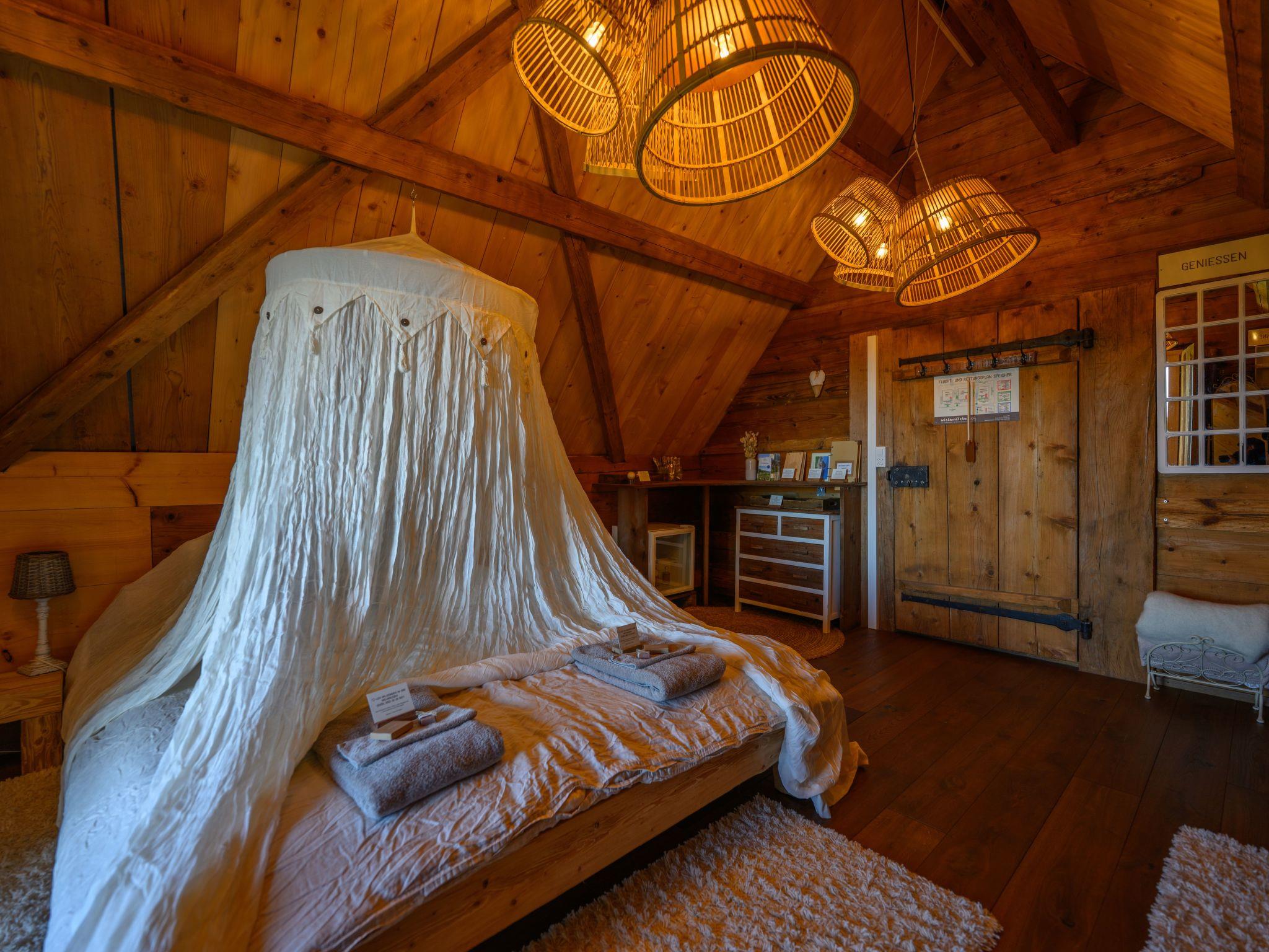 A cosy double room awaits you on the 2nd floor of our listed granary - perfect for a relaxing weekend or a slow-paced holiday in the Emmental.