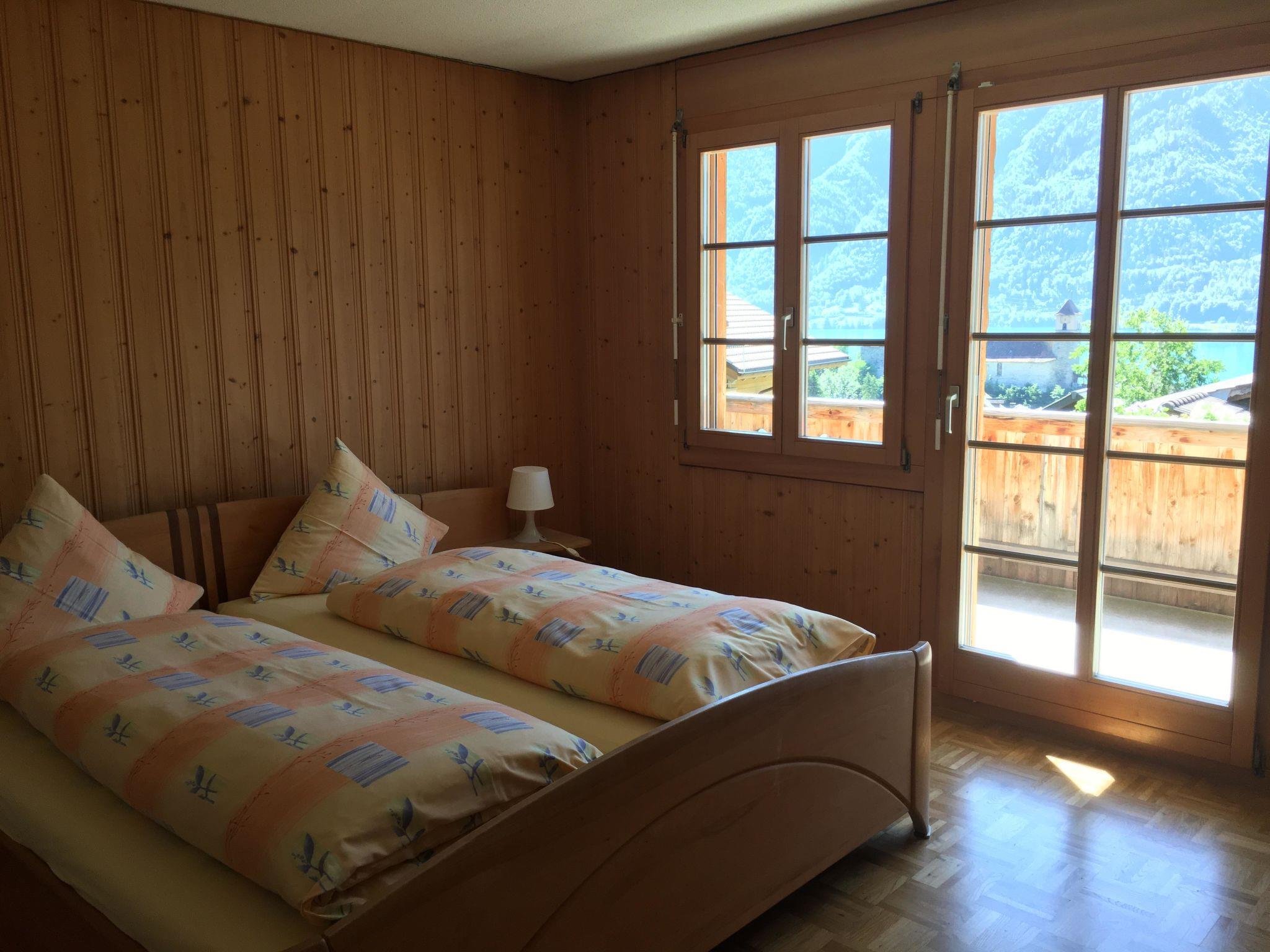 Apartment no. 8 Gartenstrasse 5 3852 Ringgenberg This apartment is situated in the chalet with apartments no 5, 7, 8 and 33 at the Gartenstrasse in Ringgenberg 4½-room-apartment, 100m², 10 people (3 bedrooms, 2 bathrooms, 1 sep. toilet) Living-/dining room 46m2 with open fireplace, sofa, large dining table. Large open kitchen with dishwasher. 1 bedroom with double bed and attached bathroom with bathtub/toilet/double sink. 1 bedroom with double bed. 1 bedroom with special bunk bed 2,5 x 2 meter for 6 people. 1 bathroom with shower/toilet/double sink, 1 separate toilet. Balcony 40m2. Glorious lake view.