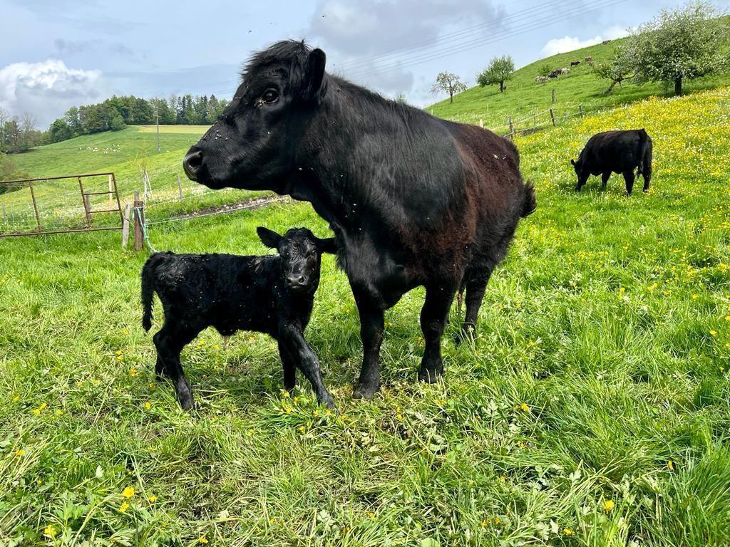 On our farm, we keep suckler cows and suckler cows. Our guests are welcome to help with the farm and field work. We rent out a cosy flat in the "Stöckli" and a comfortable dormitory in the "Holzwurm". On beautiful summer evenings, the barbecue area invites you to enjoy a cosy get-together and the giant trampoline delights young and old alike. We also offer wagon rides through the hills of the Emmental and swimming fun in the Hof-Pot. Horse riding on request.