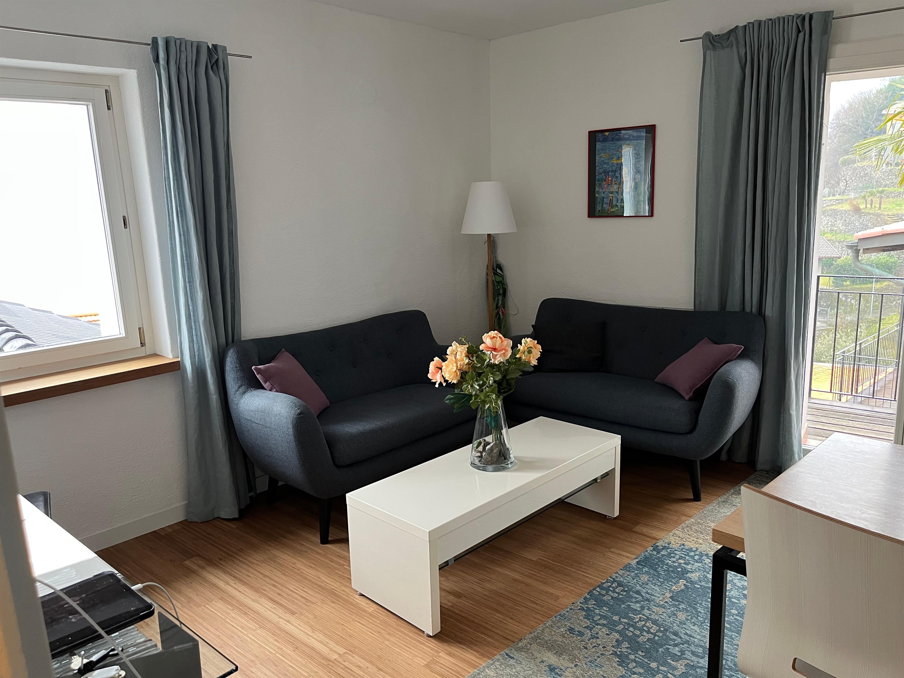 In the Casa Beatrice there are 3 apartments. GF: private; 1st floor: fix rented; 2nd and 3rd floor: holiday apartment. 2 floors apartment with 3 rooms in Ronco s/Ascona with marvellous view on the Lake Maggiore and Brissago Islands. Central, quiet and sunny position. With small terrace. Access to the house: stairs of approx. 3 meters.Holiday apartment with 3 rooms (approx. 75m2) on 2 floors. 1st floor: open kitchen with dining table, small sitting corner, cable TV/radio/telephone; ; small balcony with lake view. 1 double room; shower with WC. 2nd floor: living-bedroom with a king size bed, The stair to the 1st floor is steep, the house is not suitable for small children and people with mobility problems. Max. occupancy 4 people.