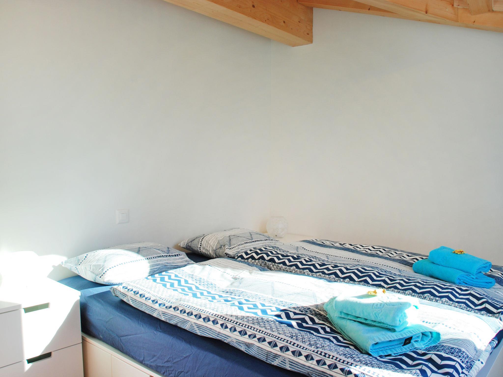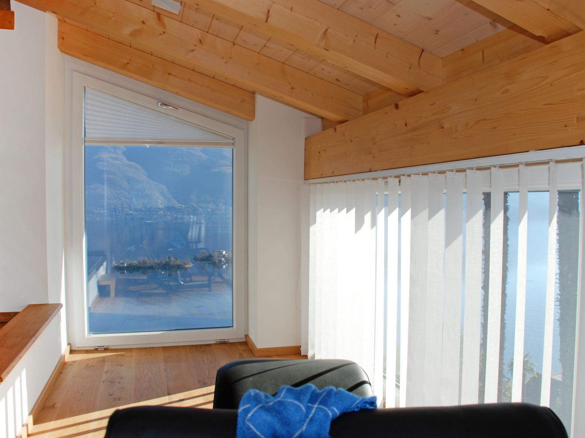"Ca dal Non", 3-room apartment on 2nd floor. Spacious and bright, fully renovated in 2018, comfortable and modern furnishings: open living/dining room with sloping ceilings with Scandinavian wood stove, dining table and cable TV (flat screen). Exit to the balcony. 1 double bedroom with 1 double bed (160 cm, length 200 cm). Exit to the balcony. 1 room with sloping ceilings with 2 beds (90 cm, length 200 cm). Open kitchen (oven, dishwasher, 4 ceramic glass hob hotplates, freezer, electric coffee machine, Capsules for coffee machine (Nespresso) extra). Shower/WC. Underfloor heating. Small balcony, south facing position. Balcony furniture. Marvellous panoramic view of the lake, the mountains, the countryside, the resort and the Isole di Brissago. Facilities: washing machine, dryer, iron, children's high chair, baby cot for up to 2 year olds (extra), hair dryer. Internet (WiFi, free). Please note: non-smokers only. Maximum 1 small pet/ dog allowed. NL-00011366