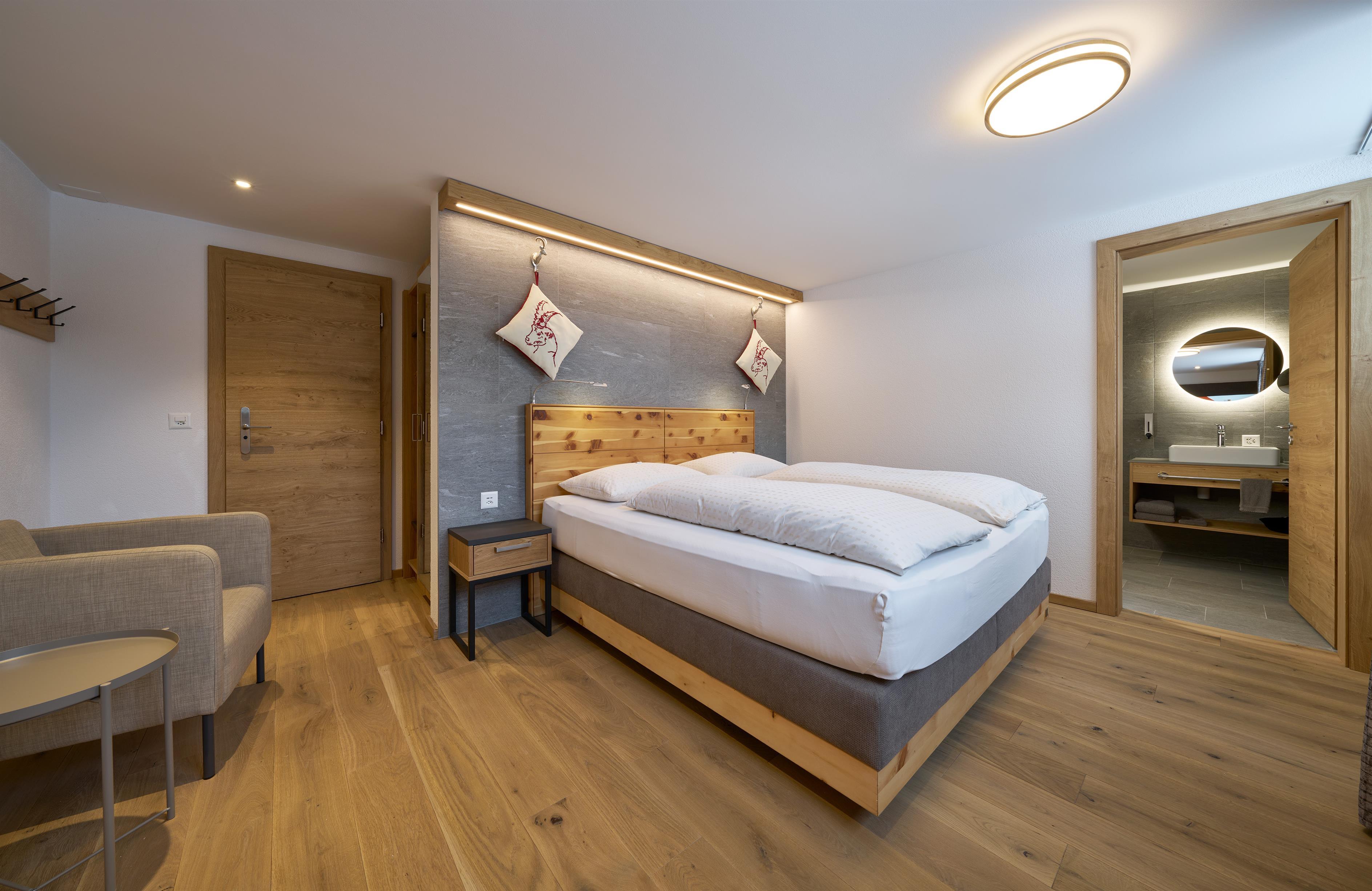 Our luxurious "Grischuna Apartments Deluxe" are designed in alpine chic, are located on the first and second floor and offer comfortable space for 6 people. From the balcony - equipped with photovoltaic railings - you can enjoy an impressive view of the village and mountains.