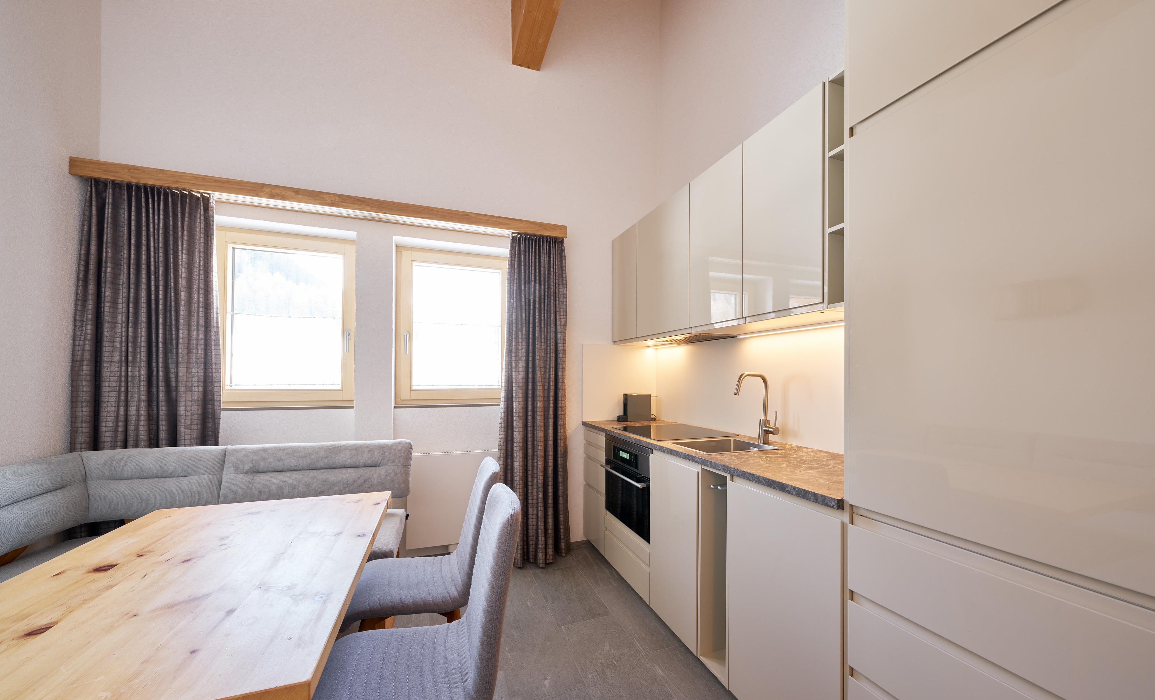 In the separate double rooms you sleep in box spring beds made of Arven wood "made in Austria", the shower and WC areas are equipped with rain showers, Geberit® shower WC and fluffy bath towels. The kitchens are fully equipped, the dining table seats six and the living area invites you to linger.