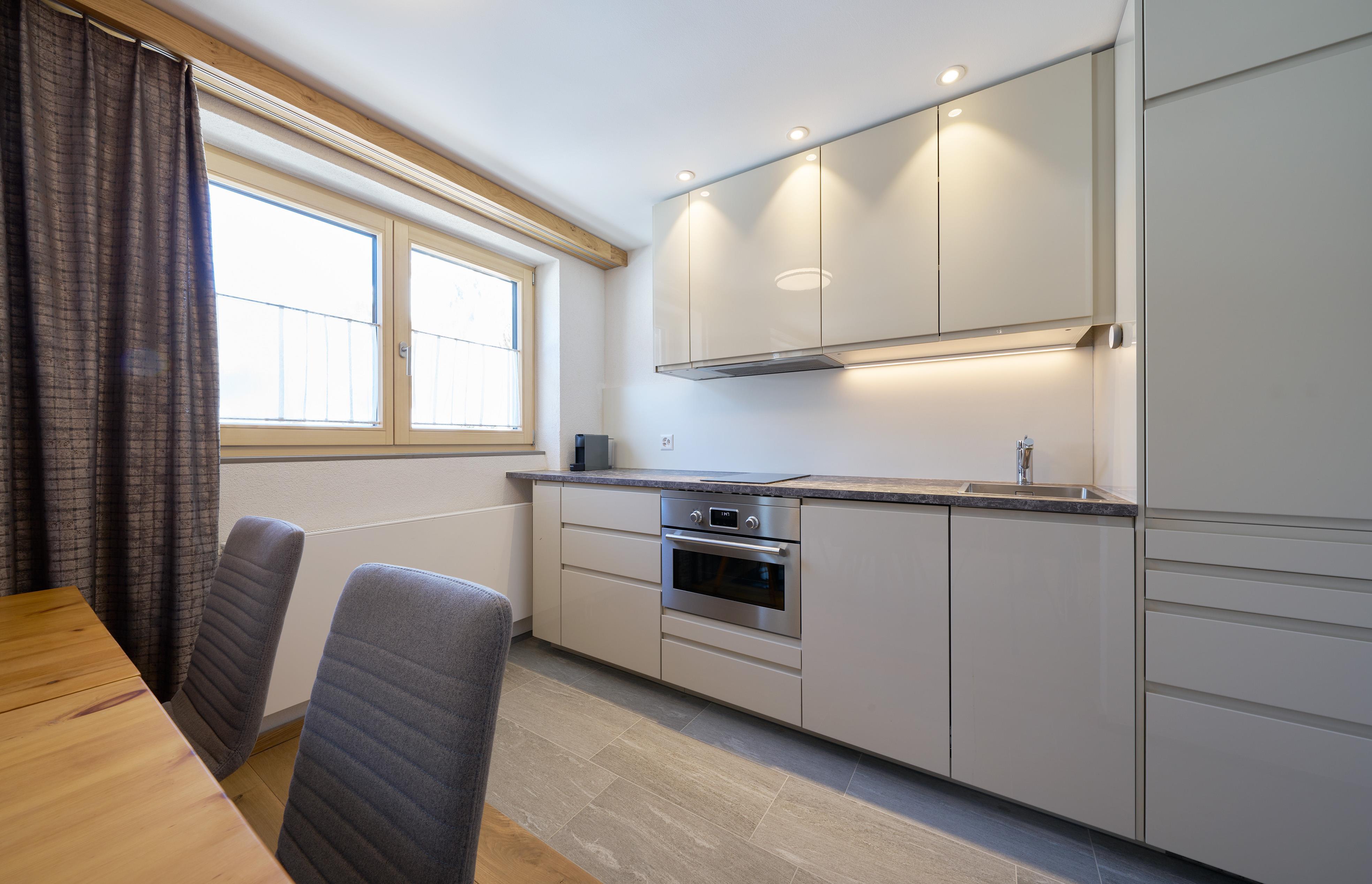 In the separate double rooms you sleep in box-spring beds made of Arven wood "made in Austria", each with its own shower and WC areas equipped with rain showers, Geberit® shower WC and fluffy bath towels. The kitchens are fully equipped, the dining table comfortably seats four and the living area invites you to linger.