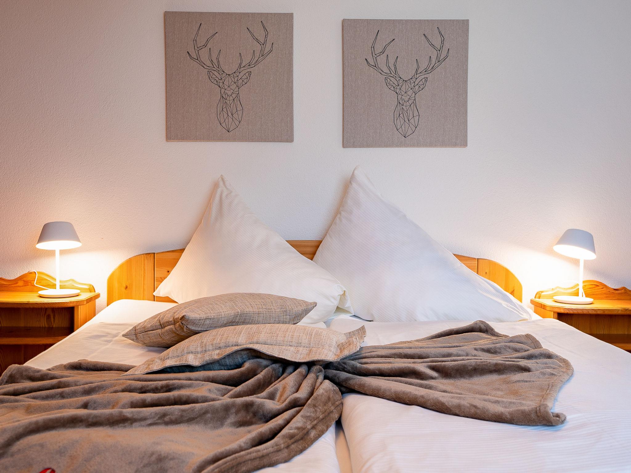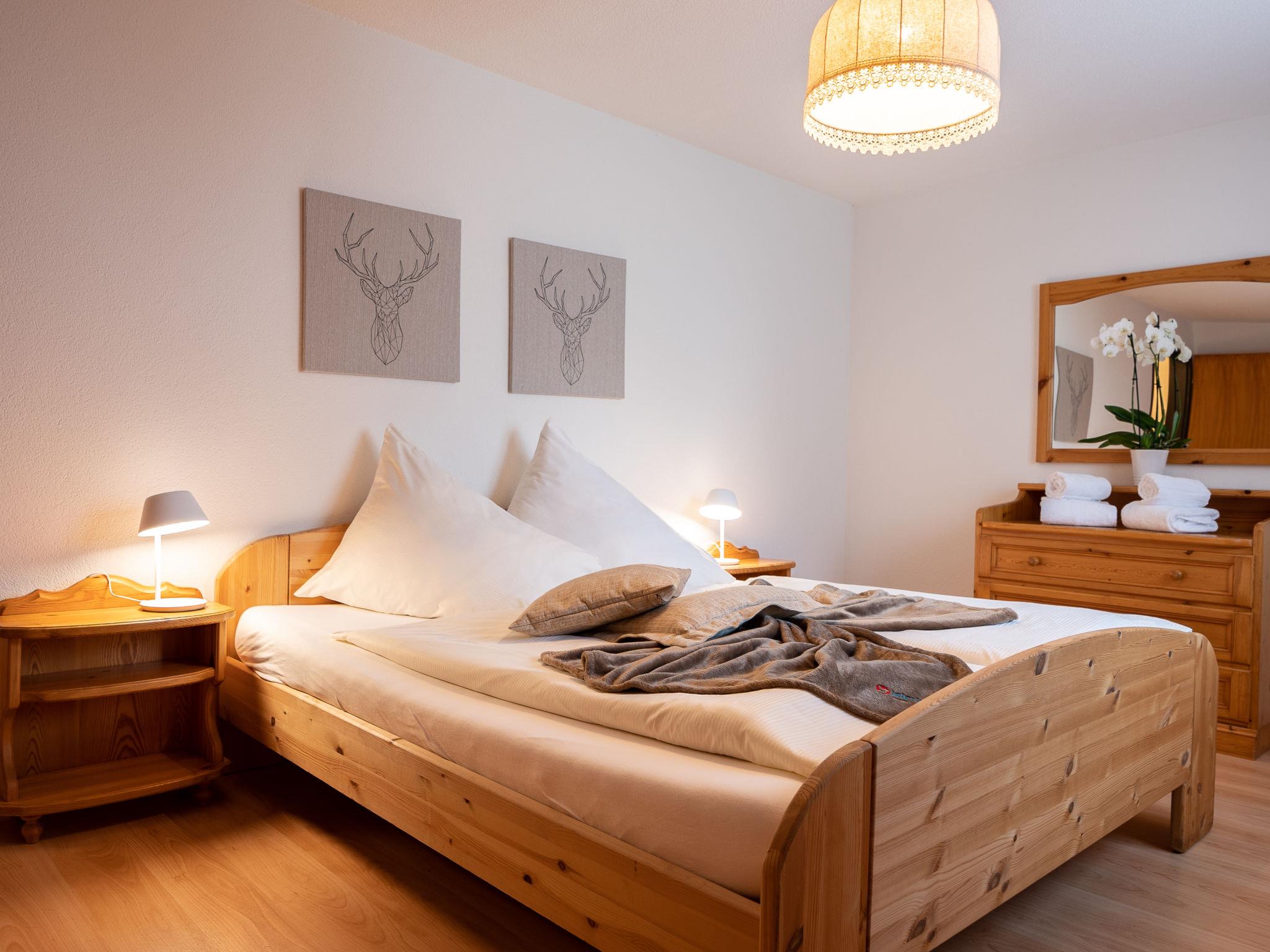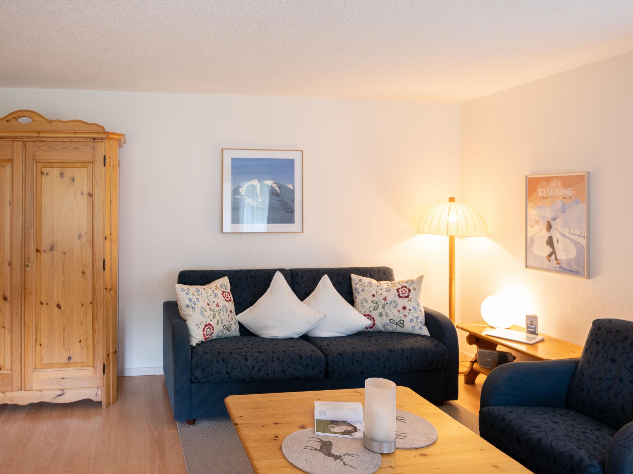 "Chesa Zupeda C2", 2-room apartment 70 m2, on the ground floor. Comfortable and cosy furnishings: living/dining room with 1 double sofabed (1 x 160 cm, length 190 cm), TV. Exit to the patio, west facing position. 1 room with 1 double bed (2 x 90 cm, length 200 cm). Kitchen (oven, dishwasher, 4 ceramic glass hob hotplates, toaster, kettle, electric coffee machine). Bath/WC. Heating. Small terrace. Terrace furniture. Side view of the mountains. Facilities: hair dryer. Internet (WiFi, free). Garage space n C2, height 215 cm, width 220 cm. Maximum 1 pet/ dog allowed.