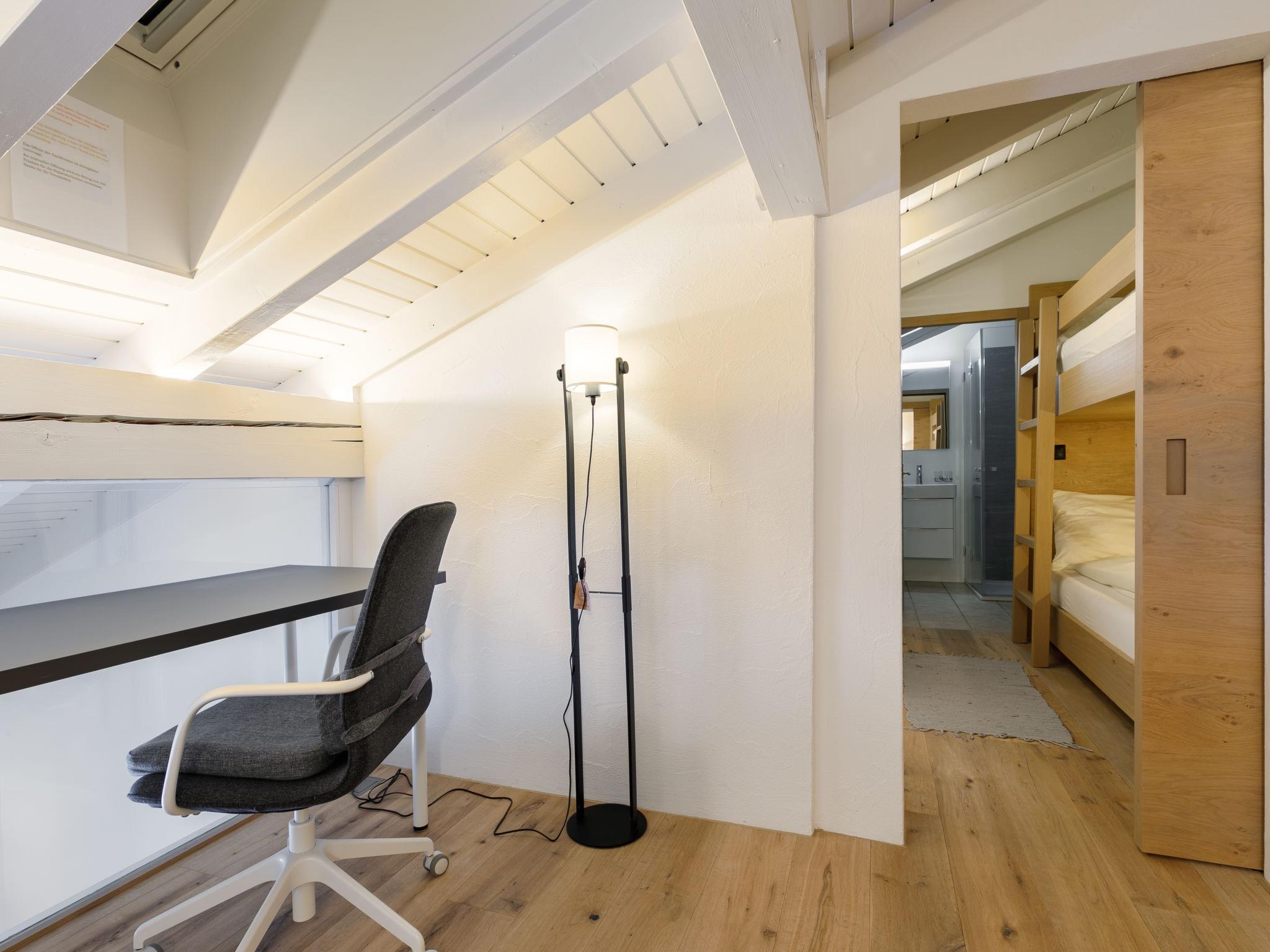 "Residenza Chesa Margun 36-3", 2-room apartment 52 m2 on 2 levels, on the top floor, north facing position. Fully renovated in 2022, beautiful and cosy furnishings: living/dining room with cable TV, flat screen and radio. 1 room with 1 double bed. (oven, dishwasher, 4 ceramic glass hob hotplates, electric coffee machine, Capsules for coffee machine (Nespresso) extra) with dining table. Shower/WC. Electric heating. Upper floor: open gallery. Alcove with sliding door with 1 x 2 bunk beds. Alcove with sliding door with 1 bed. Facilities: Internet (WiFi). Garage. Please note: non-smokers only. Maximum 1 pet/ dog allowed. In the gallery you can see a home office corner organized. Instead of an enclosed bedroom, some sleeping areas are located in an open-plan area (gallery, alcove, etc.).