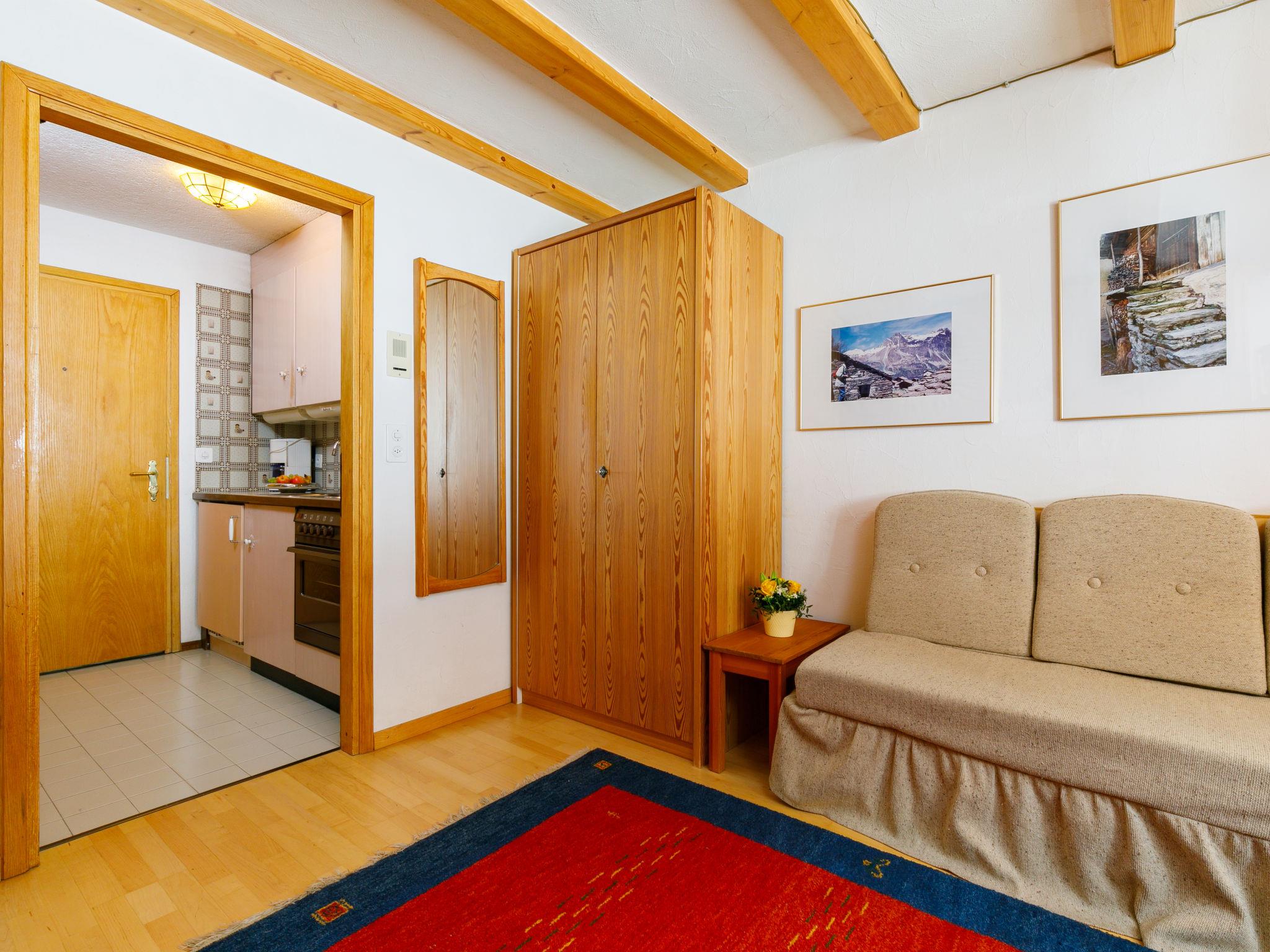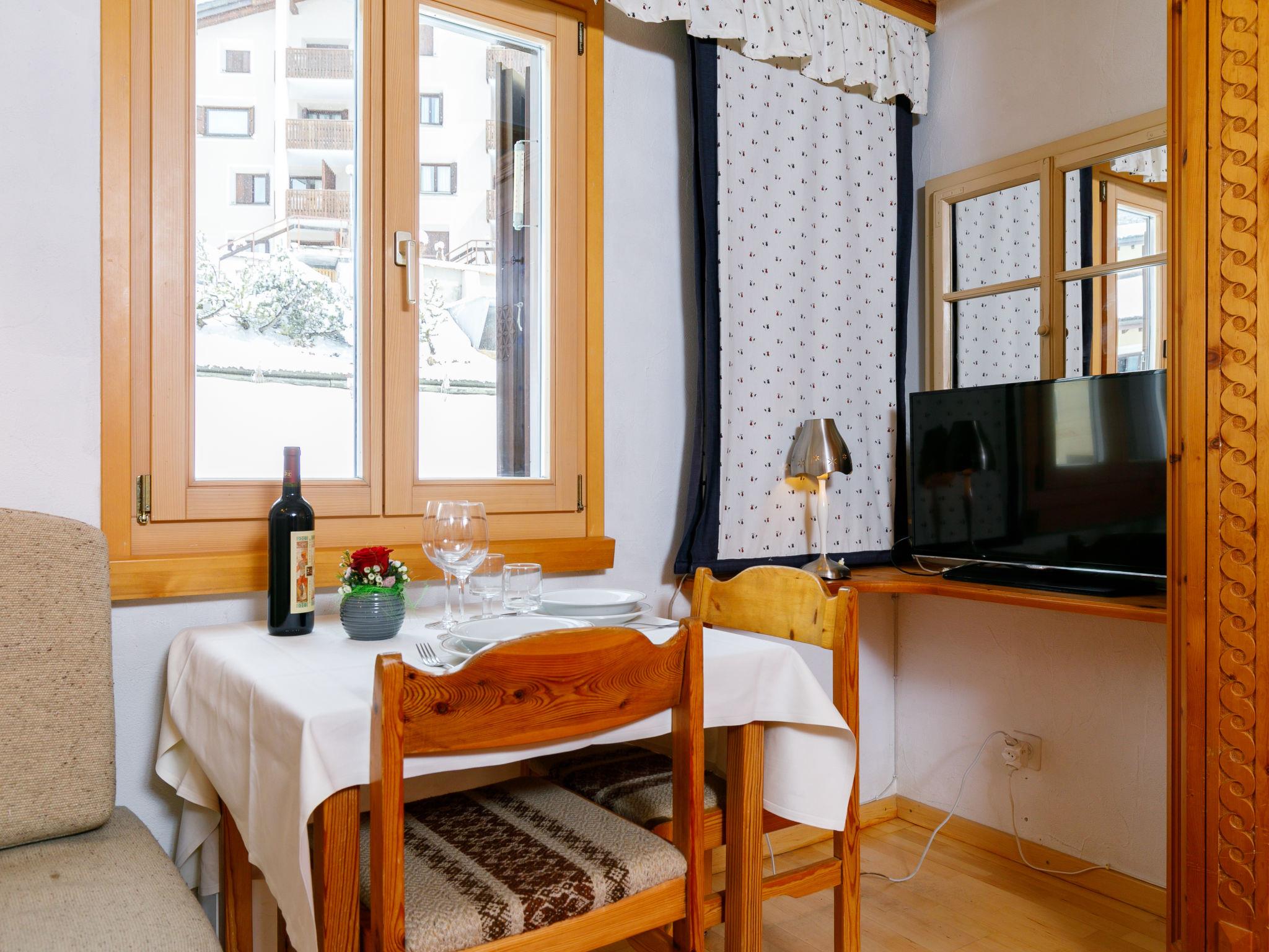 "Residenza Chesa Margun 34-4", 1-room studio 25 m2 on 1st floor, north facing position. Practical furnishings: living/sleeping room with 2 fold-away beds (80 cm, length 190 cm), cable TV and electric heating. Kitchenette in the entrance (oven, electric coffee machine) with satellite TV. Shower/WC. Electric heating. Facilities: Internet (WiFi, free). Garage. Please note: apartment courtyard side. Non-smokers only.