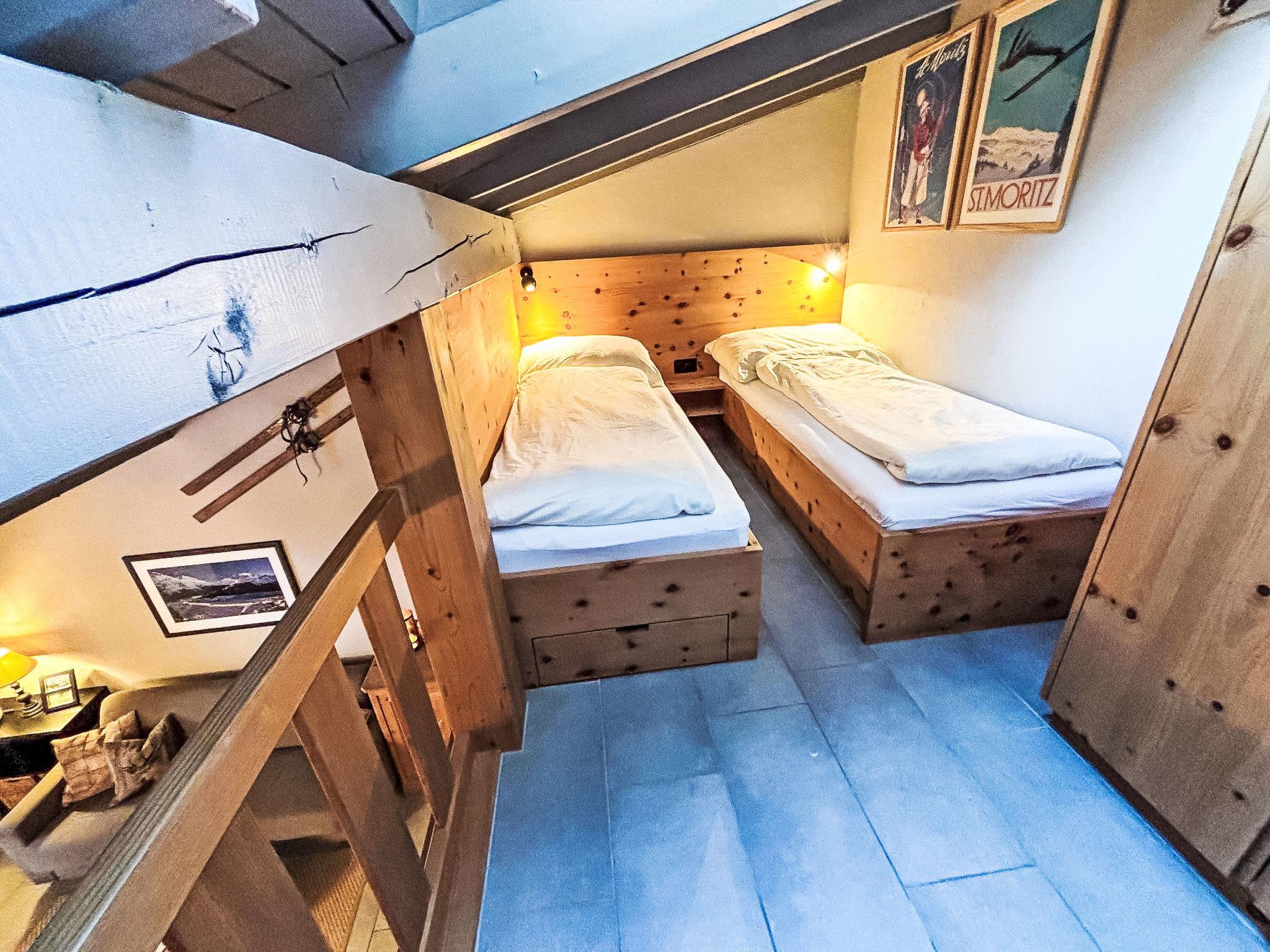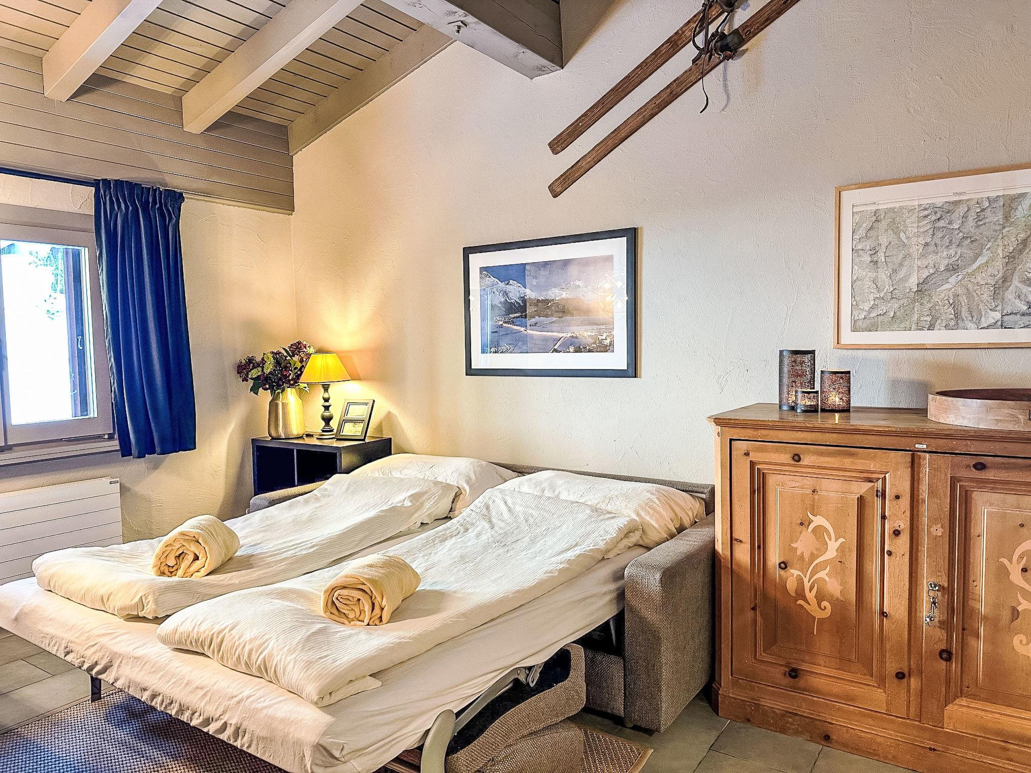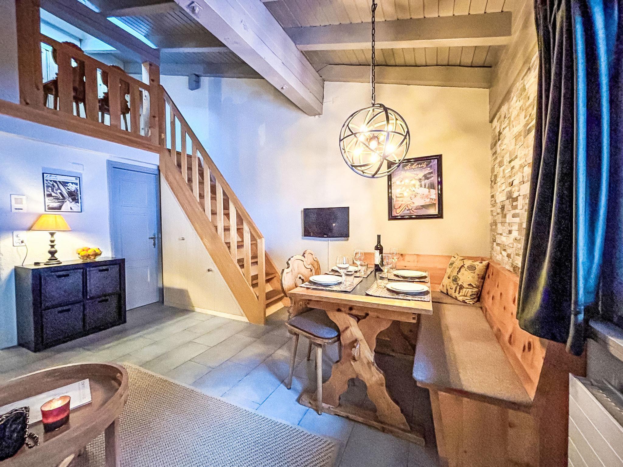 "Residenza Chesa Margun 24-1", 1-room apartment 34 m2 on 2 levels, north facing position. Renovated in 2024, comfortable and beautiful furnishings: living/dining room with 1 double sofabed (170 cm, length 200 cm), dining nook, cable TV, flat screen and radio. Kitchen in the entrance (4 hot plates, oven, dishwasher, 4 ceramic glass hob hotplates, electric coffee machine, Capsules for coffee machine (Nespresso) extra). Shower/WC. Upper floor: open gallery with sloping ceilings with rooflight with 2 beds (80 cm, length 200 cm). Facilities: Internet (WiFi, free). Please note: suitable for families apartment courtyard side. Non-smokers only. Instead of an enclosed bedroom, some sleeping areas are located in an open-plan area (gallery, alcove, etc.).