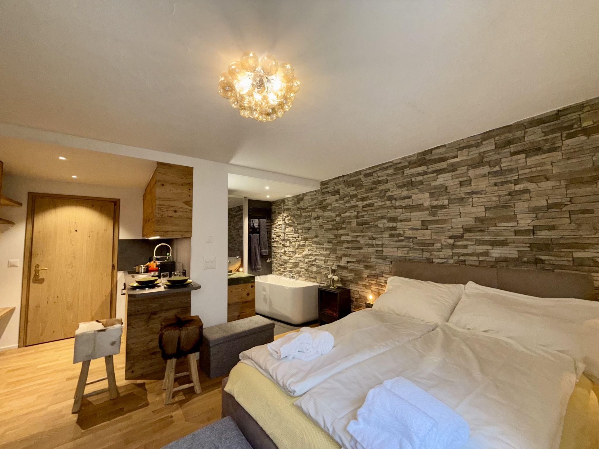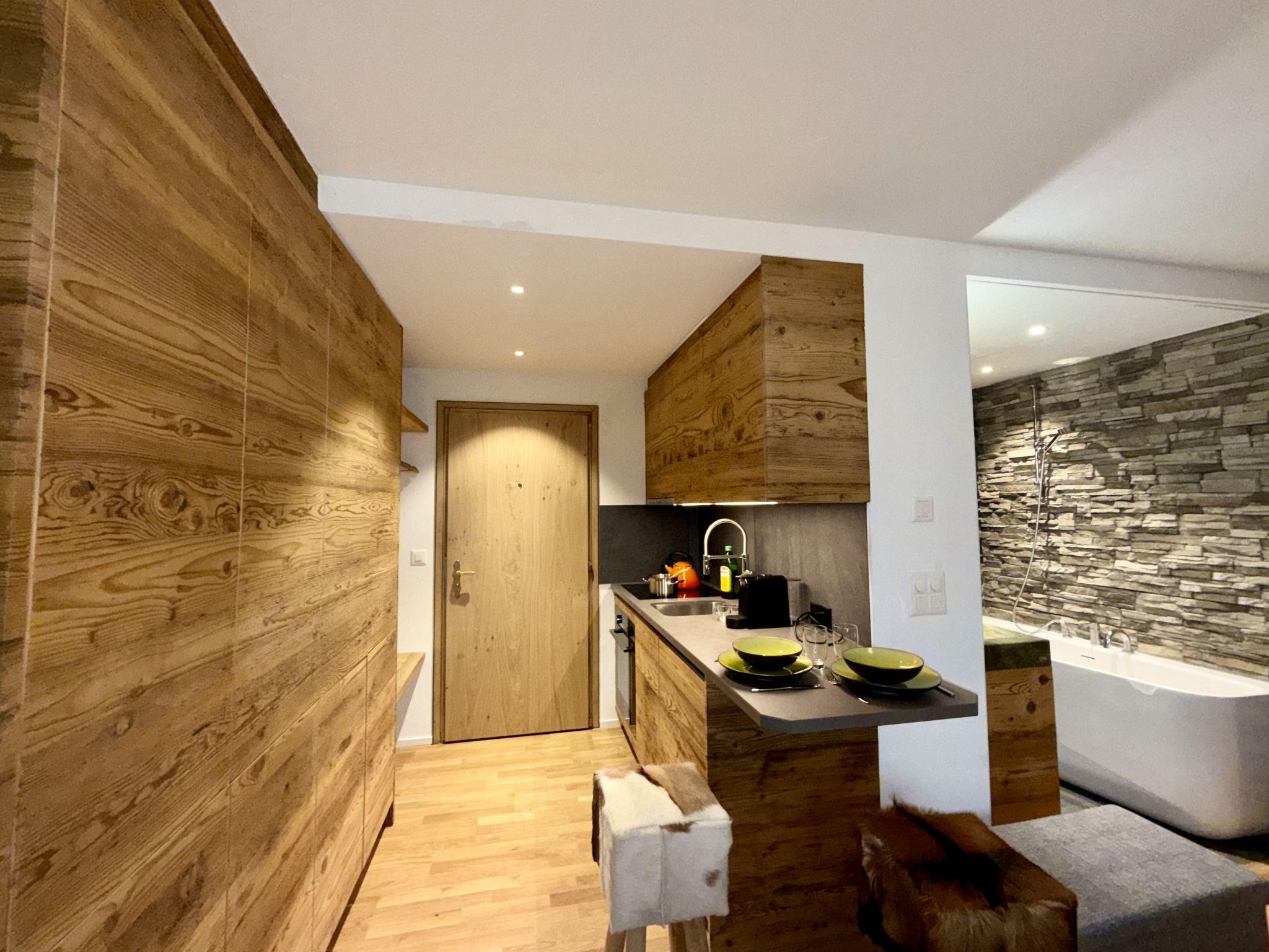 "Residenza Chesa Margun 14-2", 1-room apartment 25 m2, north facing position. Fully renovated in 2025, comfortable and tasteful furnishings: living/sleeping room with 1 french bed (160 cm, length 200 cm), cable TV (flat screen). Open kitchen (oven, 4 ceramic glass hob hotplates, electric coffee machine, Capsules for coffee machine (Nespresso) extra) with small dining table. Bathroom, sep. WC. Parquet floors. Side view of the resort. Facilities: Internet (WiFi, free). Garage, height 200 cm, width 250 cm. Please note: non-smokers only, non-smoking house. Maximum 1 pet/ dog allowed. The apartment is situated over the entrance to the garage.