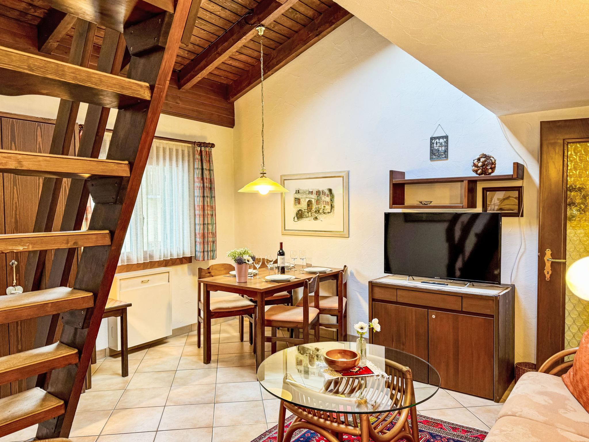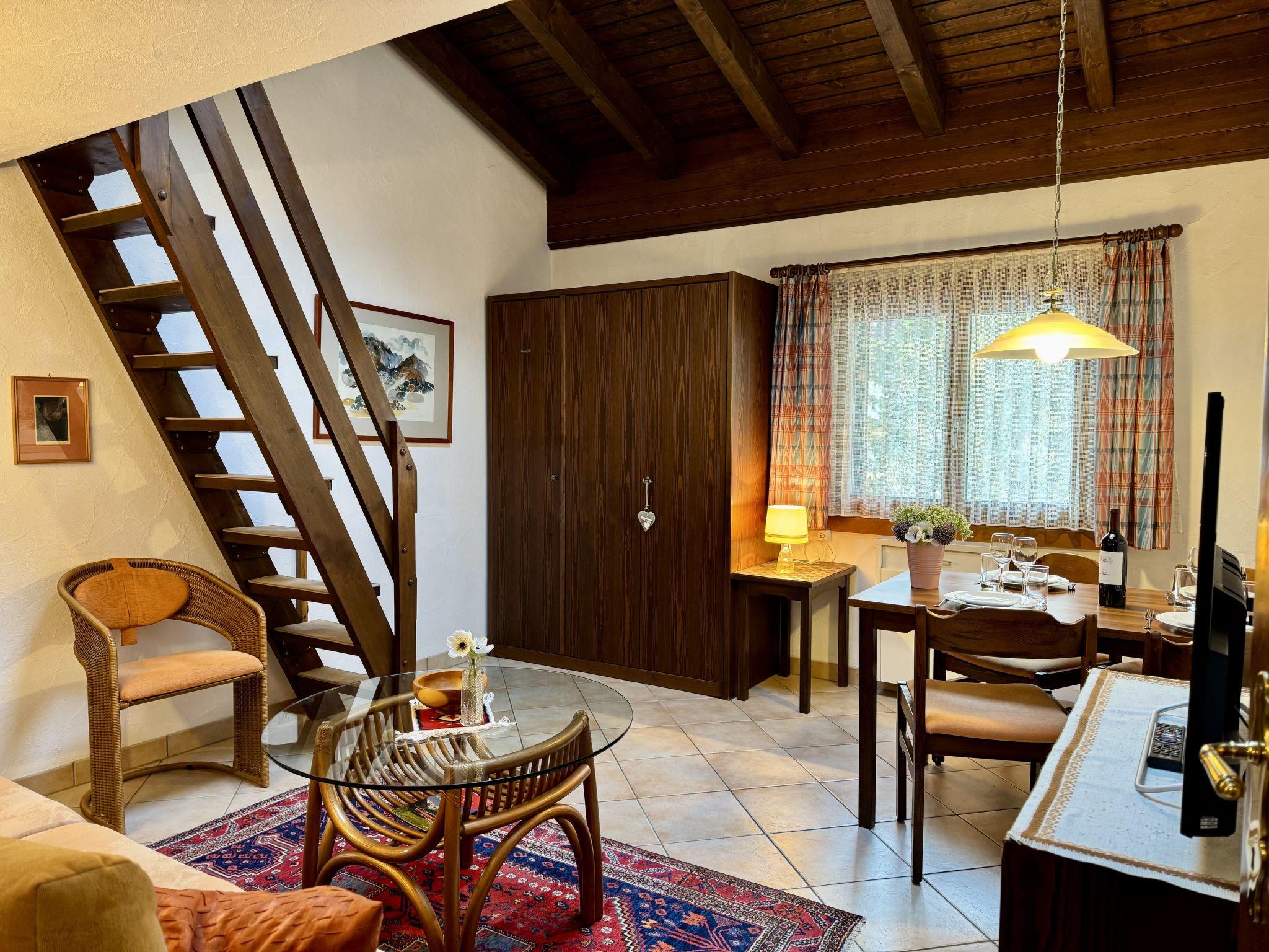 "Residenza Chesa Margun 15-4", 2-room apartment 47 m2 on 2 levels, on the top floor, north facing position. Cosy furnishings: living/dining room with cable TV (flat screen). 1 double bedroom with 1 double bed. Small kitchen (4 hot plates, oven, dishwasher, toaster, kettle, electric coffee machine, Capsules for coffee machine (Nespresso) extra). Bath/WC. Upper floor: (steep stair) open gallery with sloping ceilings, ceiling height 150 - 170 cm with 2 beds and cable TV (flat screen). Side view of the mountains and the countryside. Facilities: Internet (WiFi, free). Garage, height 203 cm, width 290 cm. E-charging station. Please note: not suitable for small children. Non-smokers only.