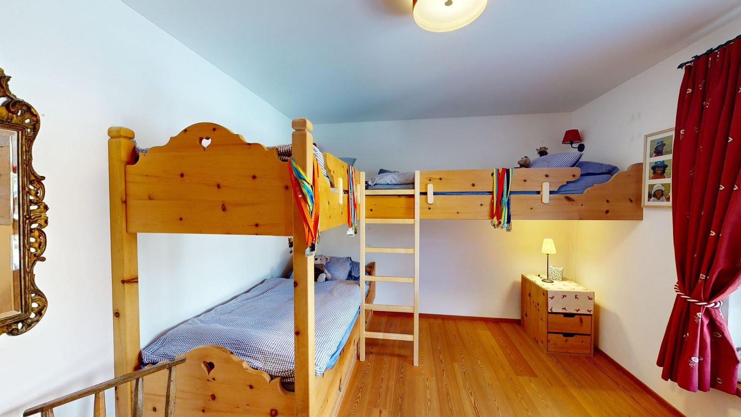 Erleben Sie unvergessliche Ferien in dieser charmanten 3.5-Zimmerwohnung, ideal für Familien mit zwei Erwachsenen und zwei Kindern. Die Wohnung bietet zwei gemütliche Schlafzimmer: eines mit einem komfortablen Doppelbett und einem en-suite Badezimmer, sowie ein Kinderzimmer mit einem Etagenbett für die Kleinen. Zwei moderne Badezimmer sorgen für zusätzlichen Komfort – eines mit Badewanne und Duschmöglichkeit, das andere mit einer separaten Dusche.